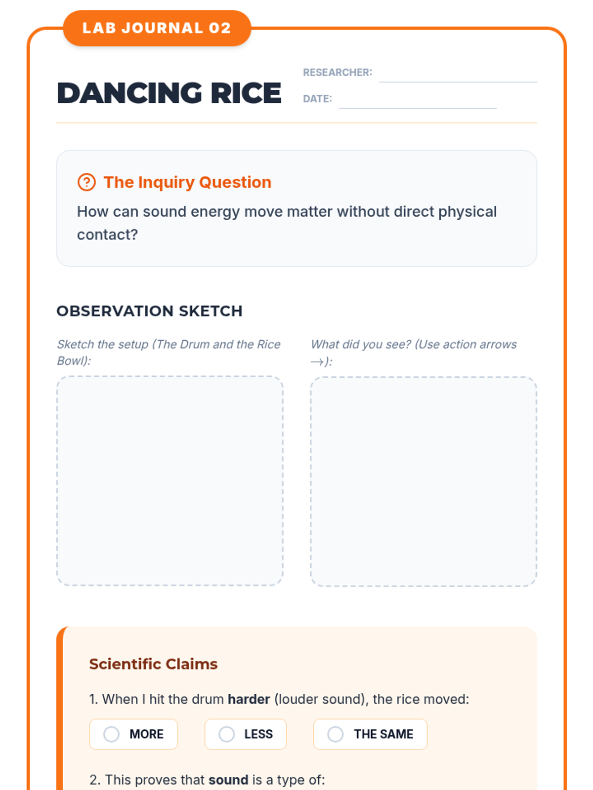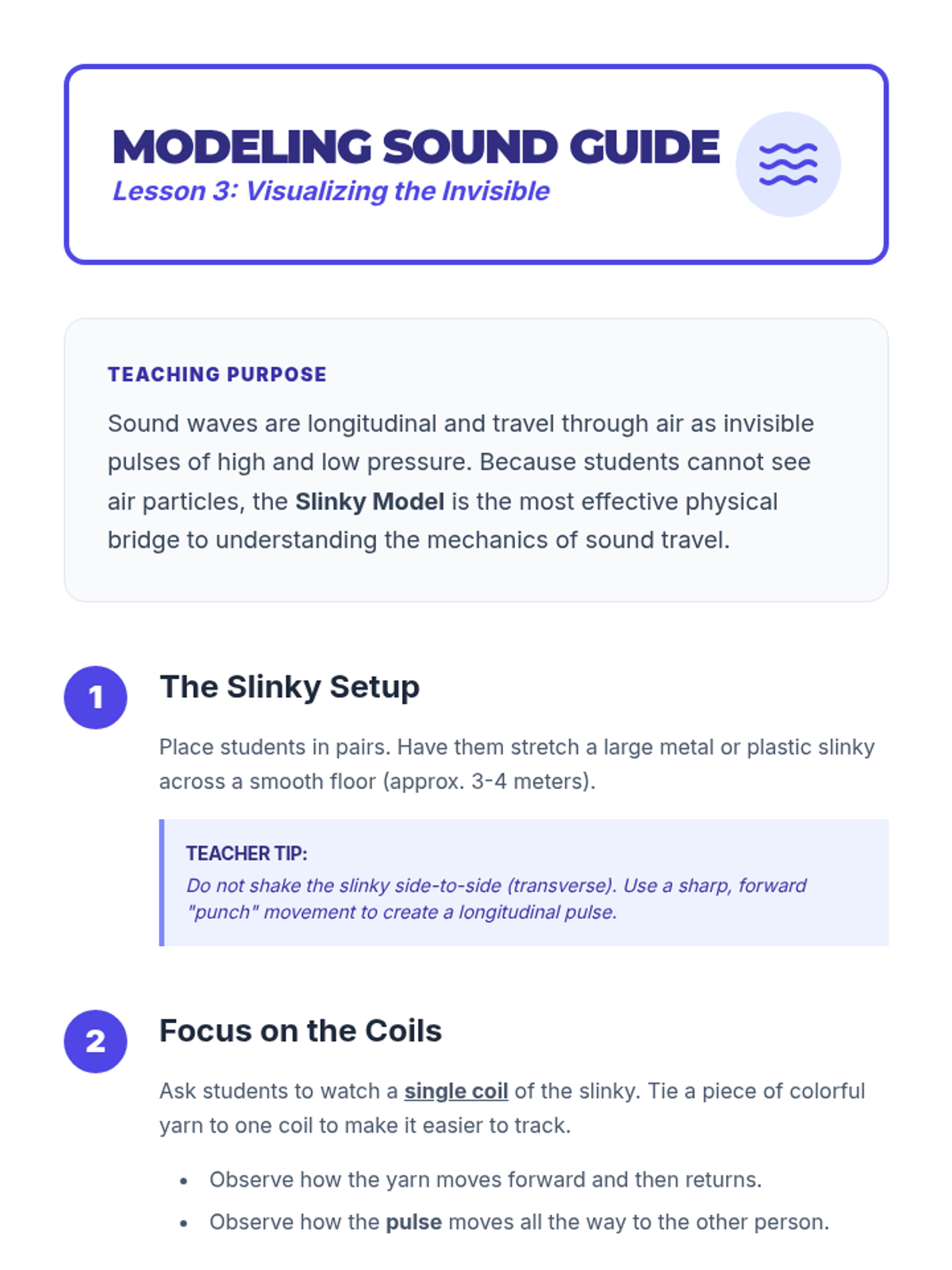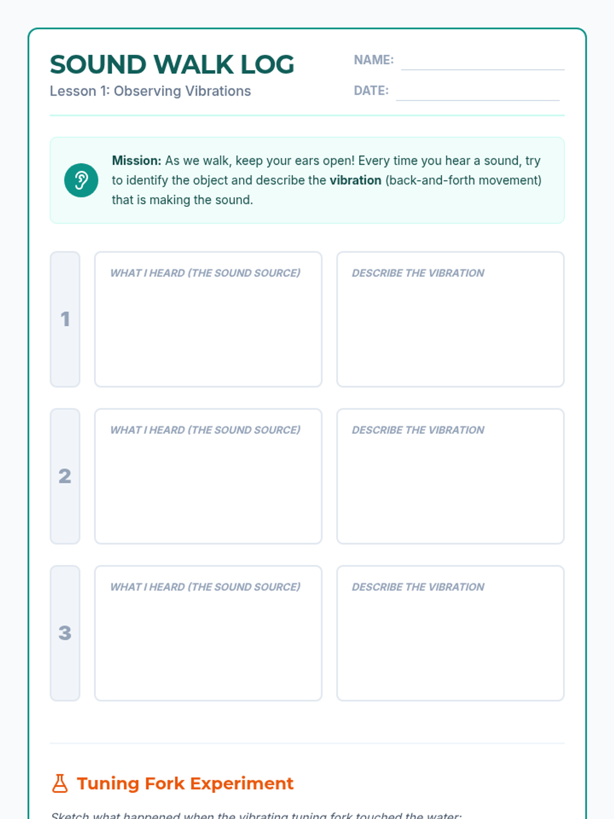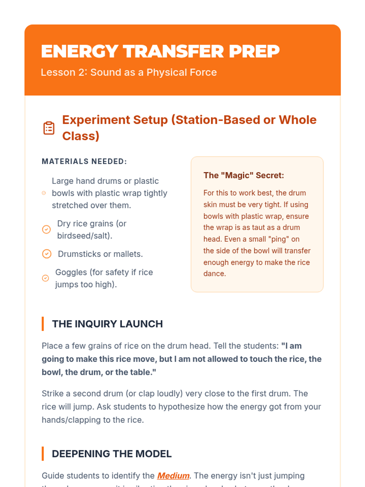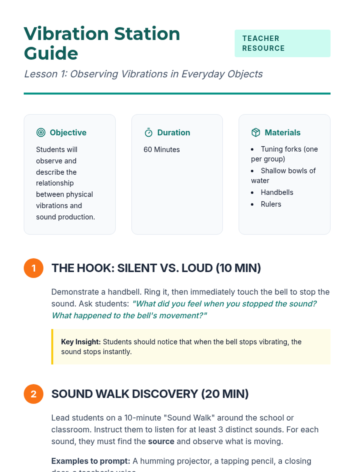 A 4th-grade physics sequence exploring how vibrations create sound and how that energy travels through matter using hands-on inquiry and scientific modeling.