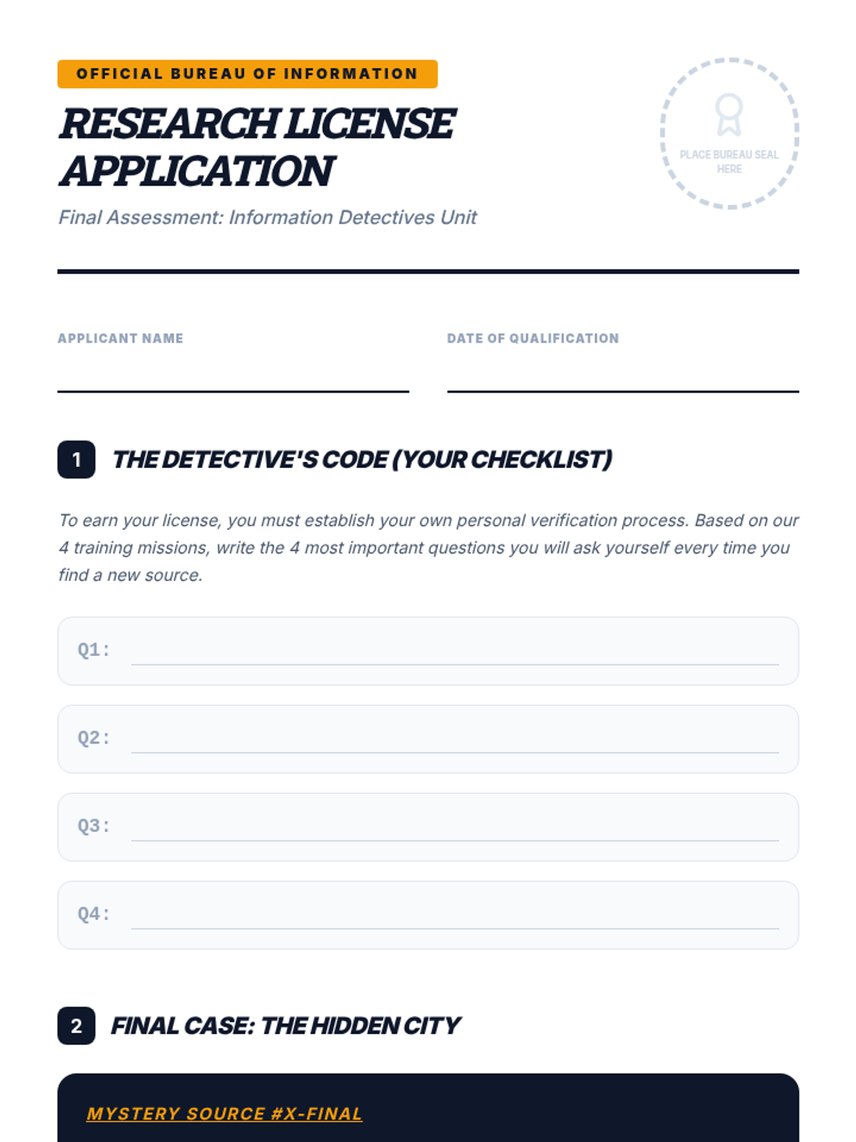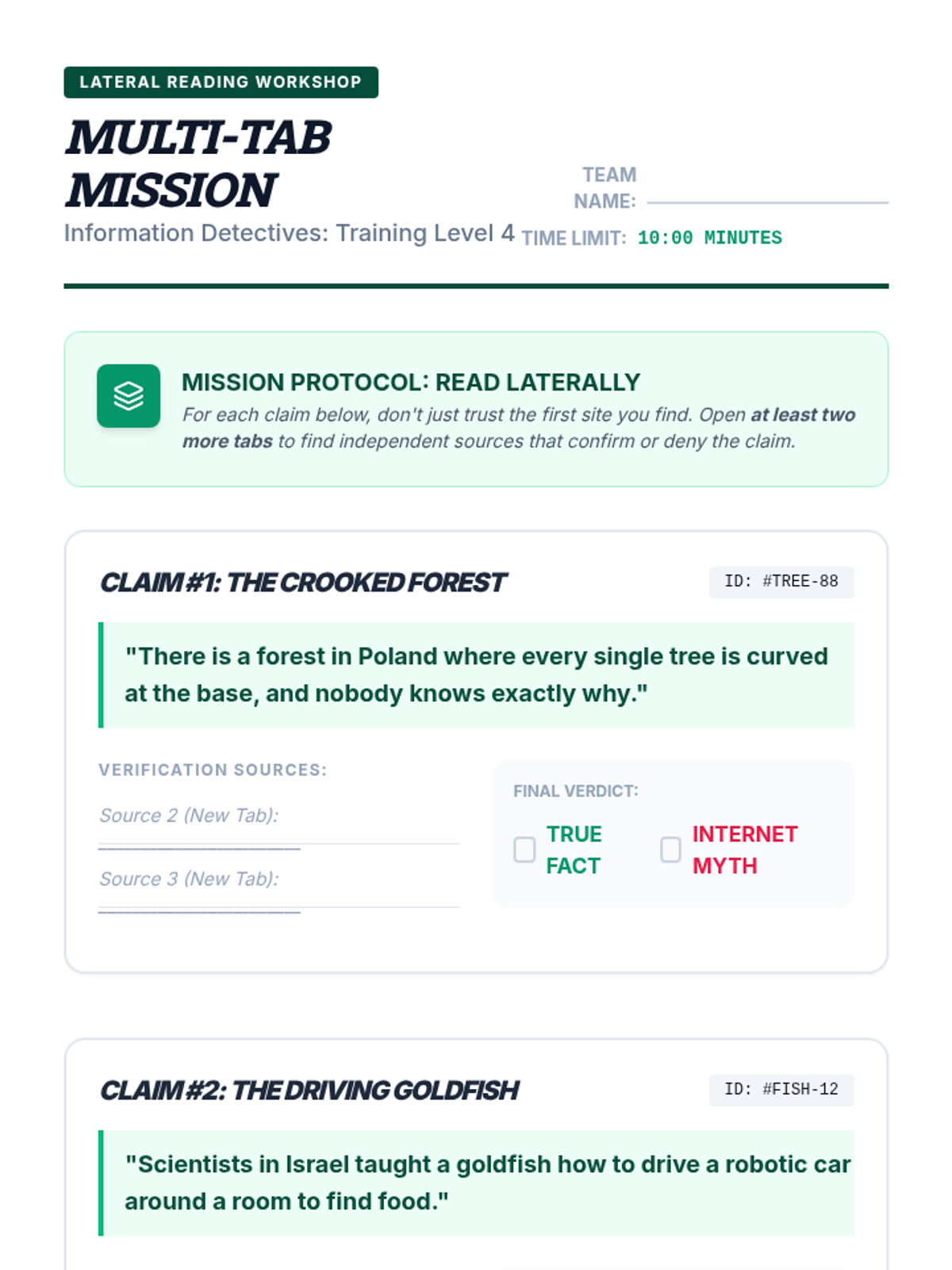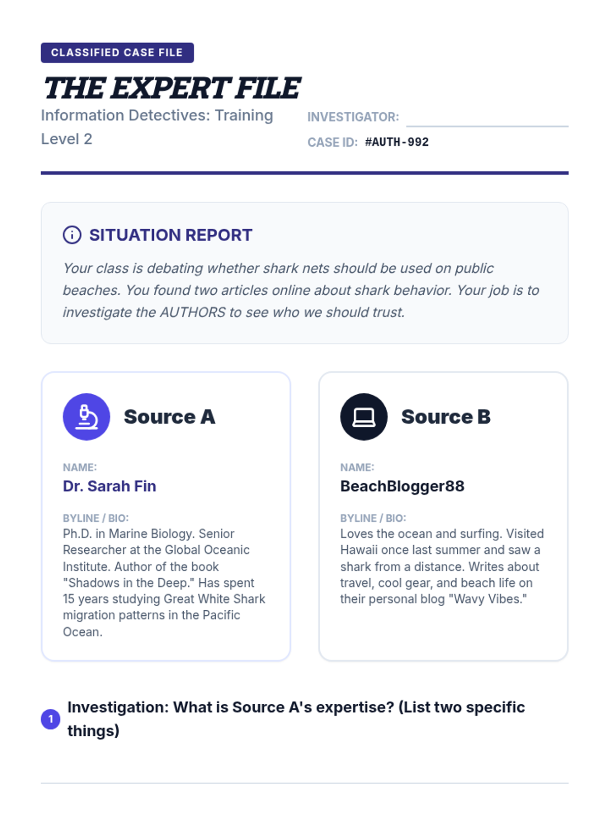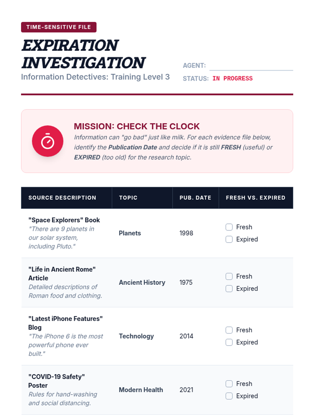 A simulation-heavy unit where 4th-grade students become 'Information Detectives' to evaluate the credibility of digital and print sources. They learn to distinguish fact from opinion, check authorship and expertise, verify currency, and practice lateral reading.