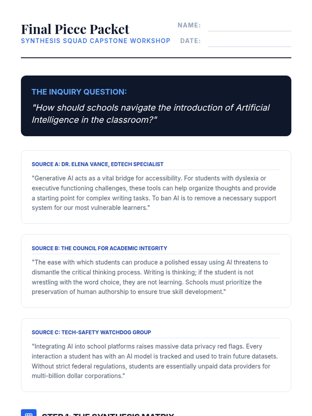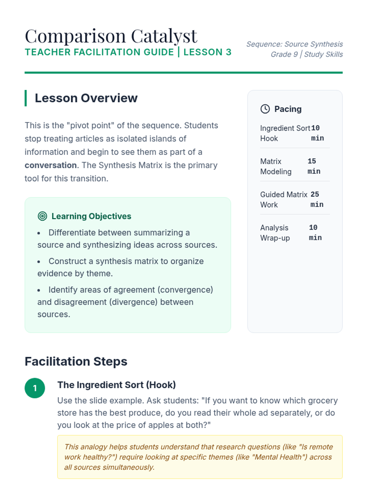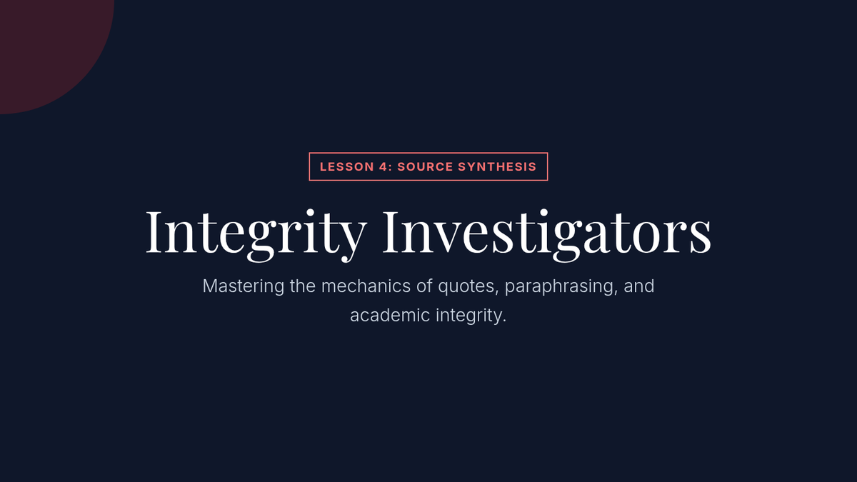 A comprehensive 9th-grade sequence focused on teaching students how to move from active reading and annotation to synthesizing information from multiple academic sources. Students will explore bias, comparative analysis, and academic integrity to produce a final synthesized written response.