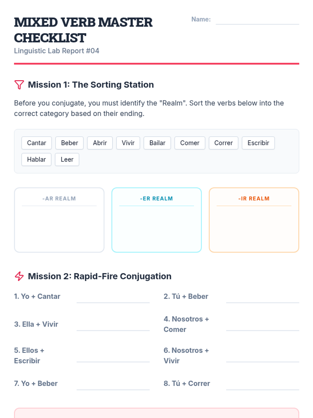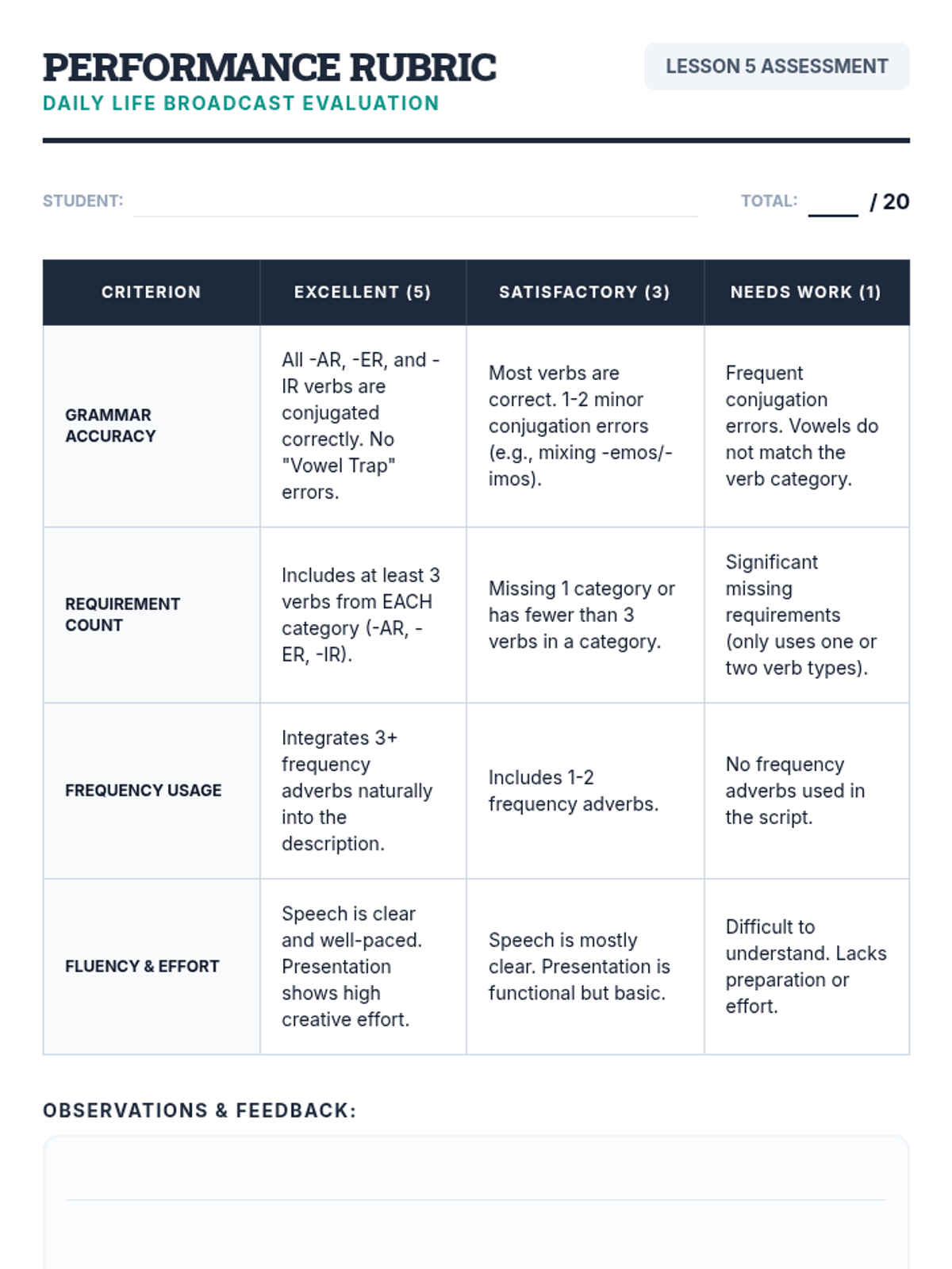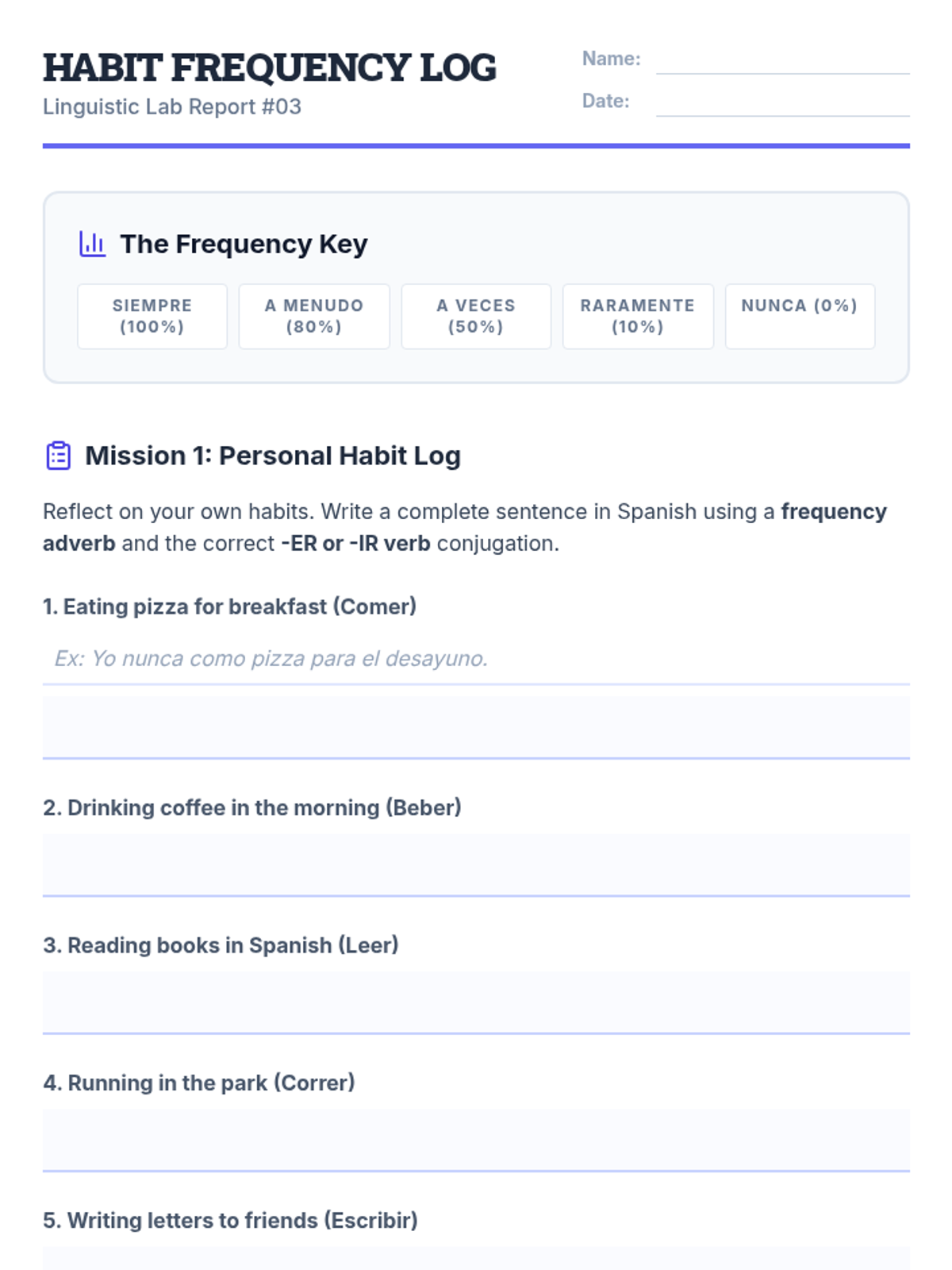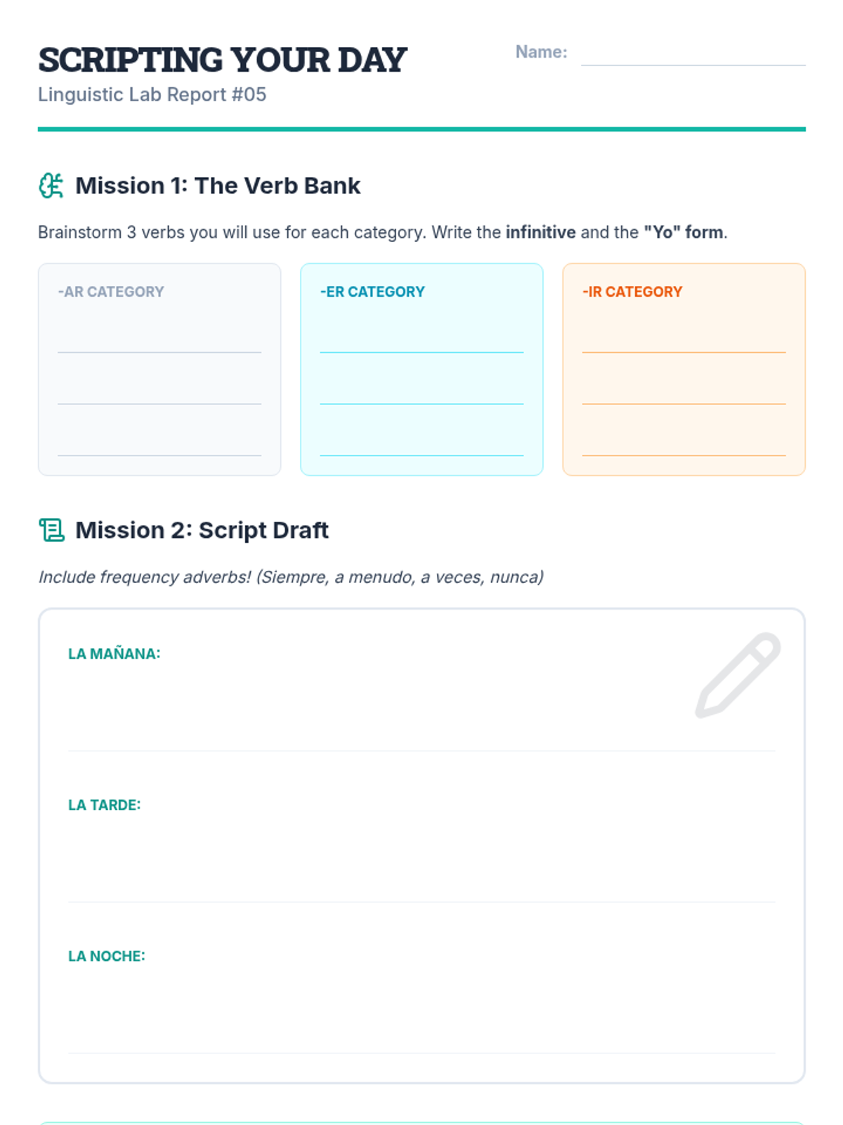 This sequence introduces 8th-grade students to regular -ER and -IR verb conjugations in Spanish. By building on previous knowledge of -AR verbs, students explore linguistic patterns, frequency adverbs, and daily habits through a mix of gamified practice and creative performance.