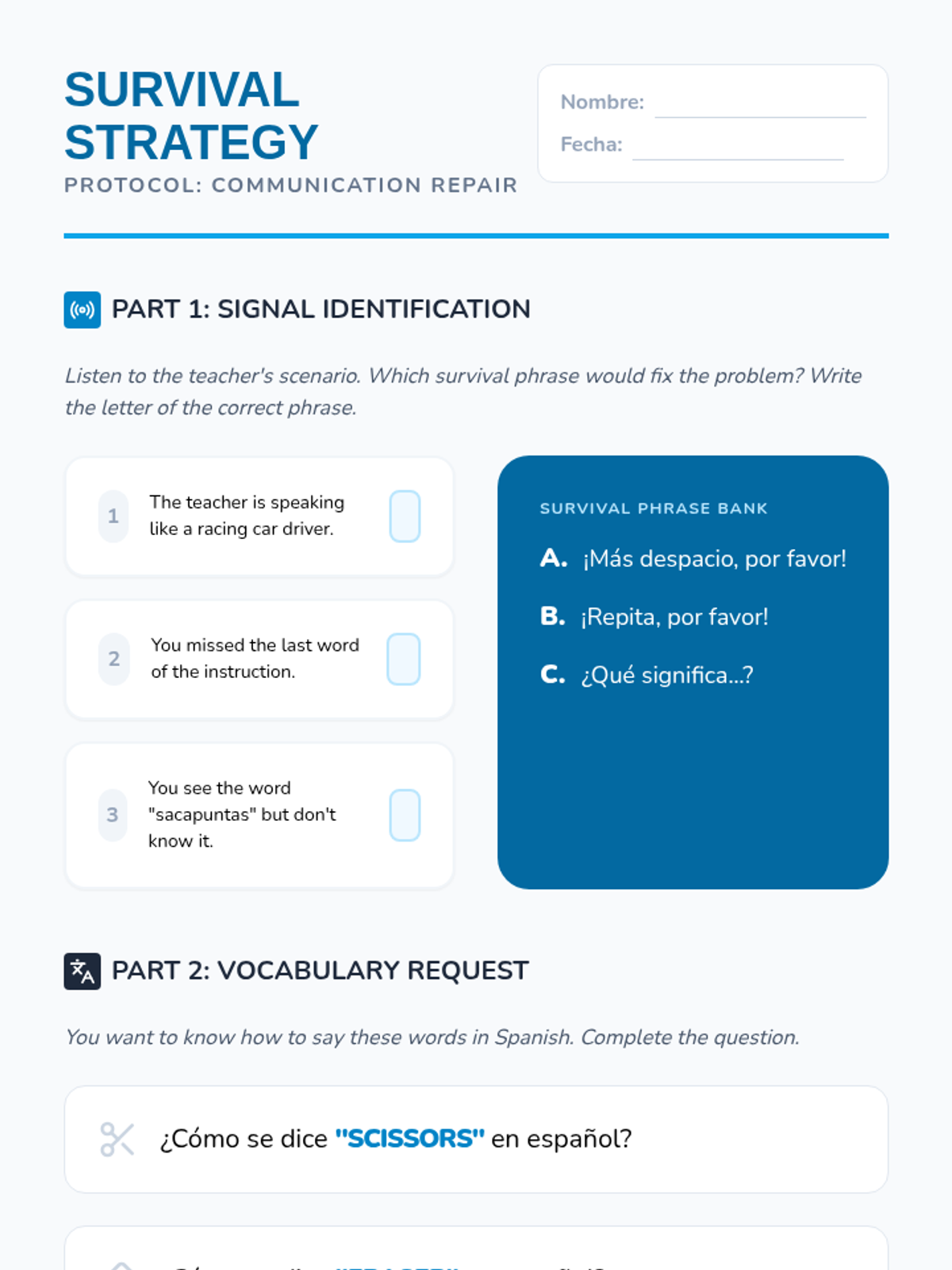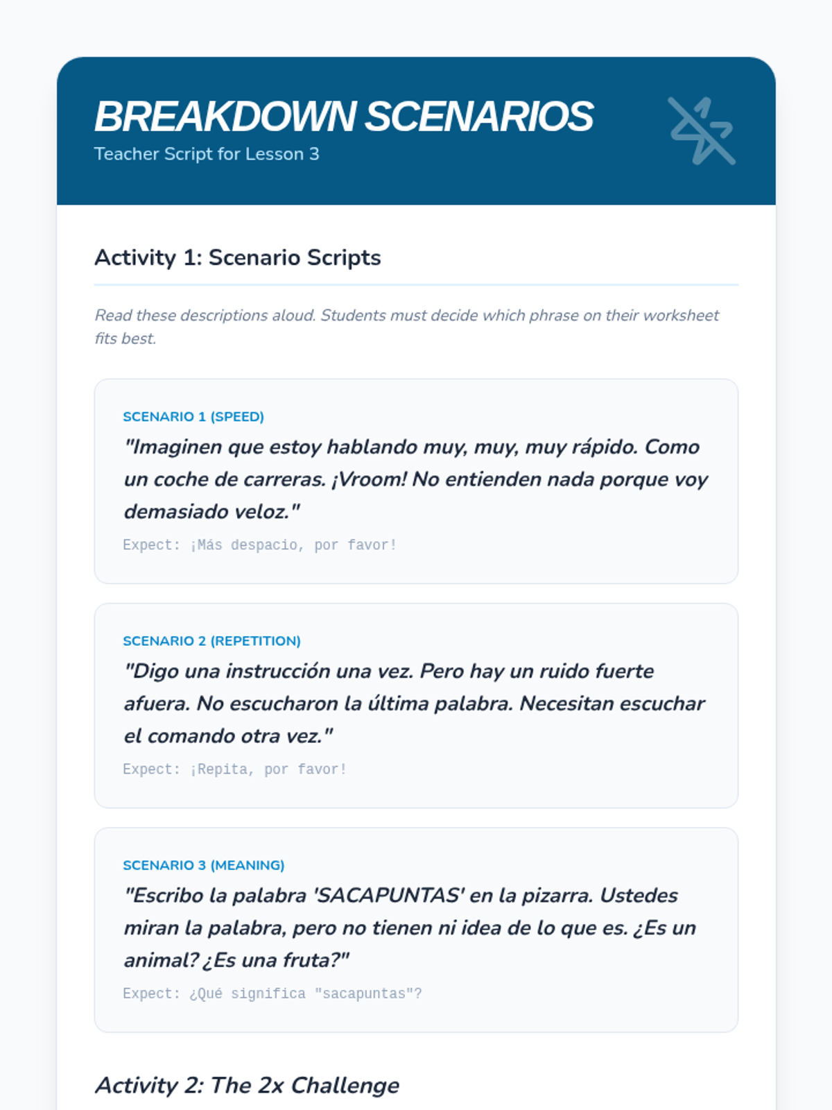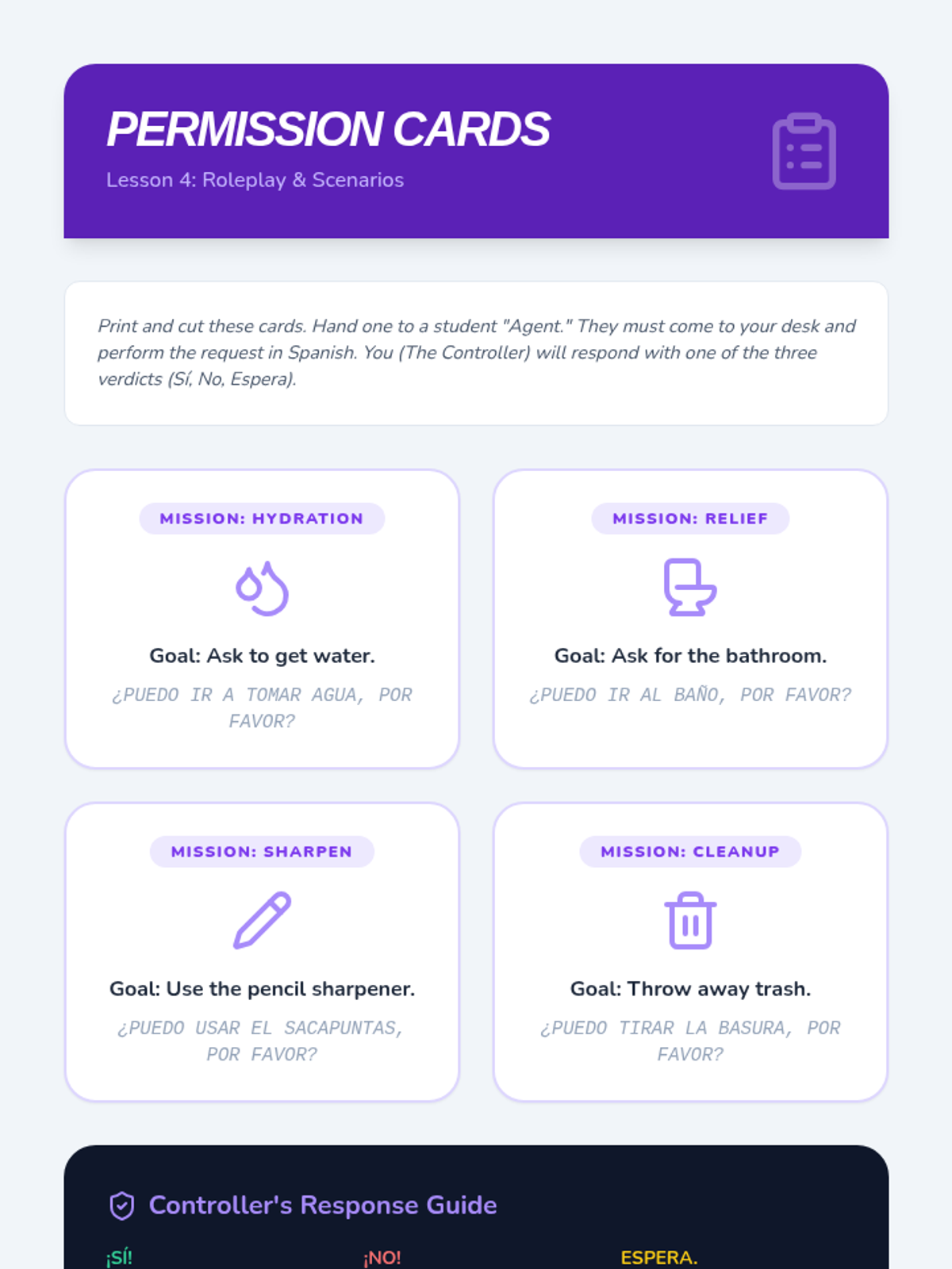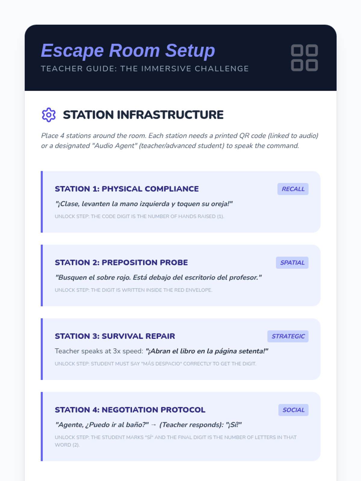 A high-energy, immersive series of lessons designed to help 8th-grade Spanish beginners react to classroom instructions and use survival phrases. Through TPR and game-based learning, students build the confidence to navigate a Spanish-only classroom environment.
