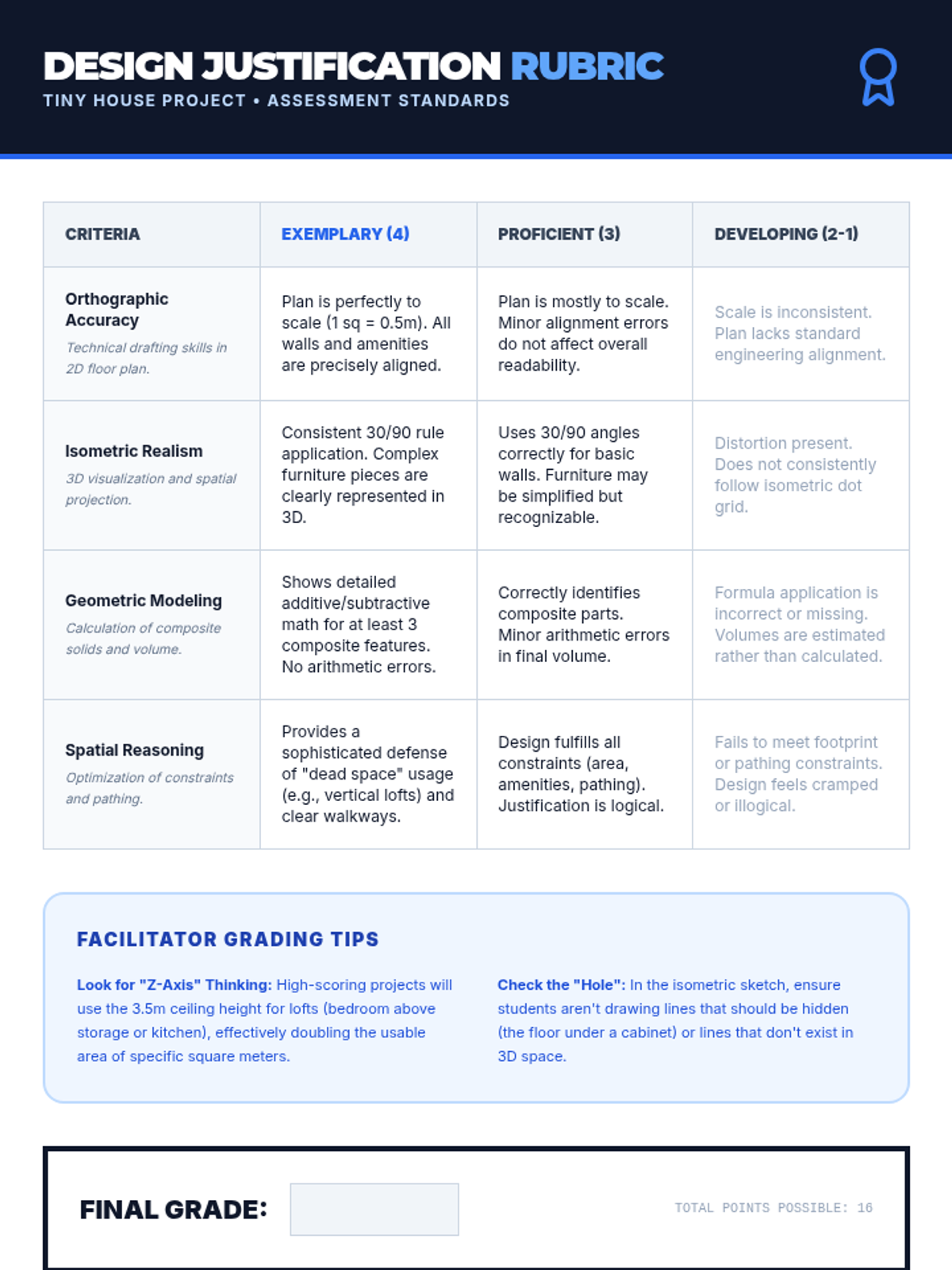 This sequence explores the intersection of geometry and engineering, focusing on 3D visualization, technical drawing, and the optimization of physical forms. Students develop spatial reasoning skills through orthographic and isometric sketching and apply geometric modeling to solve real-world design constraints.