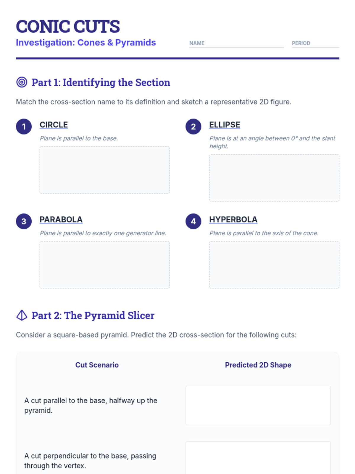 This sequence explores spatial visualization through the study of cross-sections and solids of revolution. Students learn to translate between 2D and 3D representations, a critical skill for engineering, physics, and advanced mathematics.