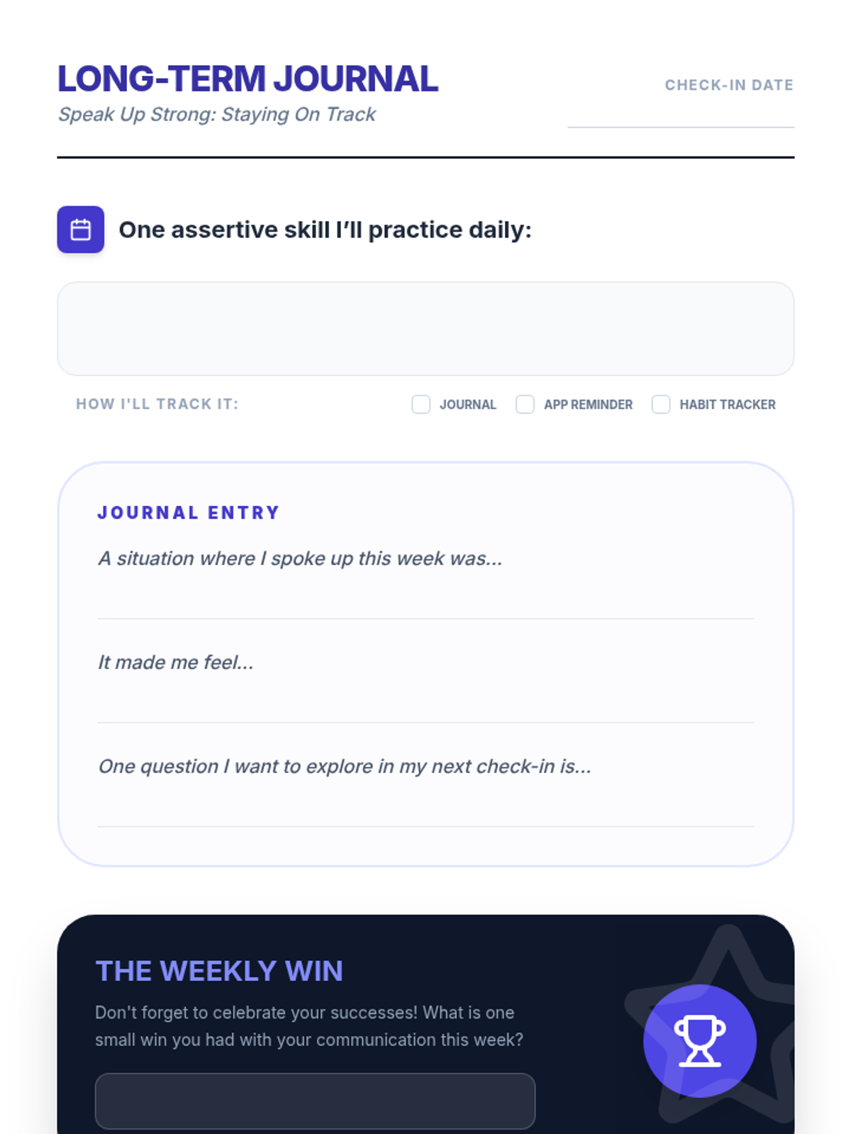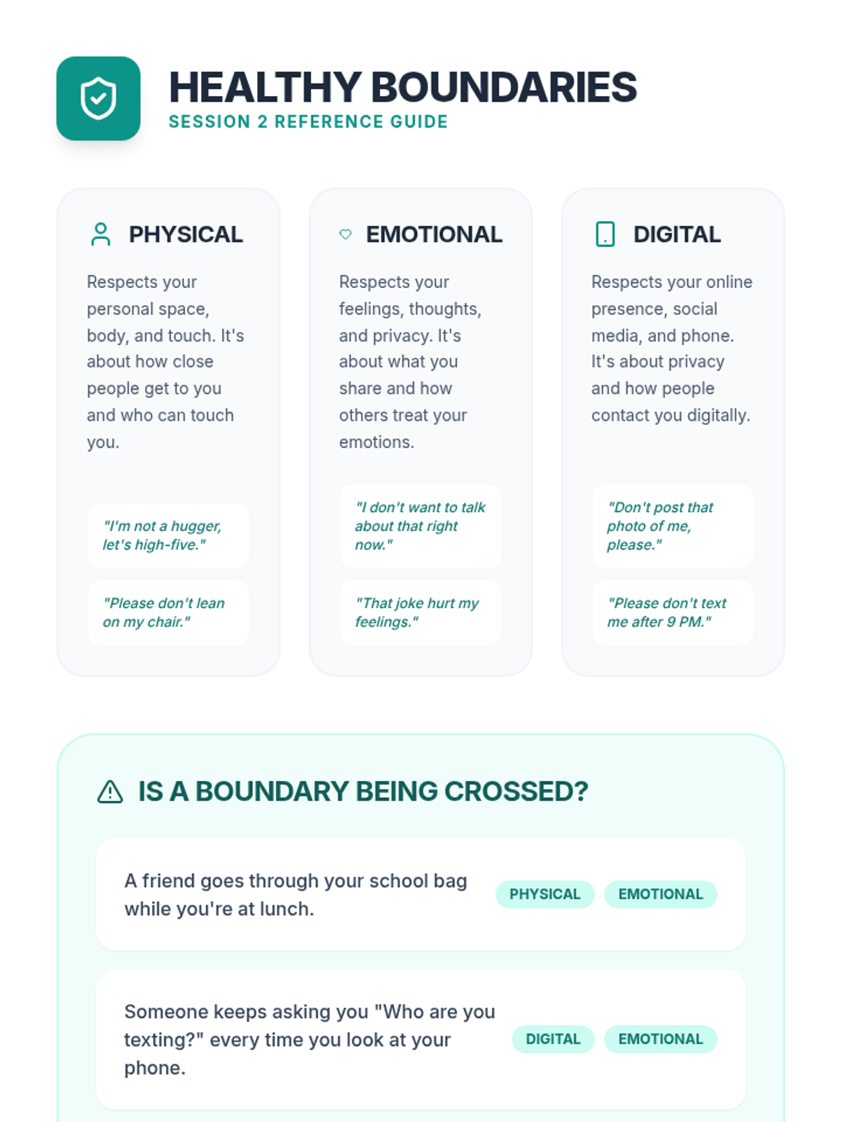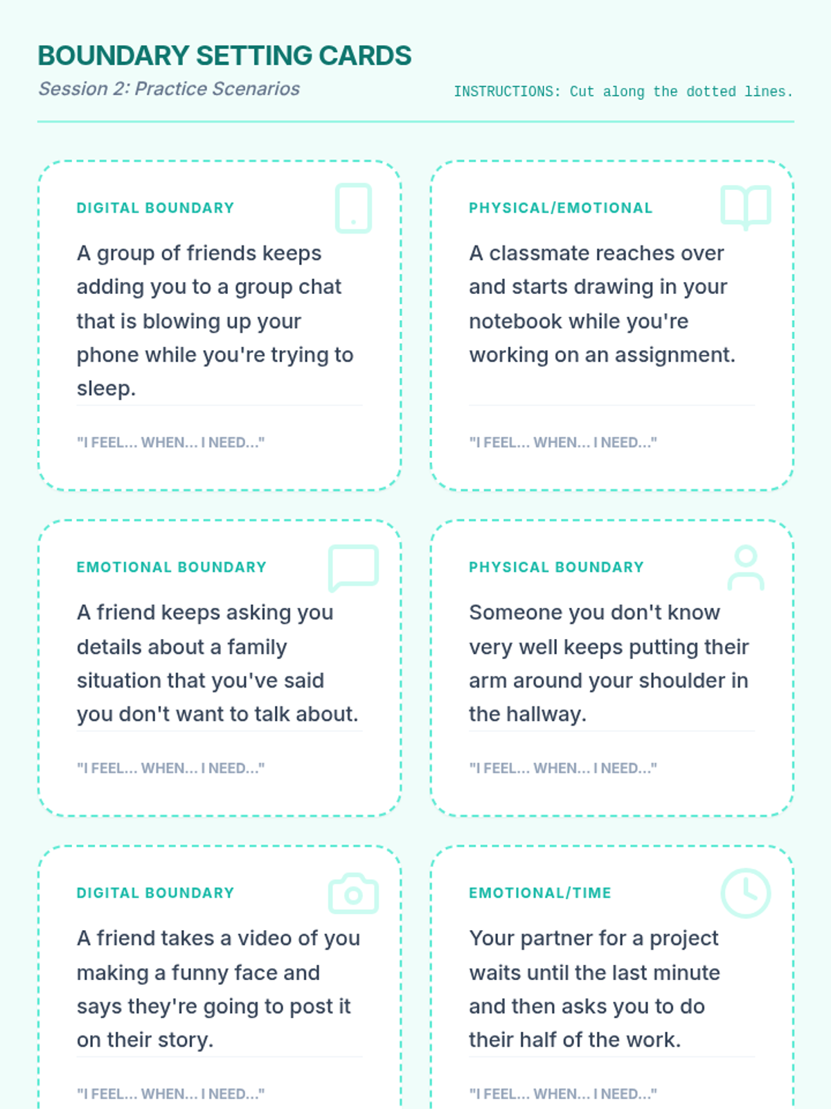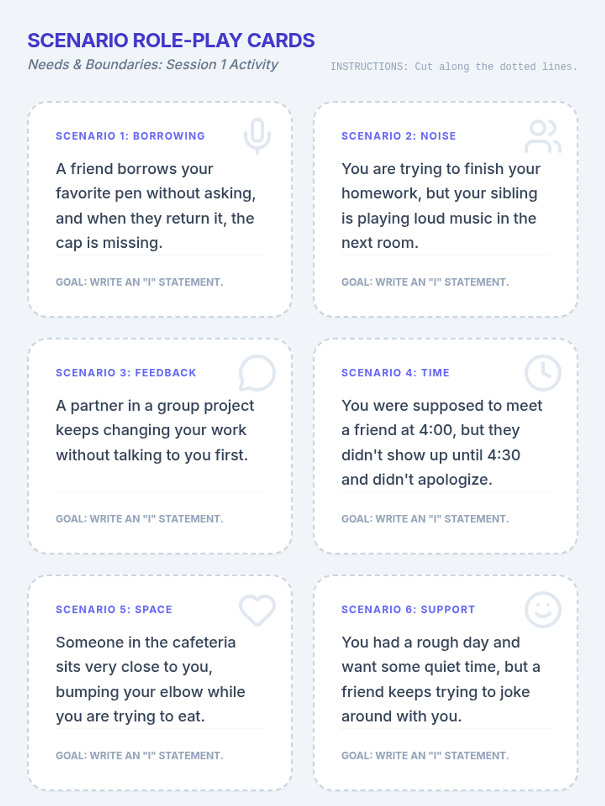 A 5-session individual Tier 3 intervention sequence designed to help middle school students develop assertive communication, set boundaries, and advocate for themselves confidently.