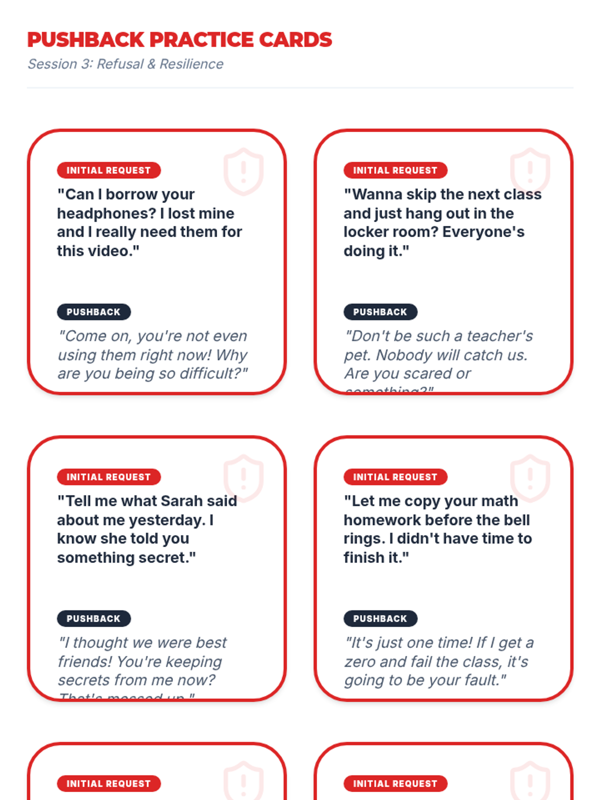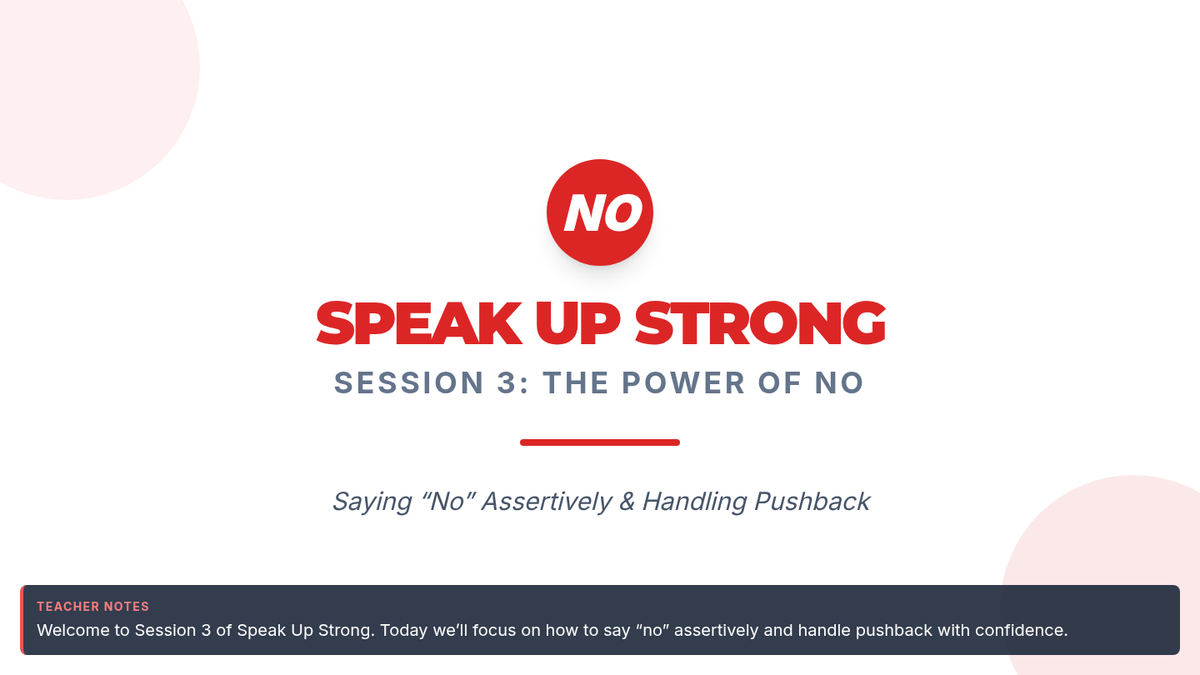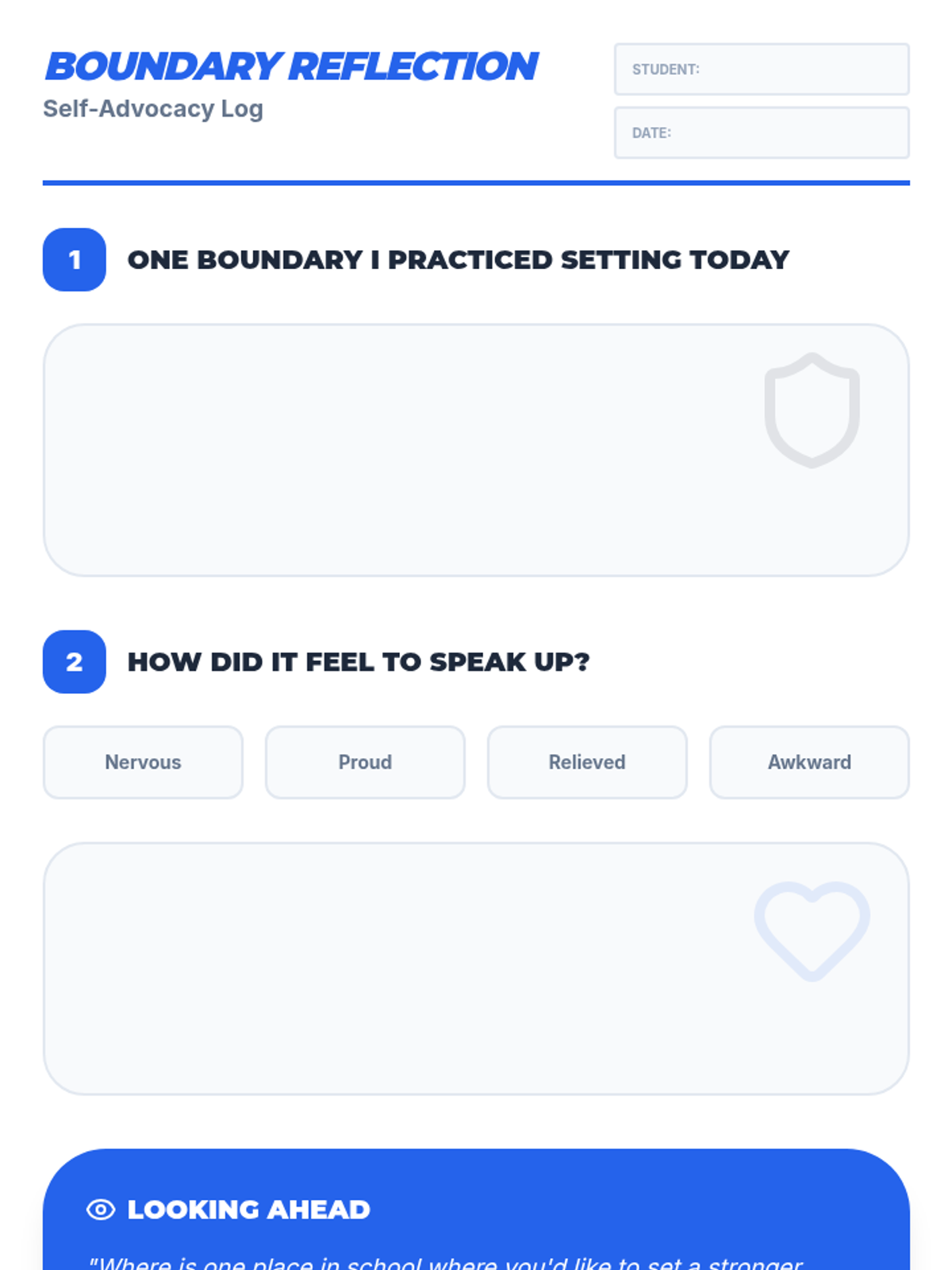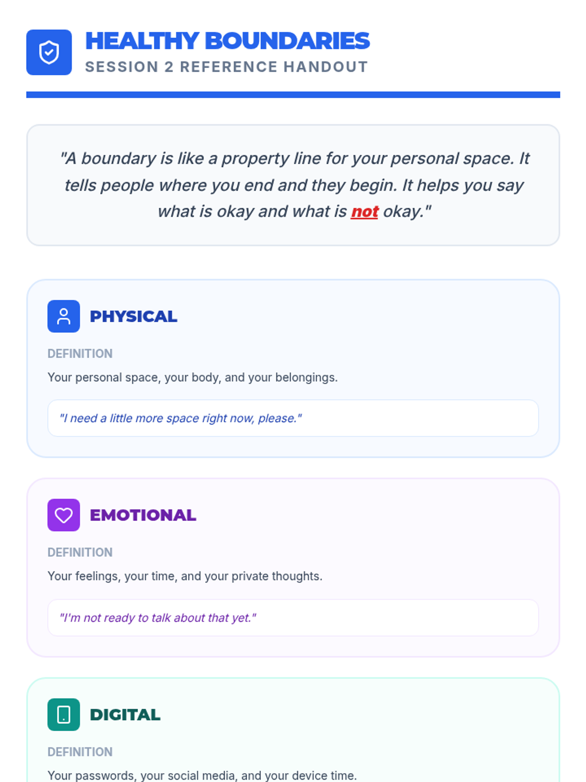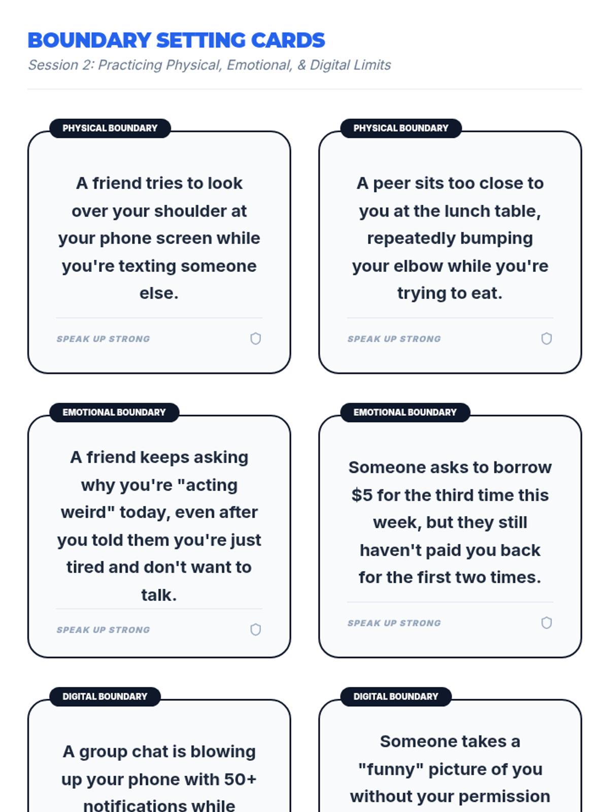 A 5-session individual Tier 3 program designed to help middle school students develop assertive communication, set healthy boundaries, and build self-advocacy skills through role-play and reflection.