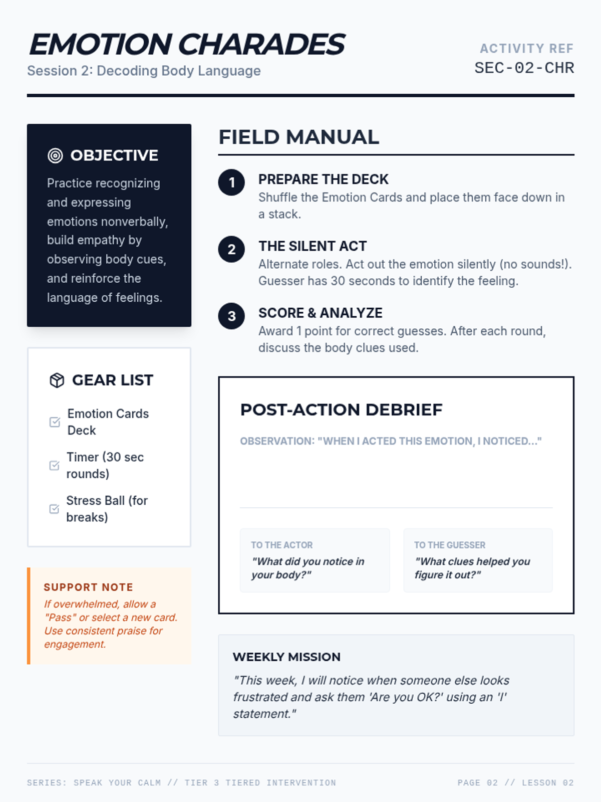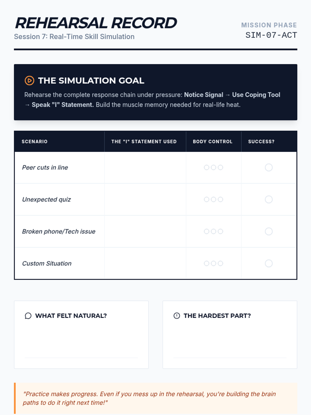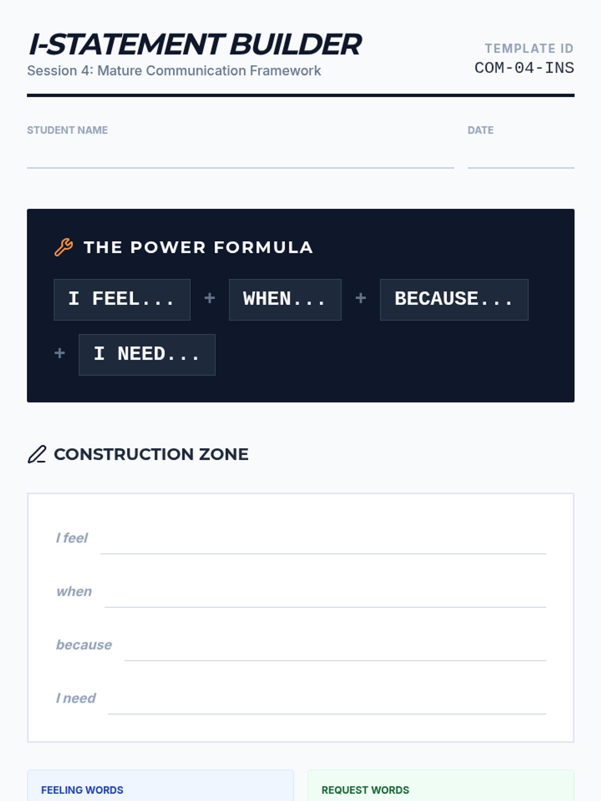 A 12-week sophisticated intervention for middle schoolers (ages 10-13) to master impulse control, emotional intelligence, and interpersonal trust using a behavioral analysis framework.