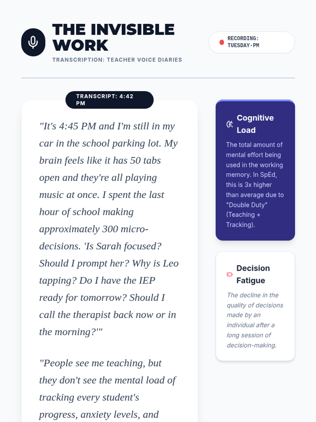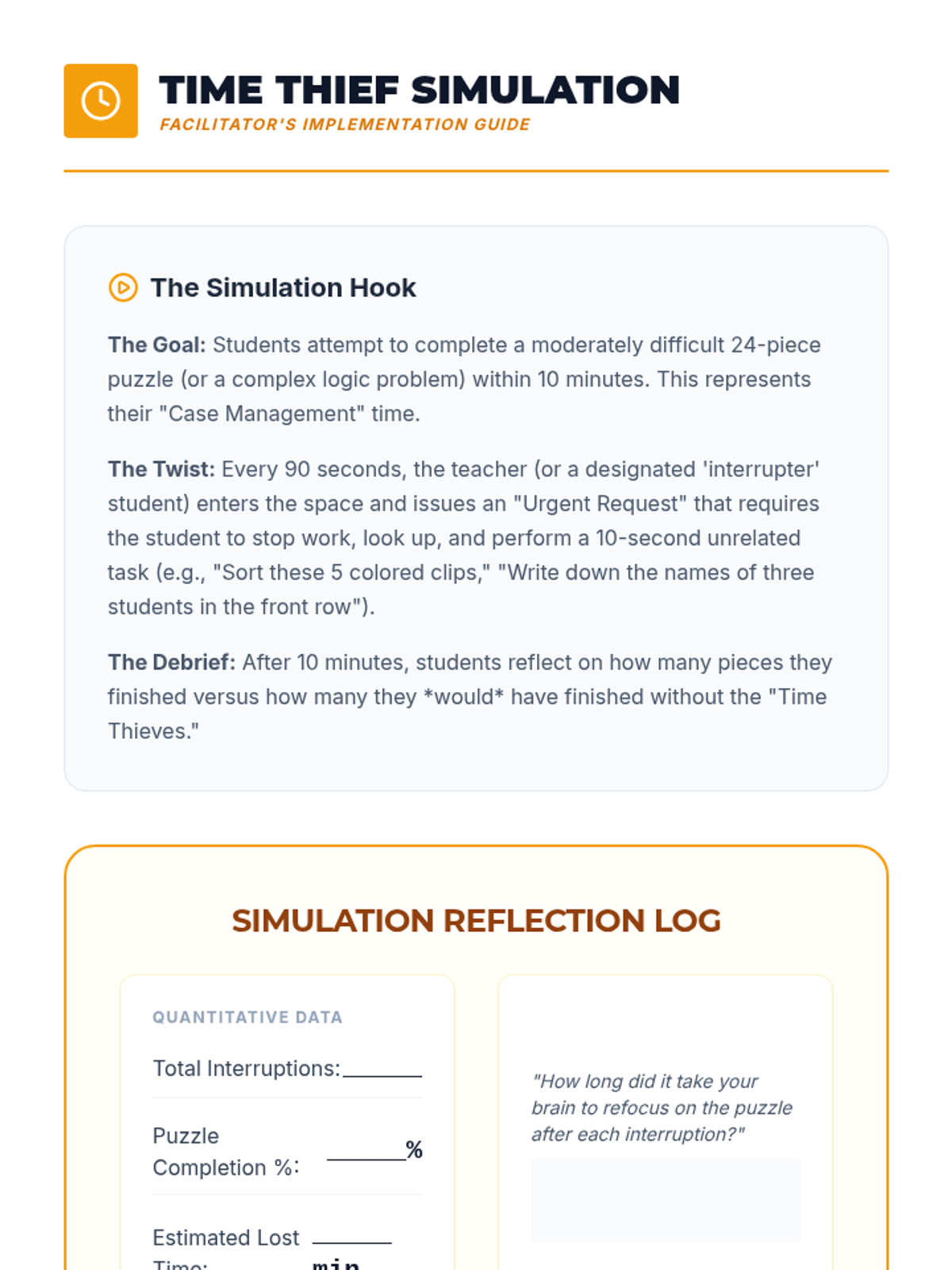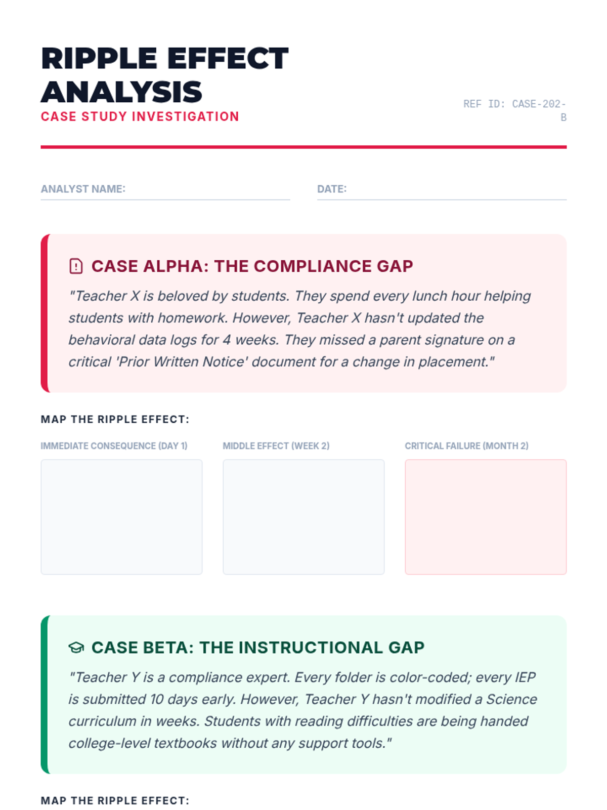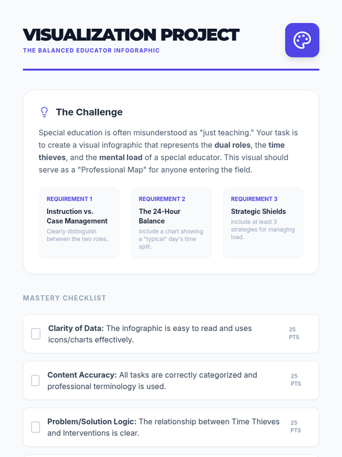 Students explore the dual role of Special Education teachers: instruction and case management. They analyze the impact of time management on student outcomes and develop strategies to balance competing professional demands.