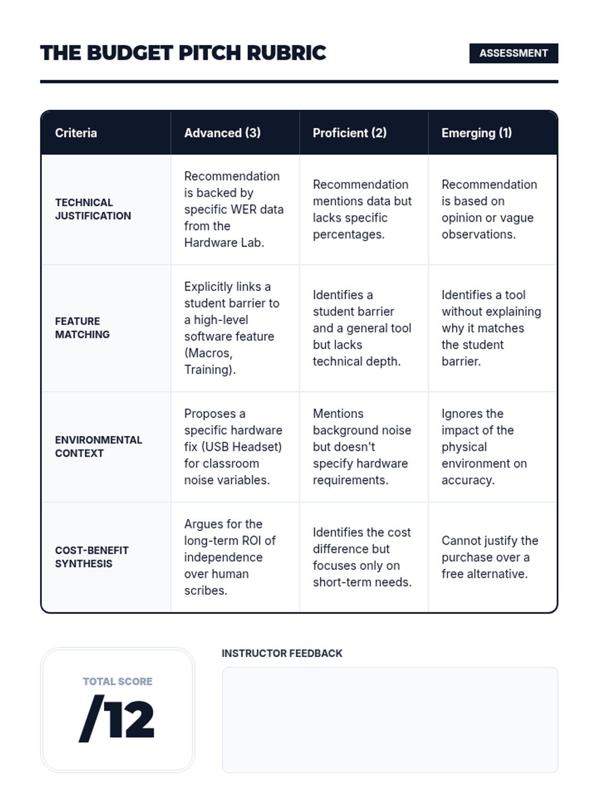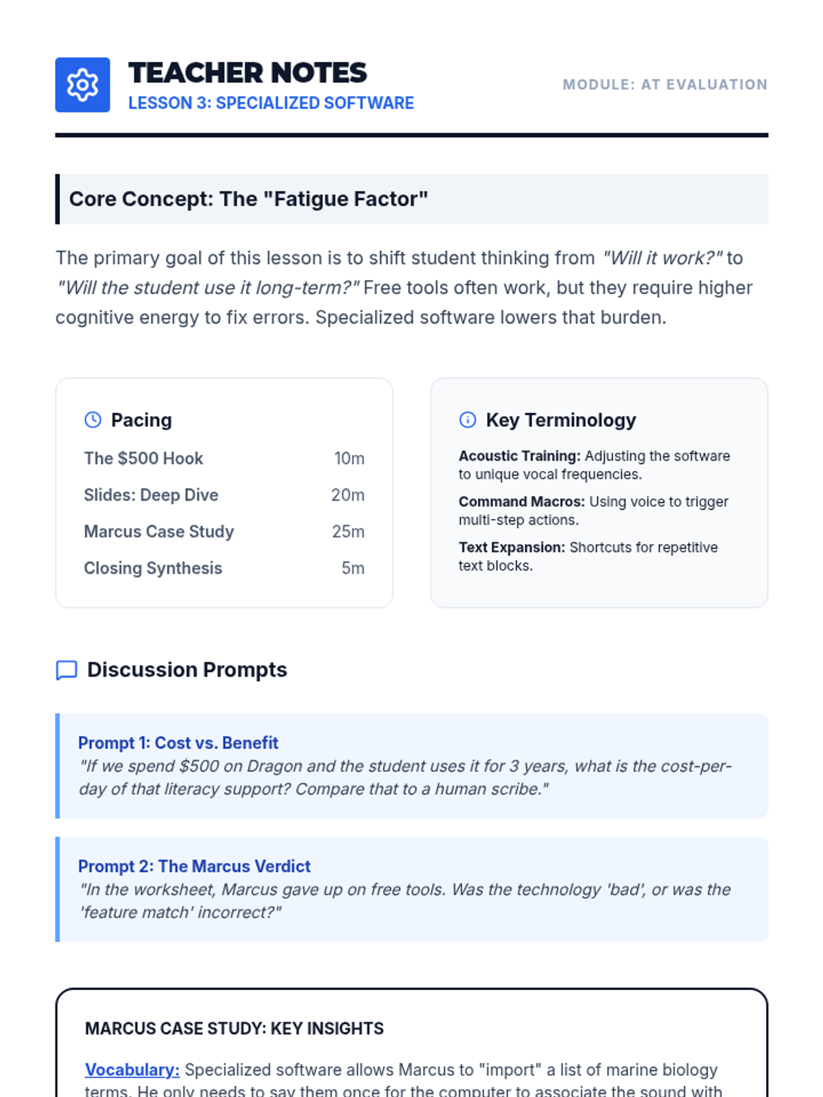This sequence guides pre-service teachers through the technical evaluation of speech recognition (SR) technologies, covering built-in tools, specialized software, hardware requirements, and environmental factors to make informed recommendations for K-12 students.