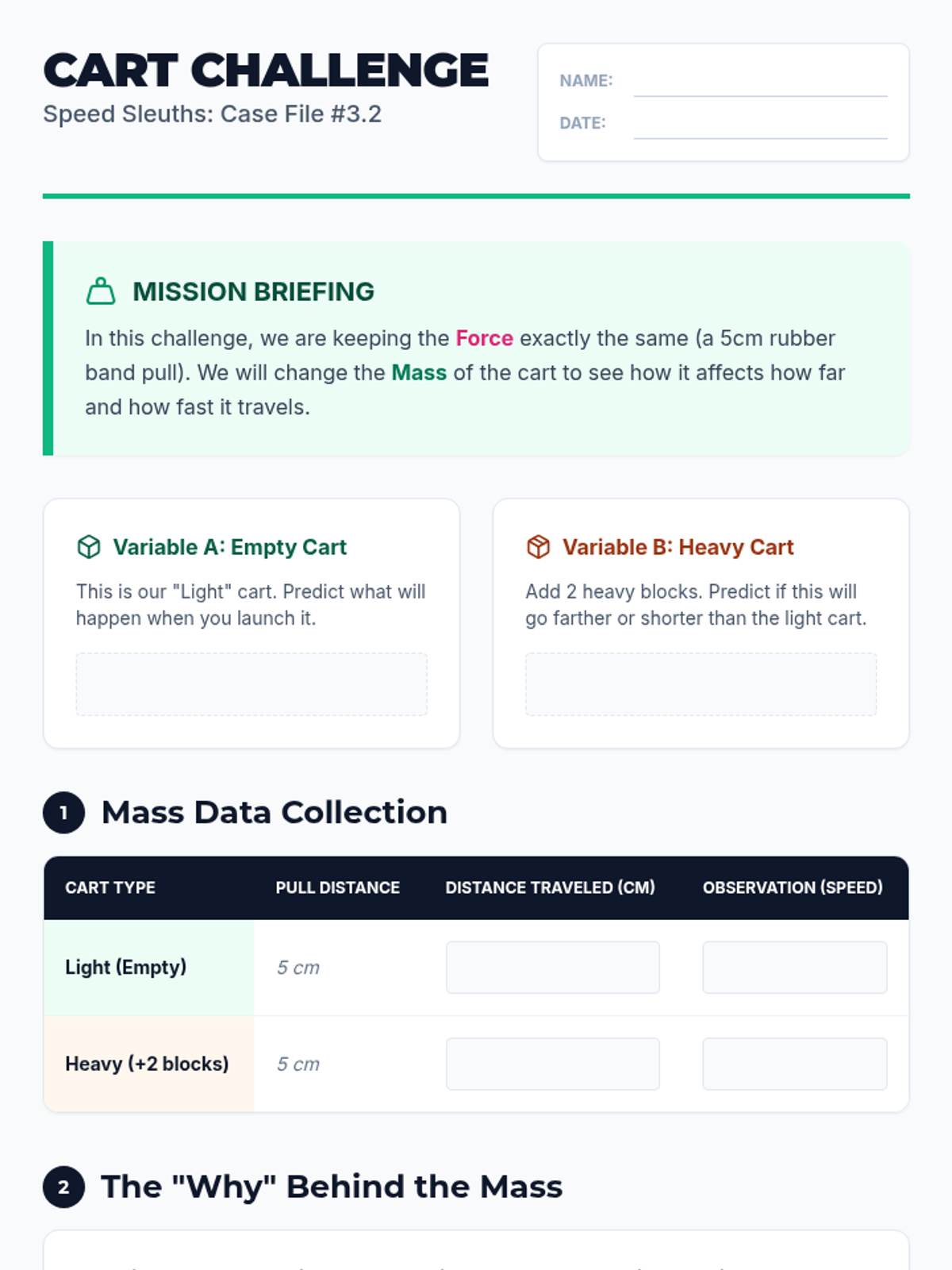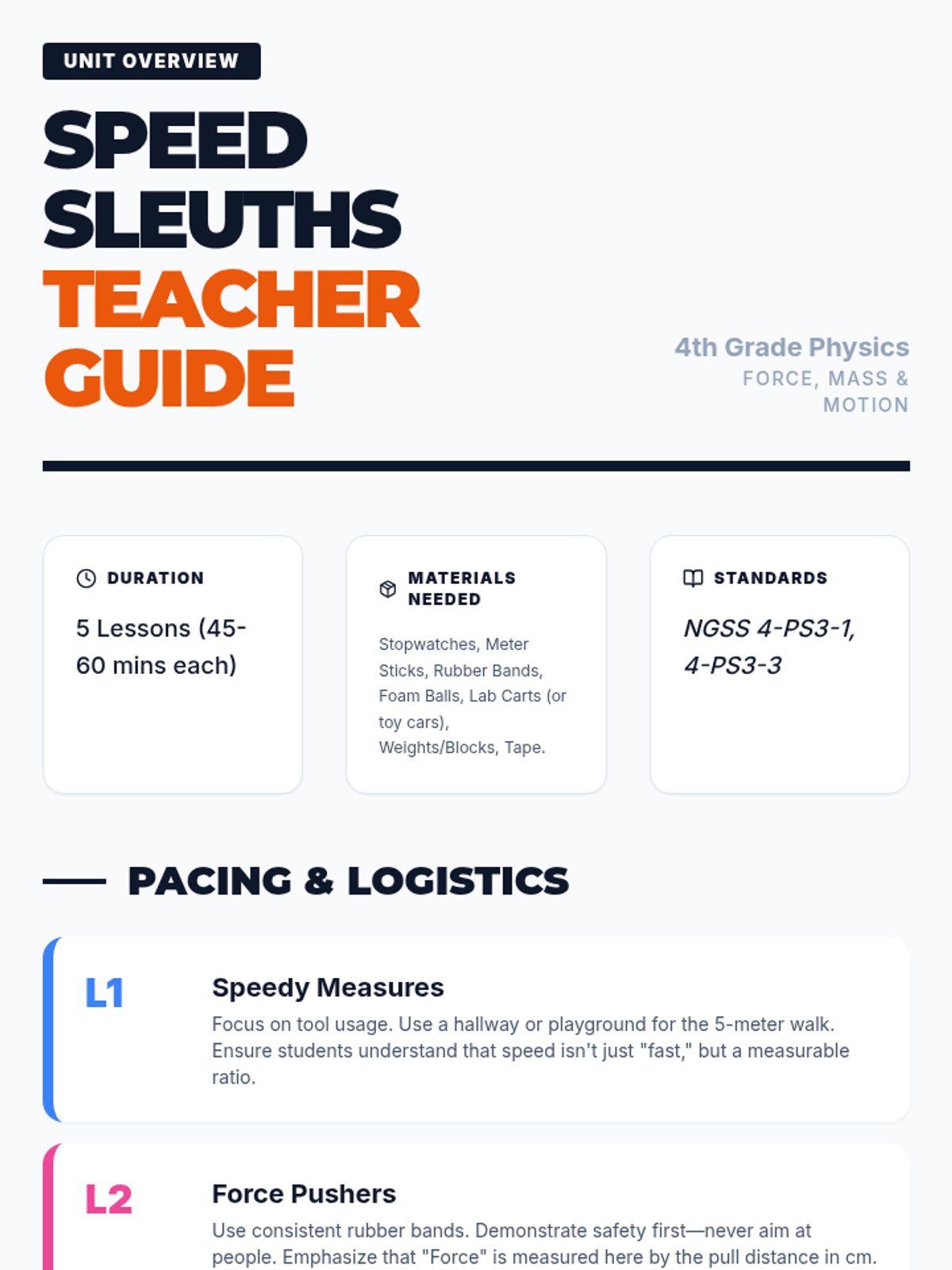 This sequence explores the physical principles of motion, mass, and force. Students engage in hands-on experimentation to understand how distance and time determine speed, how varying force impacts acceleration, and how mass influences the energy required for movement, culminating in data visualization and predictive modeling.