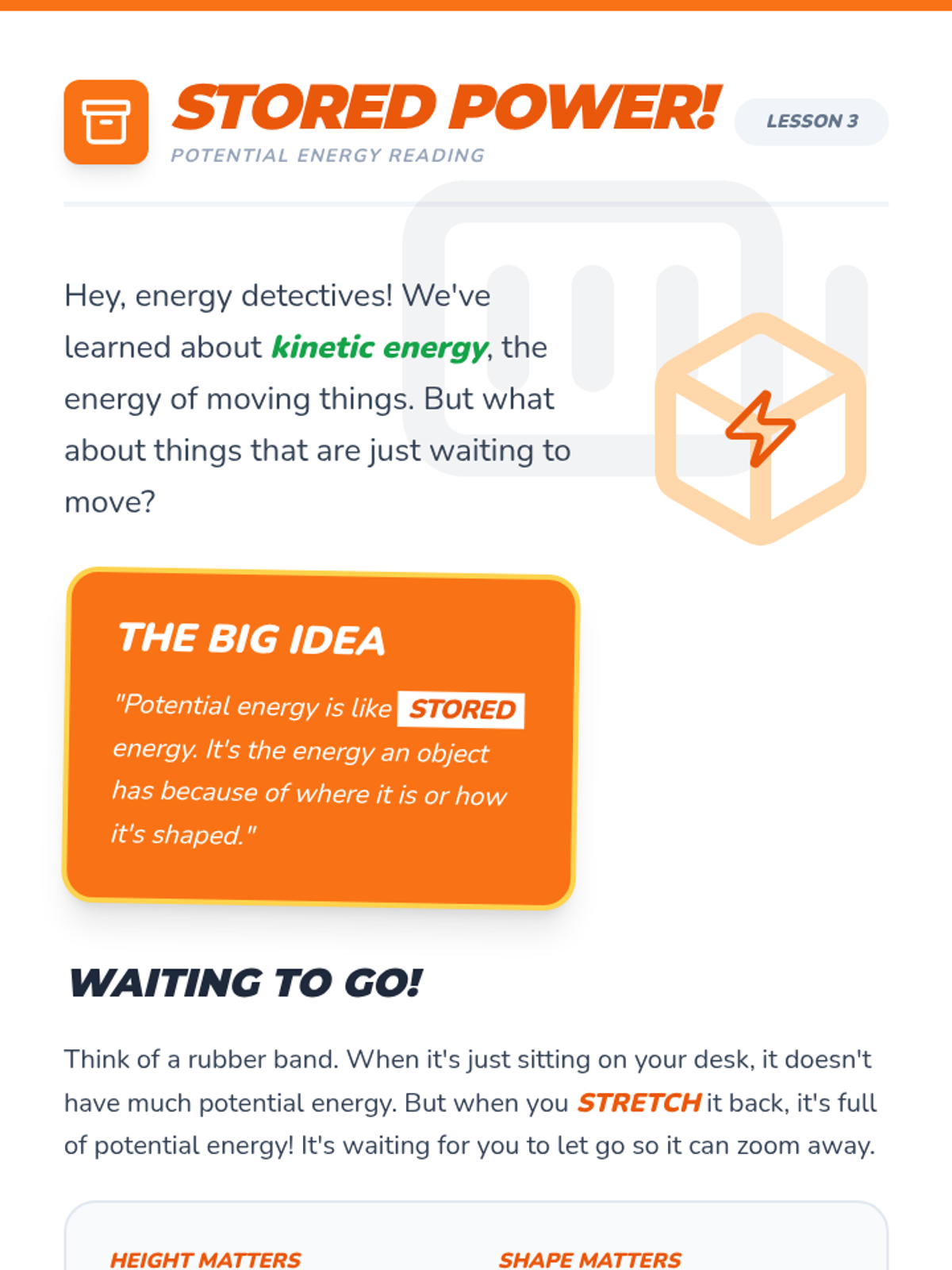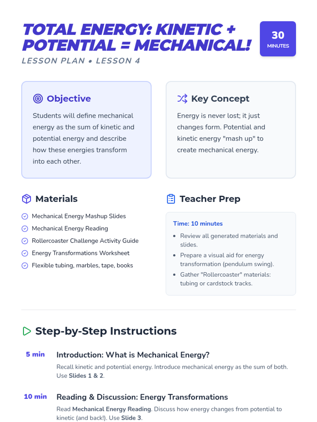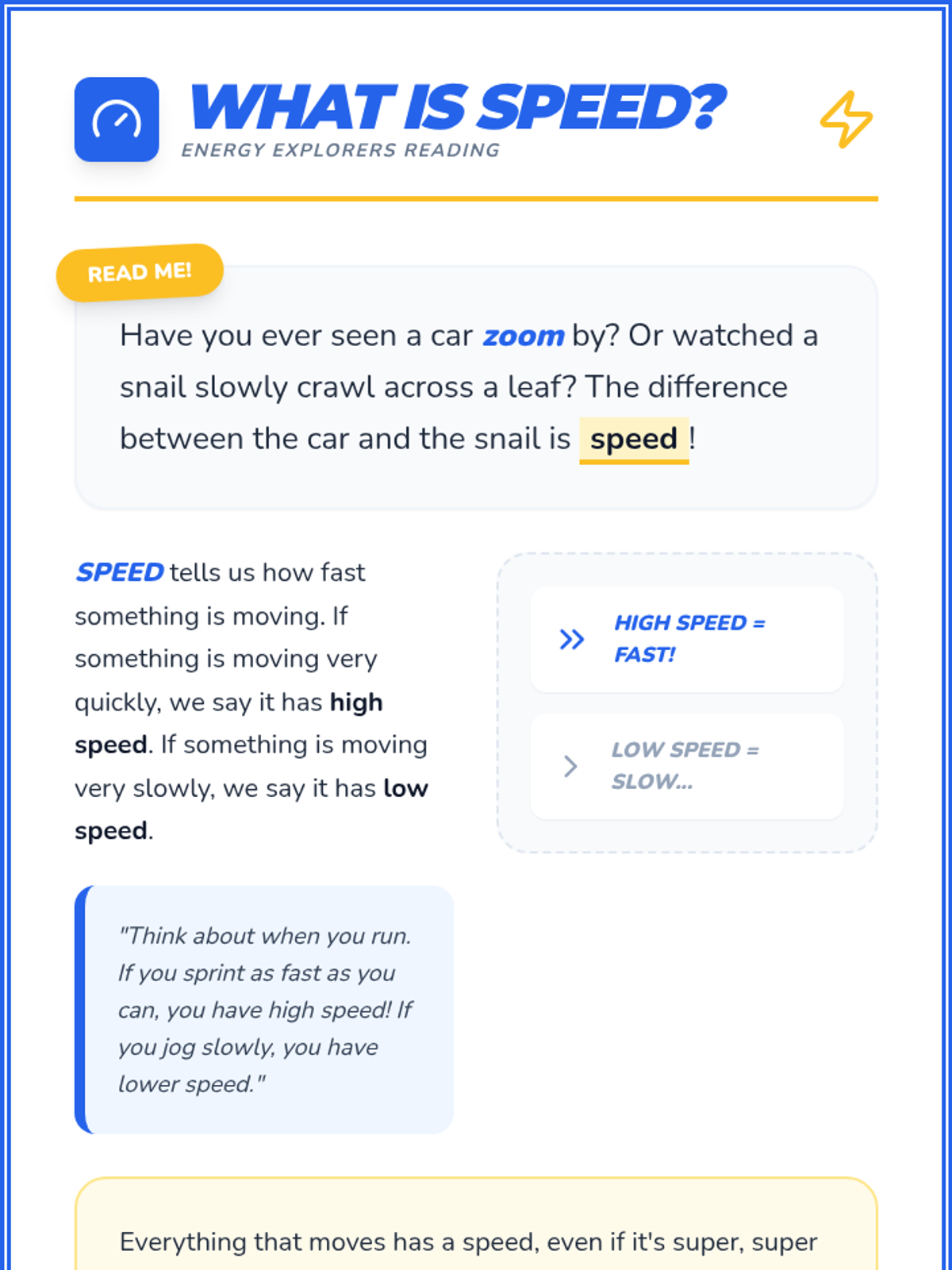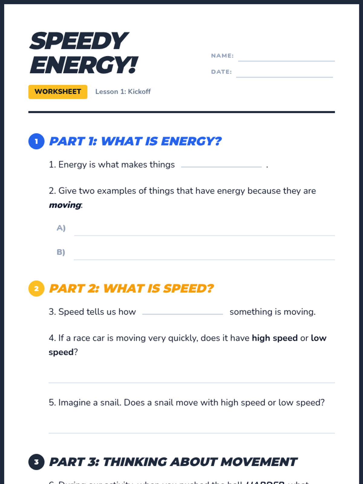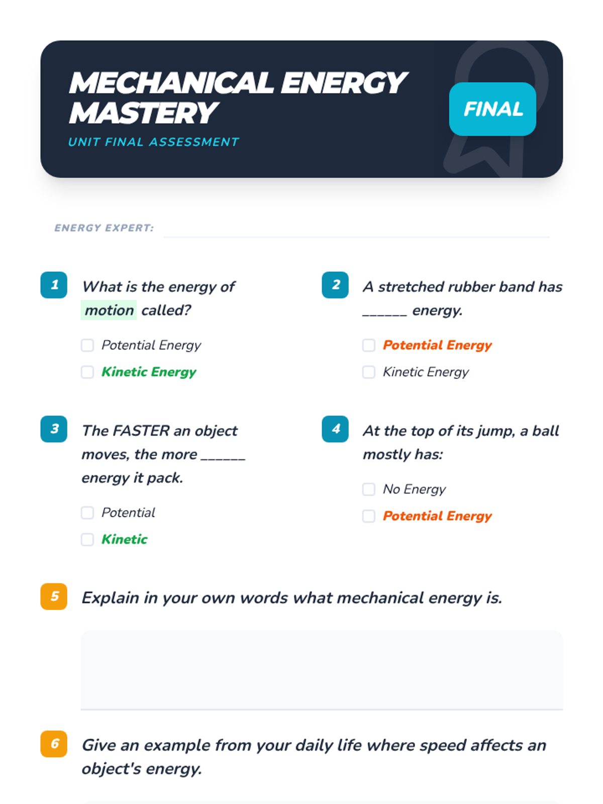 A 5-day unit for 3rd graders exploring the relationship between speed and mechanical energy through hands-on experiments, creative projects, and interactive lessons.