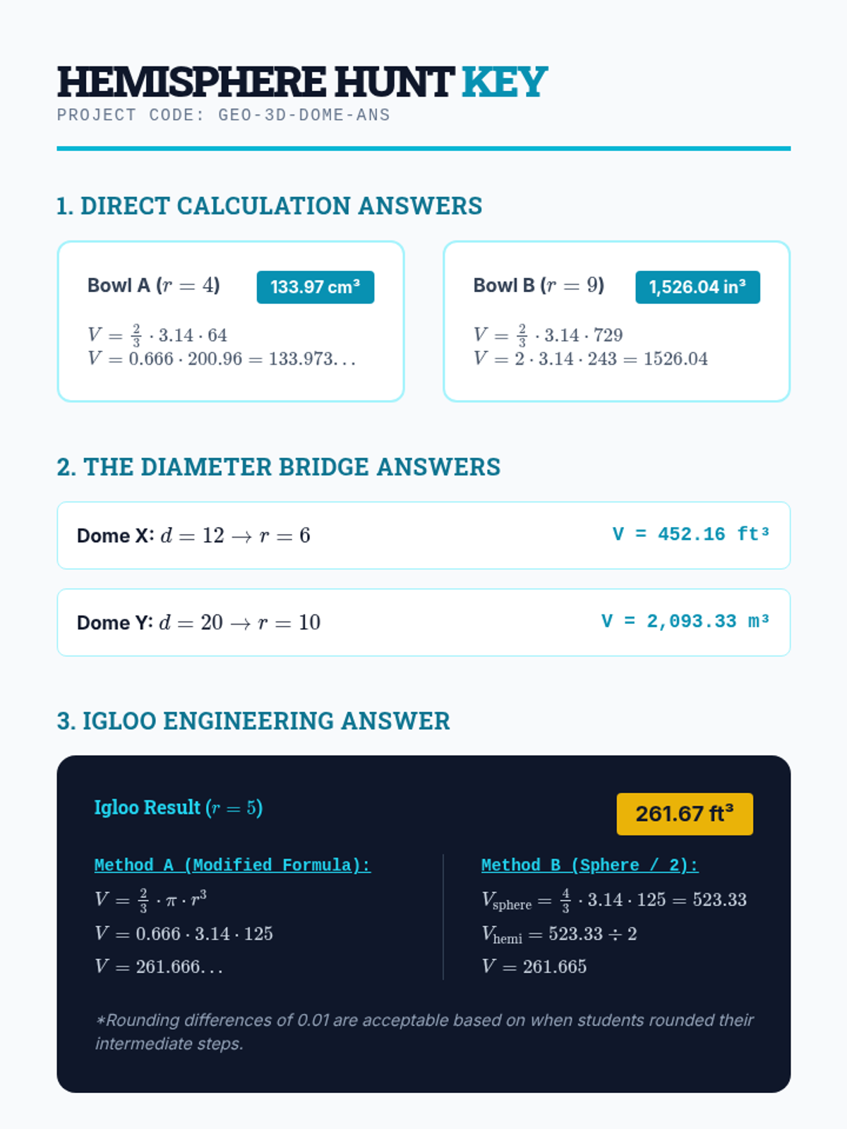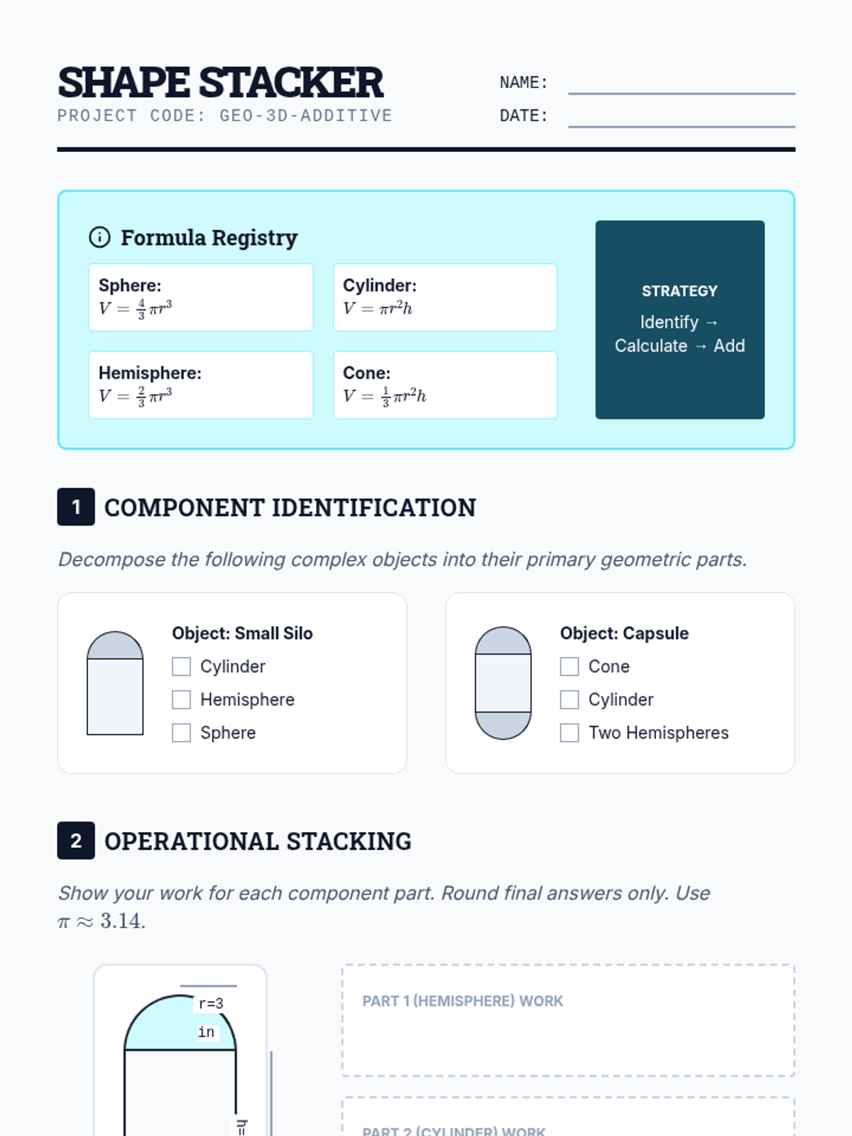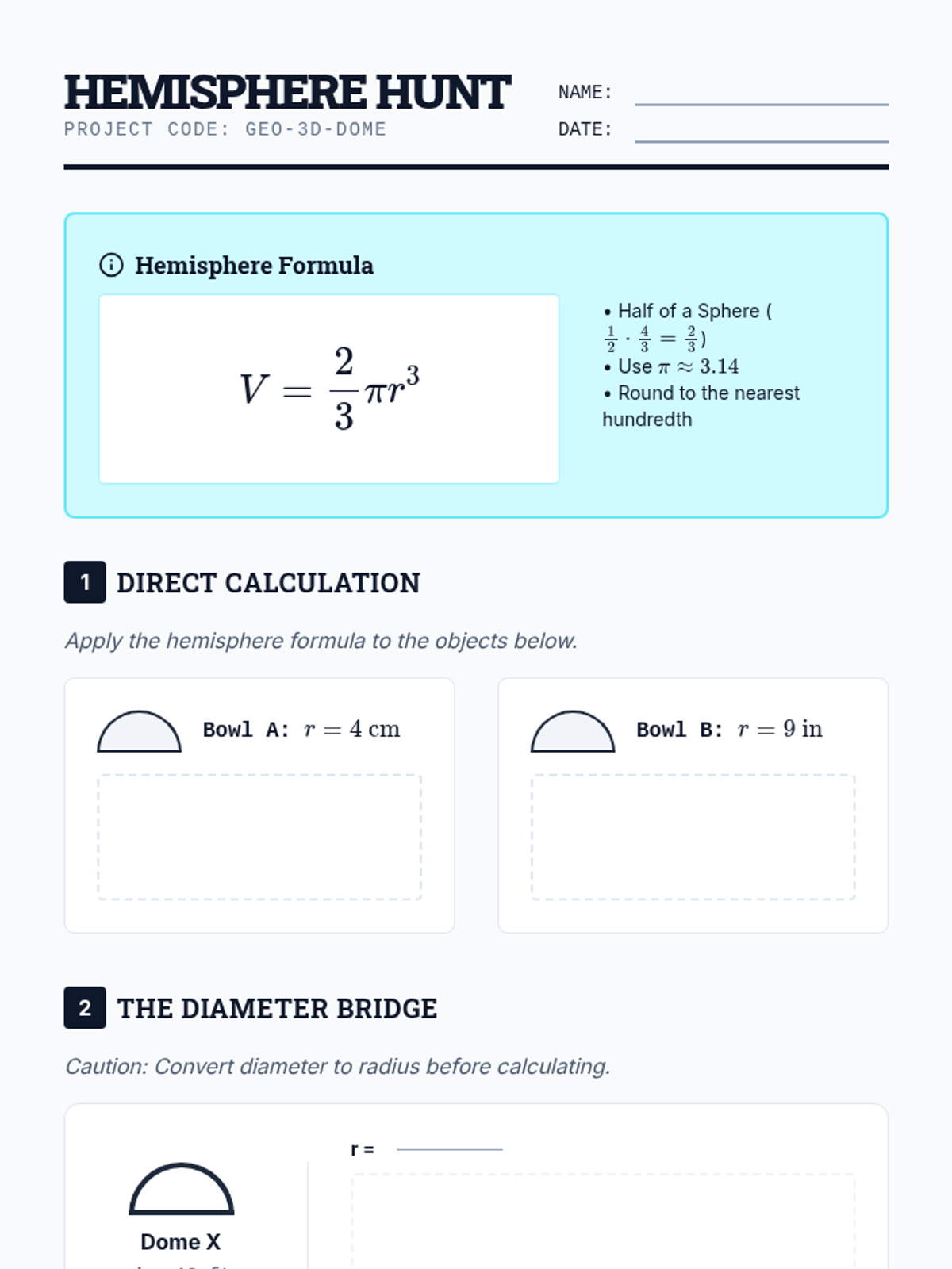 A comprehensive unit for 7th-grade students focusing on the volume of spheres, hemispheres, and composite solids. Students move from basic formula application to complex multi-step problem solving involving additive and subtractive volume strategies and real-world capacity conversions.