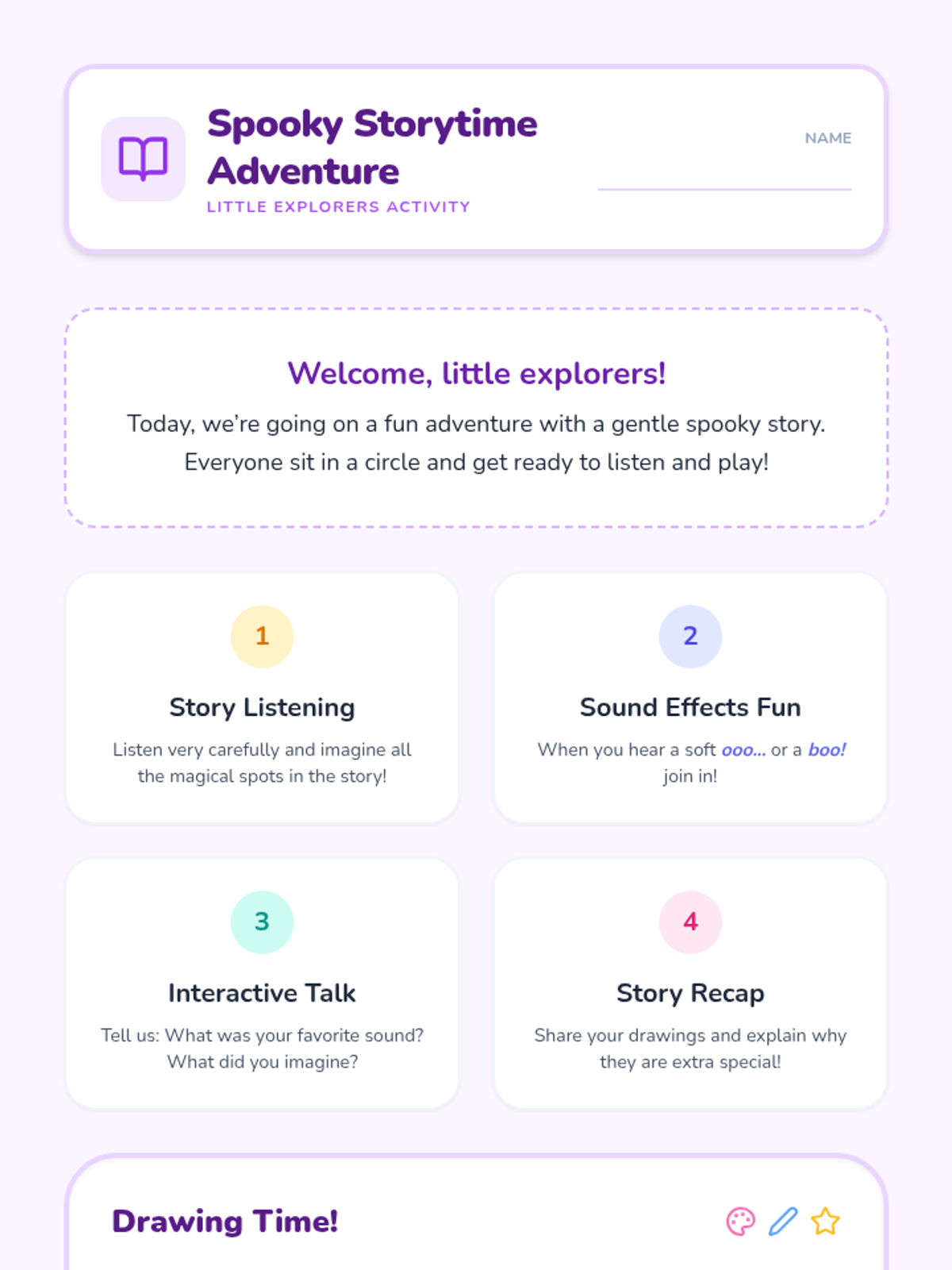 A multi-age exploration of spooky storytelling, ranging from the historical and folkloric legends for older students to gentle, sensory-rich imaginative play for preschoolers.