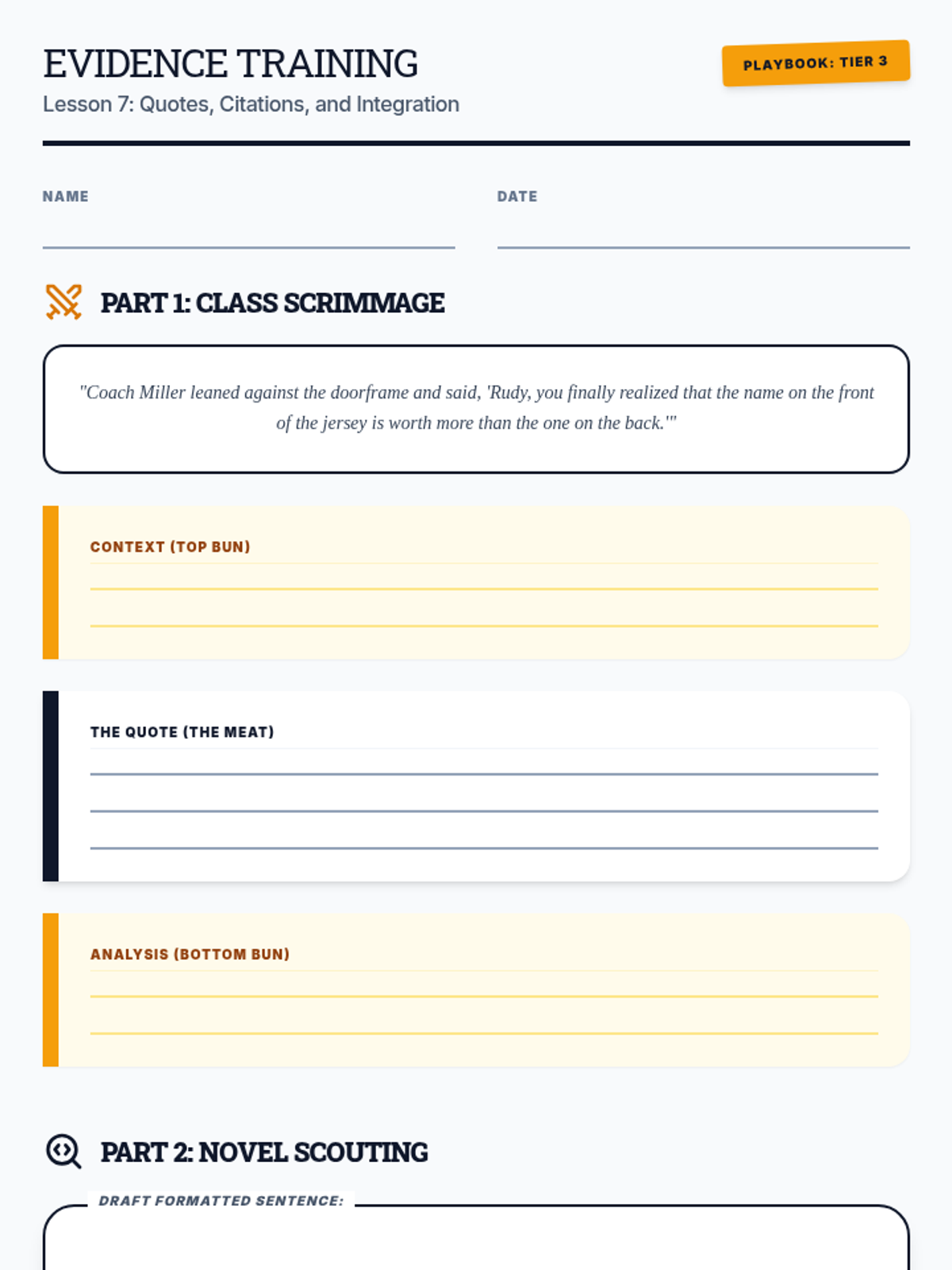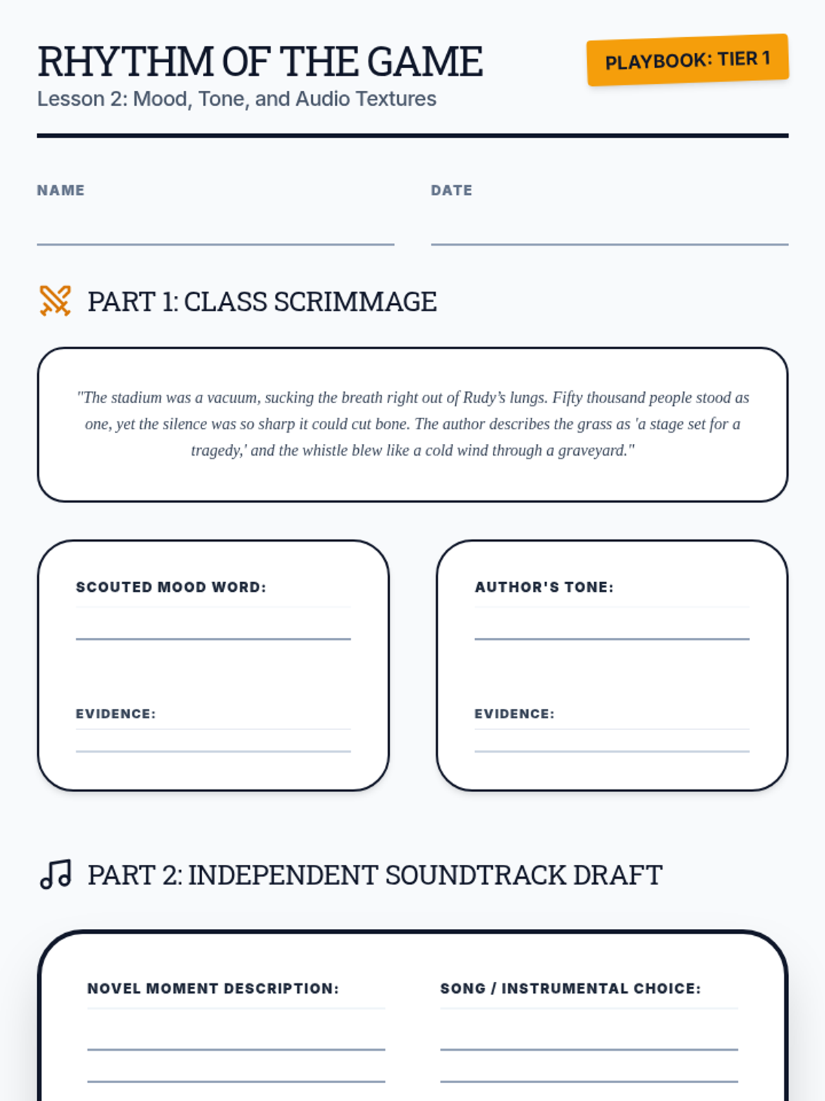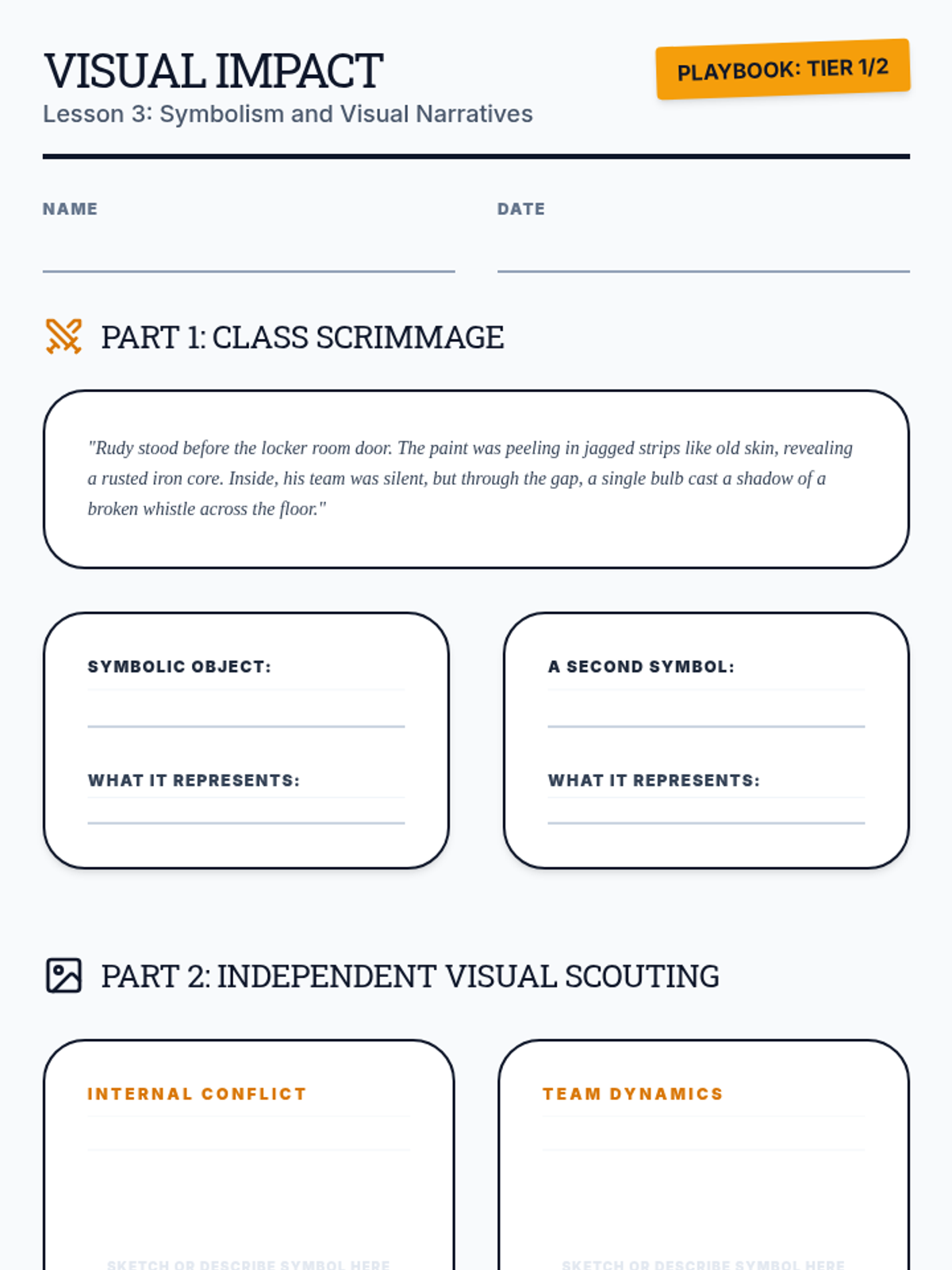 A 4-week series of mini-lessons for Sports Literature designed to support students through an independent novel project. The sequence covers characterization, symbolism, theme analysis, and media literacy through the lens of sports narratives.