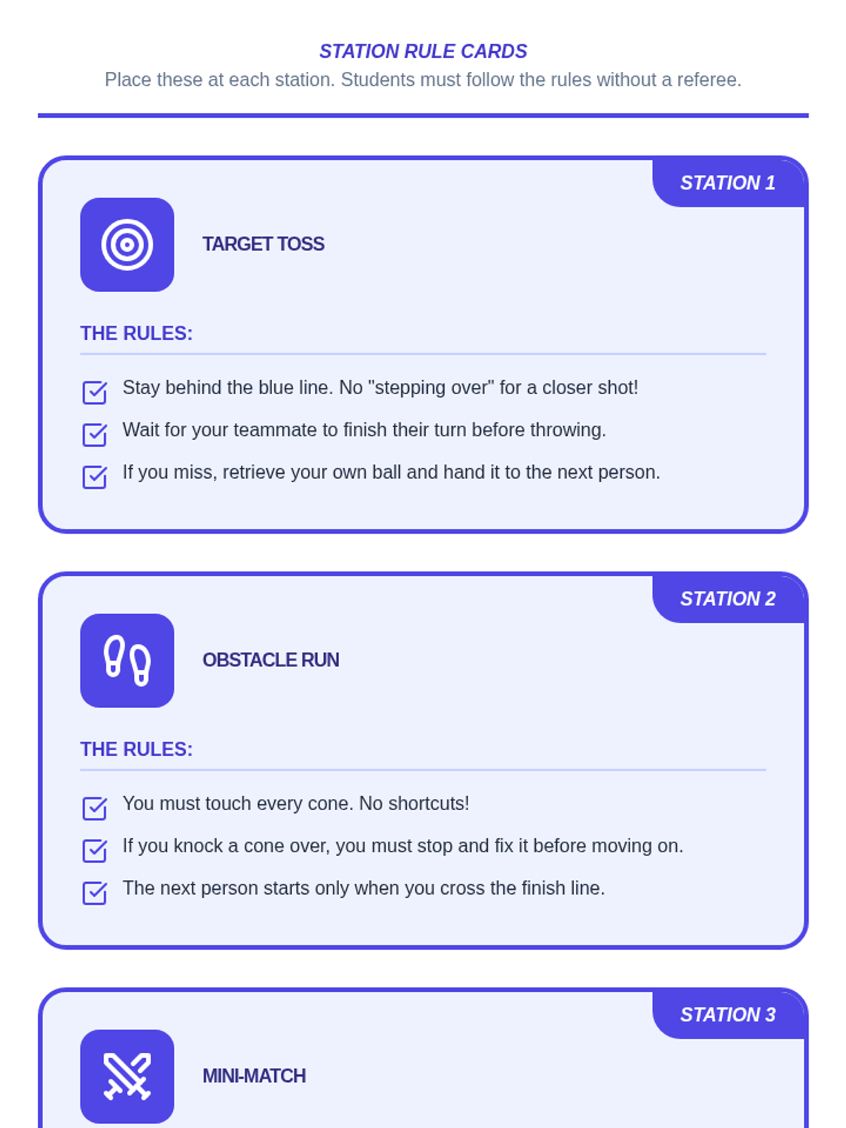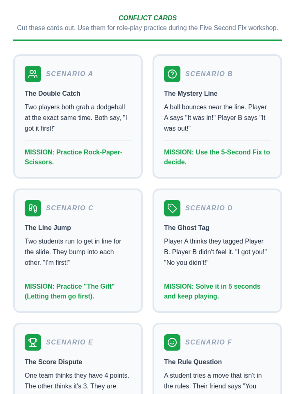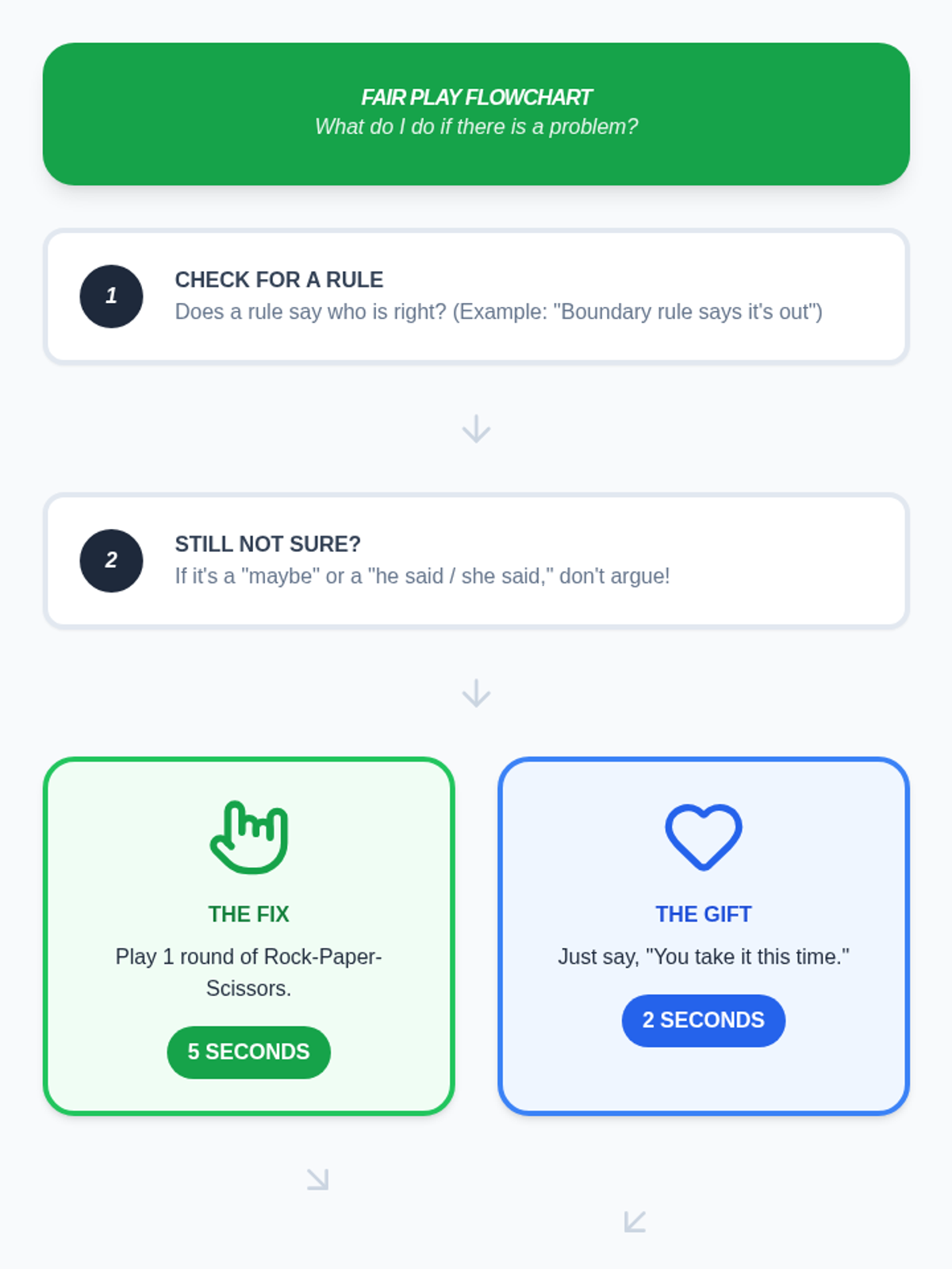 A 1st-grade physical education sequence focused on cognitive and behavioral sportsmanship. Students explore the necessity of rules through inquiry, practice personal integrity and honesty, learn to respect officials, and develop independent conflict resolution skills for fair play.