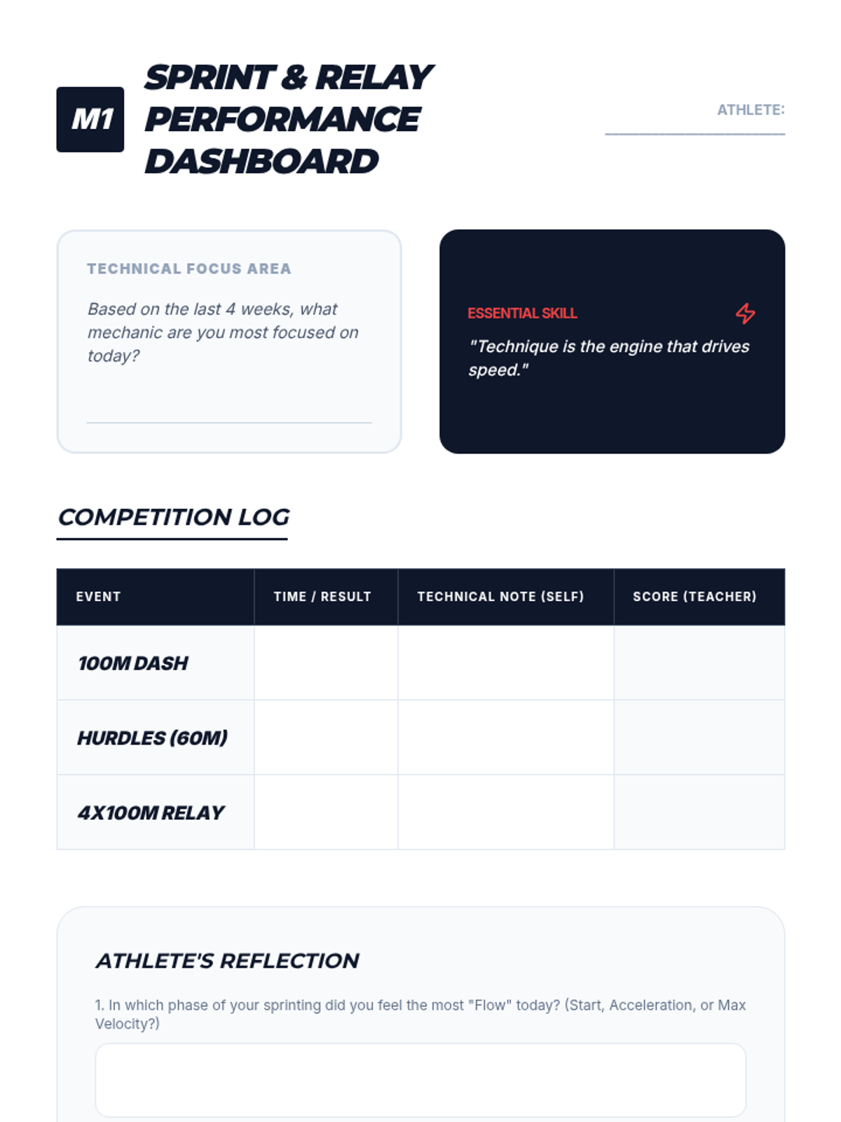 A comprehensive 8th-grade physical education unit focusing on the biomechanics of sprinting, hurdling, and relay coordination, emphasizing technical efficiency and explosive power.