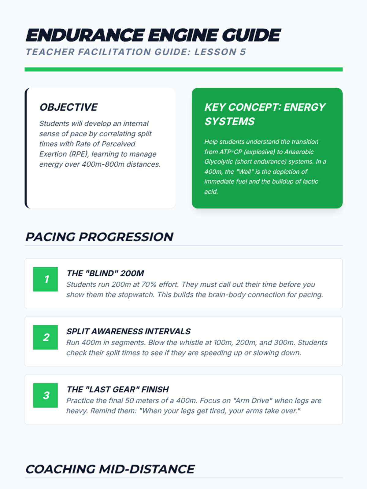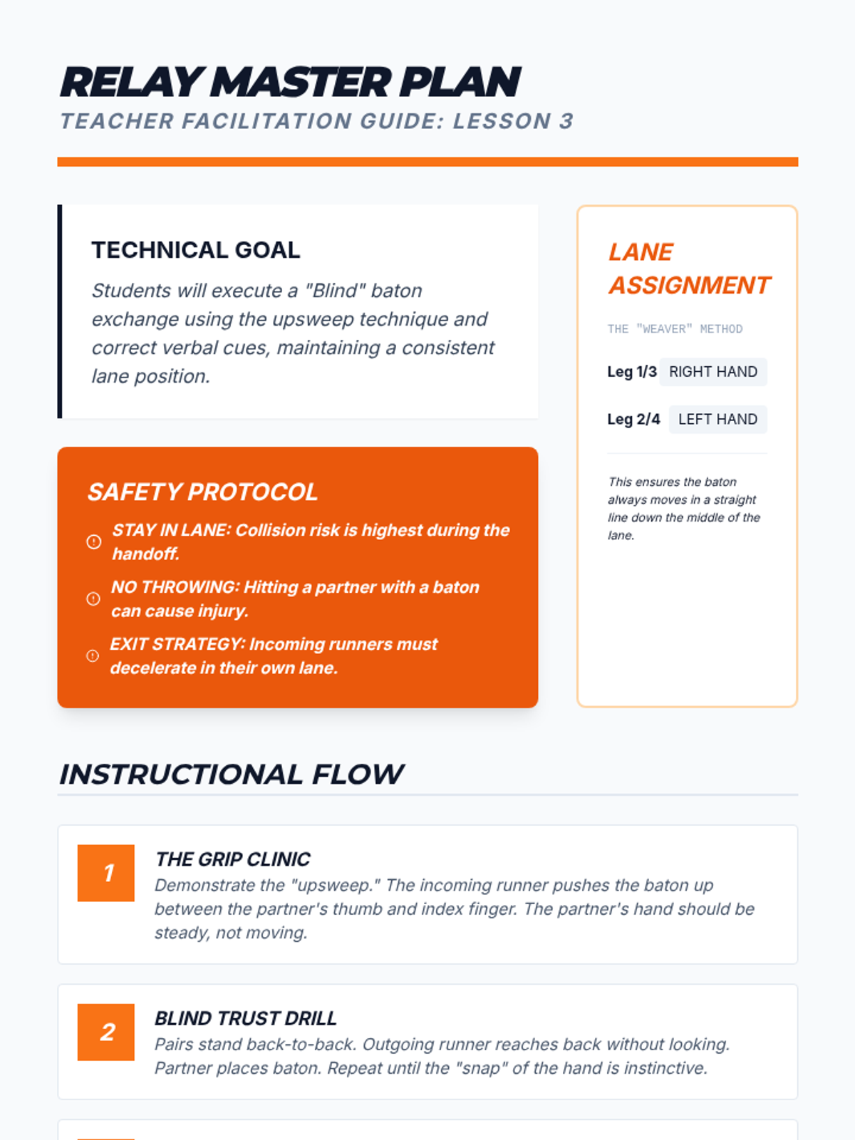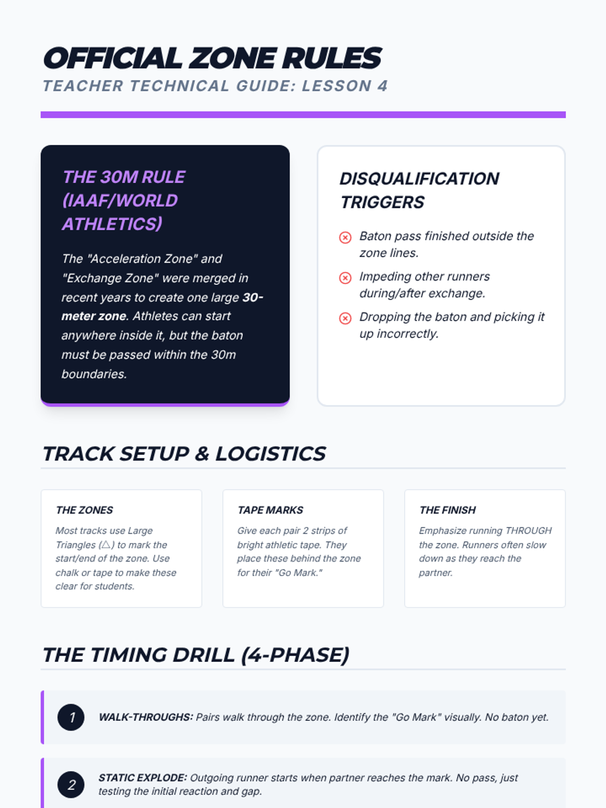 A comprehensive 8th-grade Track and Field unit focusing on the biomechanics of sprinting and the technical precision of relay exchanges. Students explore acceleration, maximum velocity, and pacing strategies through a 'Kinetic Lab' lens.