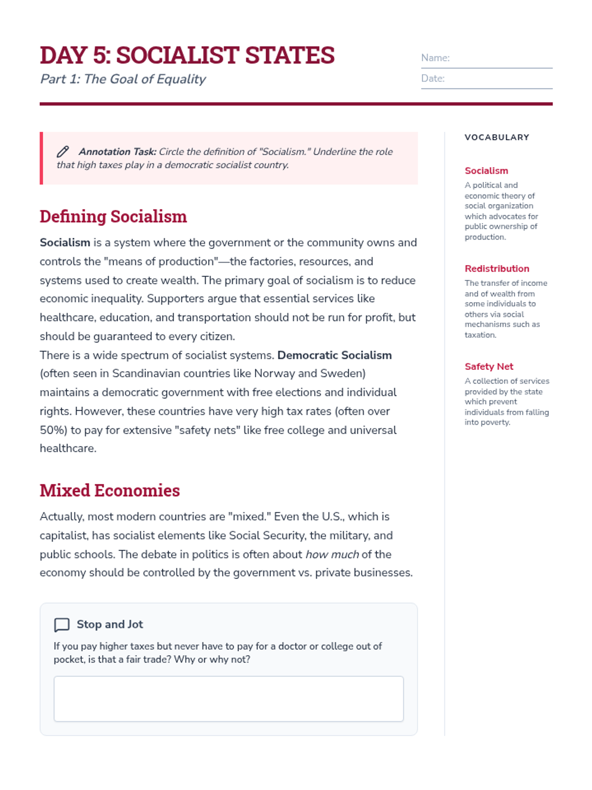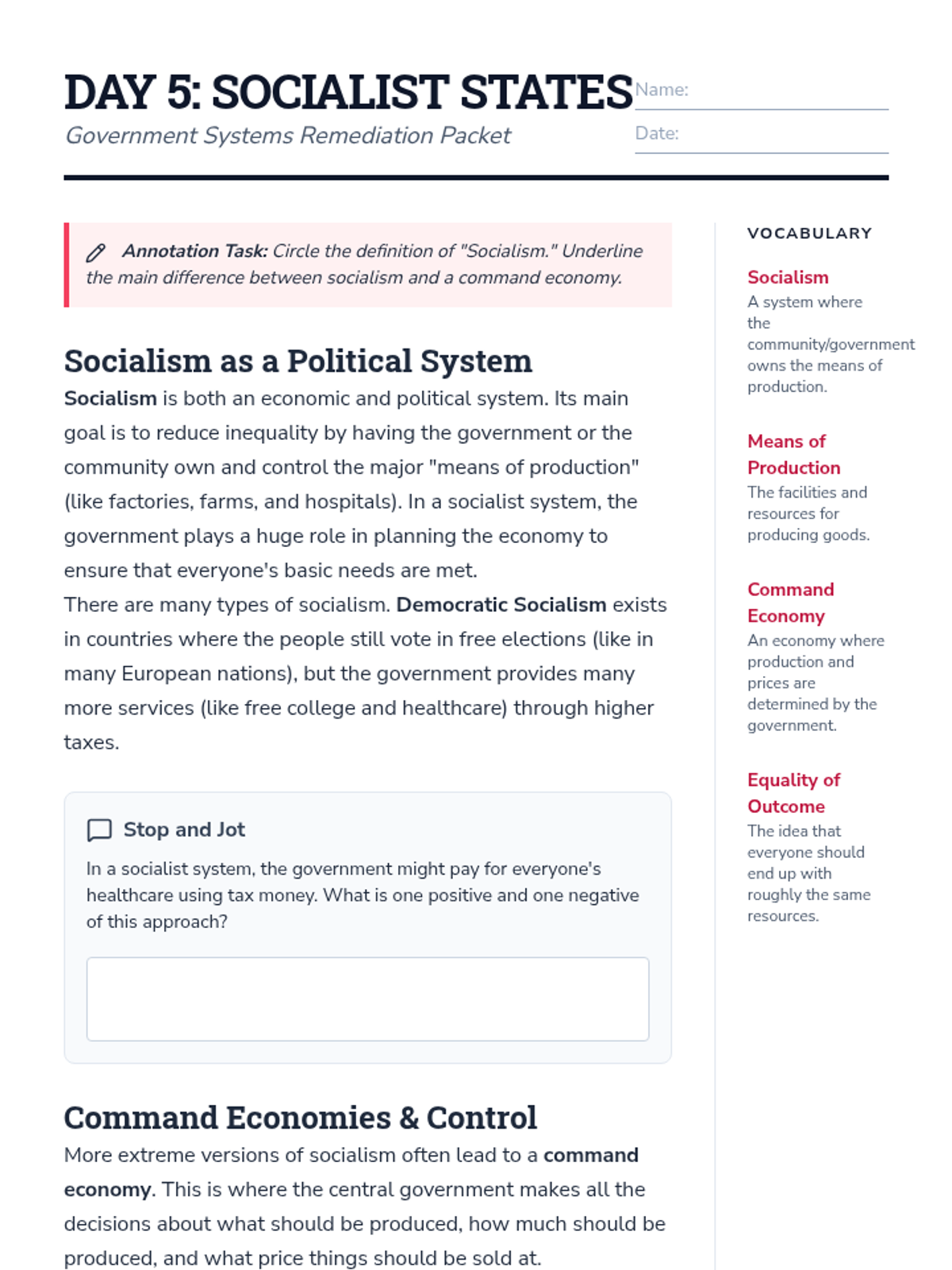 A specialized intervention program for high school students to master summarization within Social Studies. The sequence focuses on distinguishing between systemic historical evidence and illustrative anecdotes, as well as identifying central arguments in primary and secondary sources.