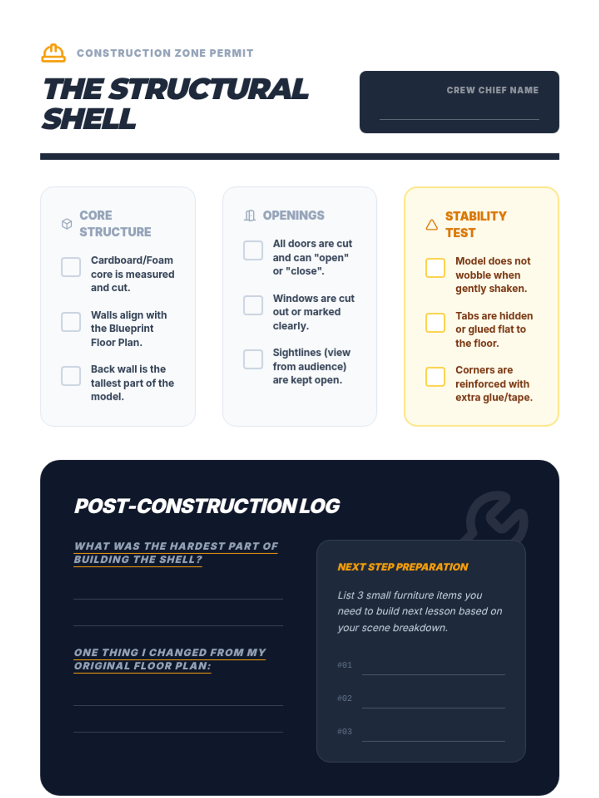 Students step into the shoes of a set designer to transform a written script into a physical world through script analysis, floor planning, mood boards, and 3D model construction. The sequence emphasizes how visual choices in color, texture, and space support the storytelling.
