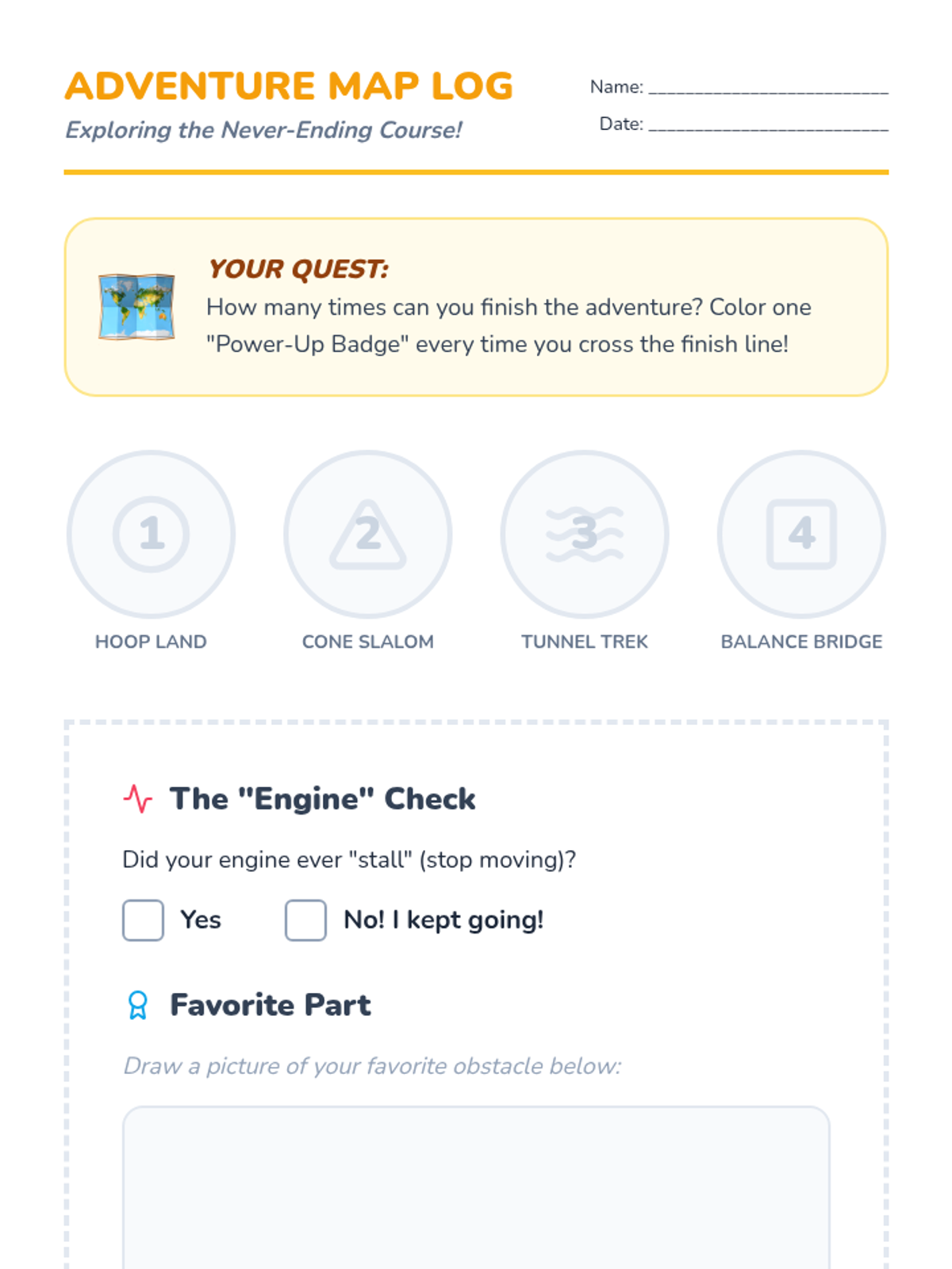 An adventure-themed physical education sequence for 1st graders focused on group problem-solving. Students roleplay as explorers navigating environmental hazards like shrinking islands and lava rivers to build collaboration and strategic thinking skills.