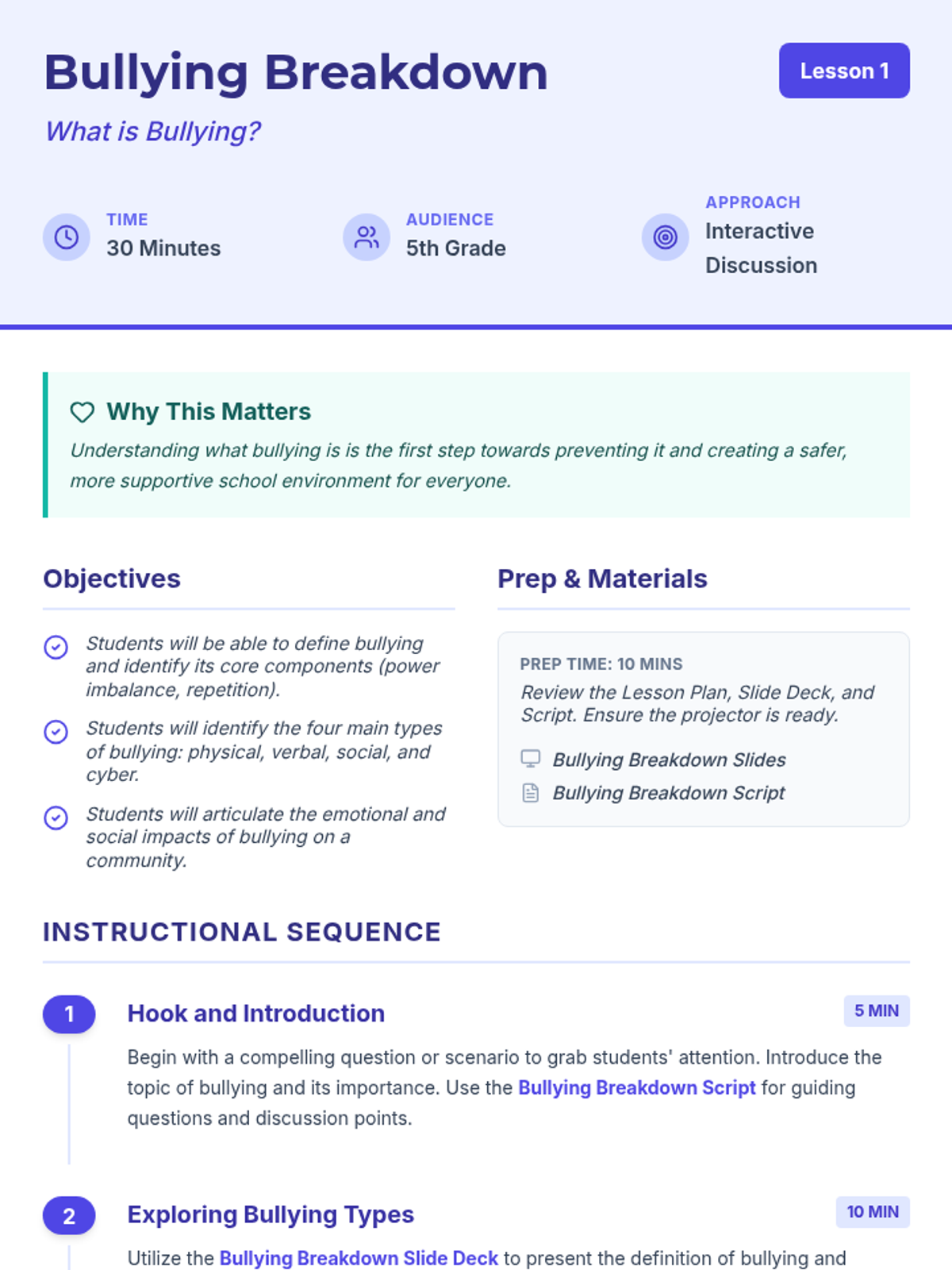 A three-lesson deep dive for 5th-grade students to understand, identify, and address bullying. This series empowers students to create safe and inclusive environments through empathy and actionable strategies.