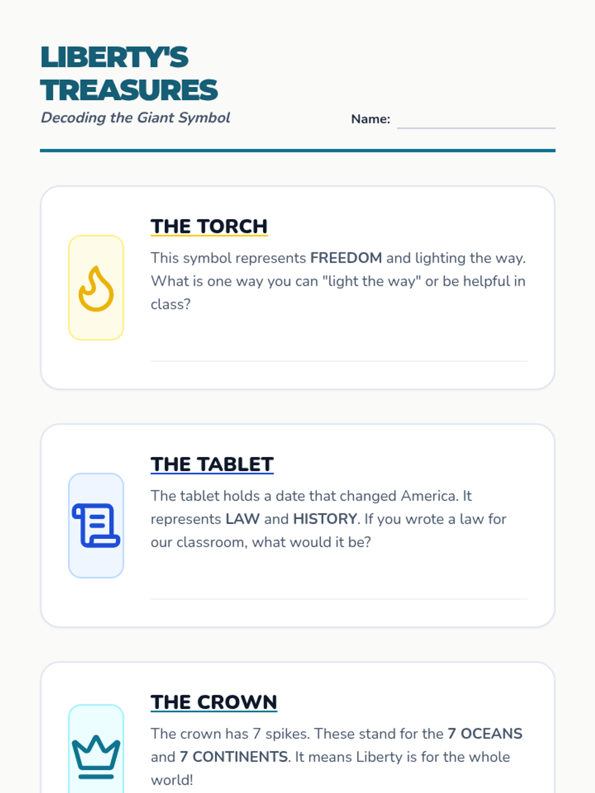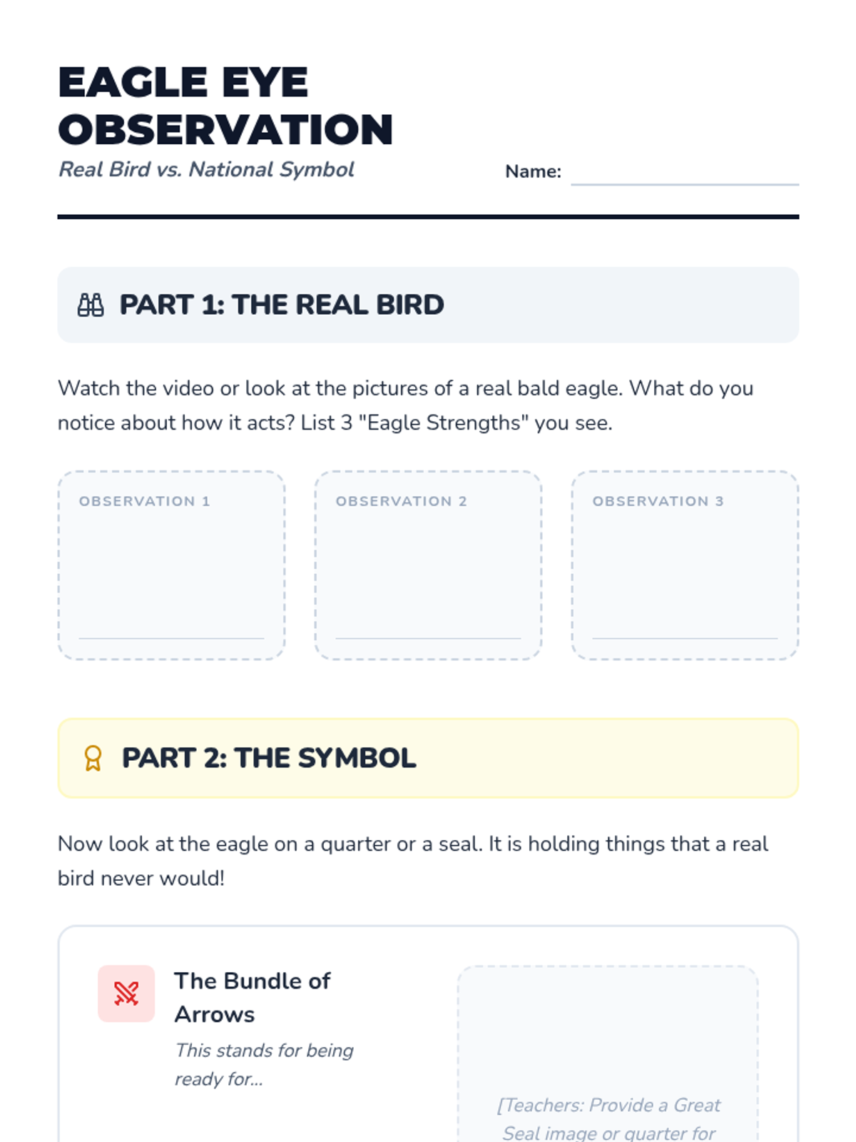 An inquiry-driven geography and civics sequence where 2nd-grade students explore the meaning of symbols, starting with familiar daily signs and progressing to iconic American landmarks like the flag, the bald eagle, and the Statue of Liberty.