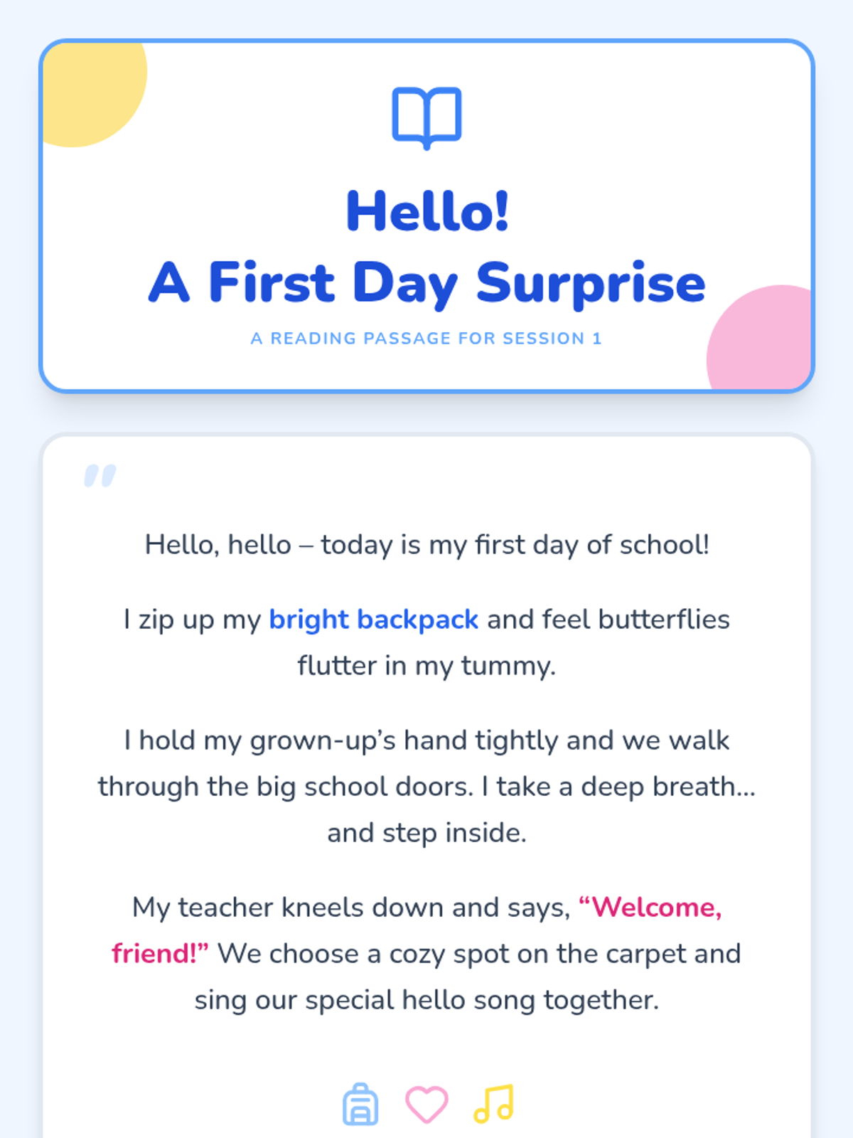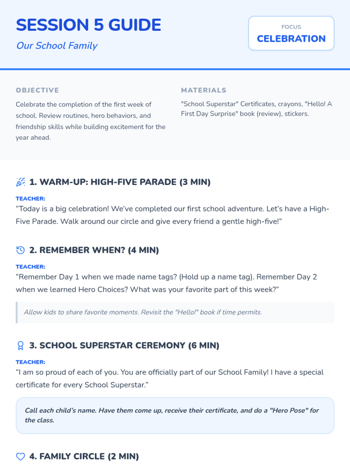 A 5-session series for Pre-K and Kindergarten students to build routines, friendships, and confidence during the transition to school. Includes read-alouds, games, and reflection activities.