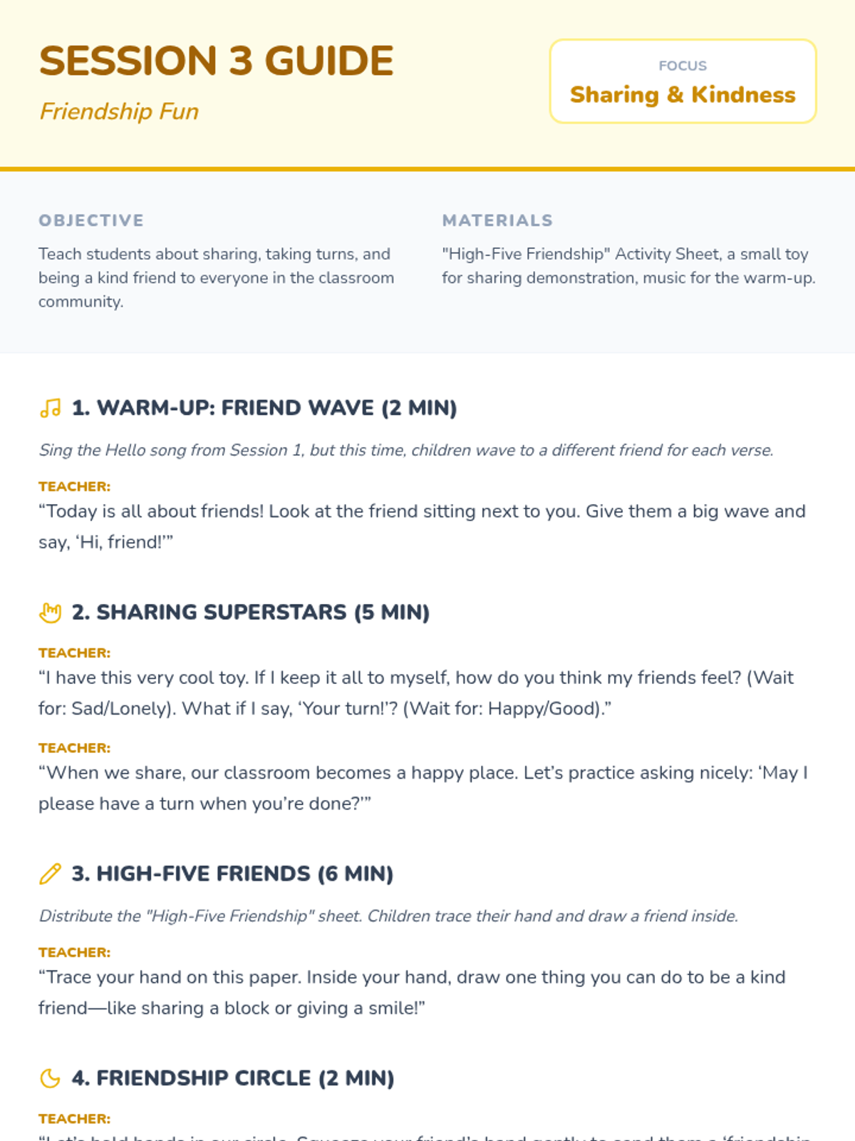 A comprehensive 4-day small group program focusing on essential social-emotional skills including emotional regulation, active listening, friendship building, and conflict resolution.