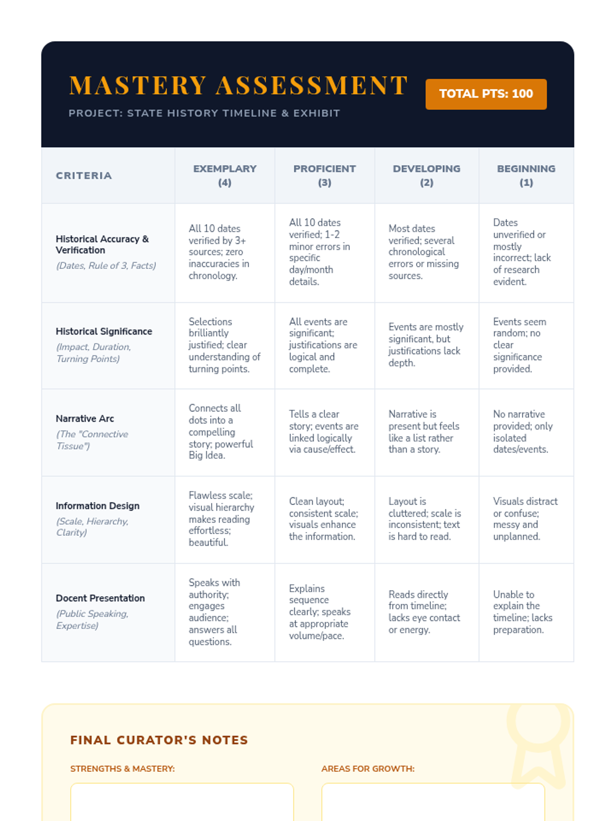 Students act as historians to research, verify, and visualize the history of their state. They learn to evaluate historical significance, verify dates through cross-referencing, and synthesize chronological data into a compelling narrative and visual exhibit.