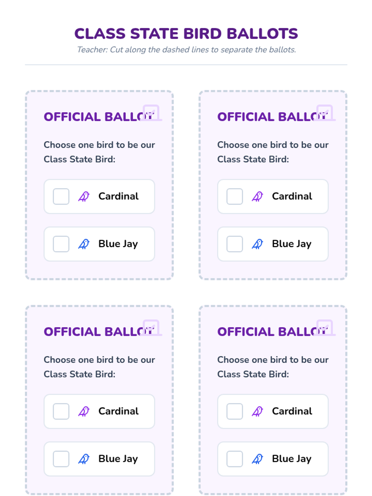 This Kindergarten sequence introduces students to the concept of state leadership, laws, and community helpers. Through role-play and creative activities, students explore the role of the Governor, differentiate between classroom rules and state laws, and learn about the people who protect our state's nature and roads.