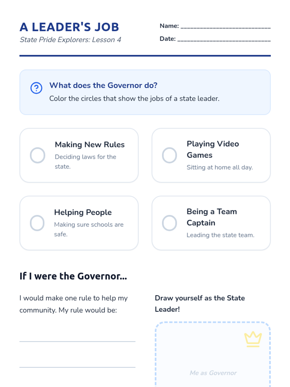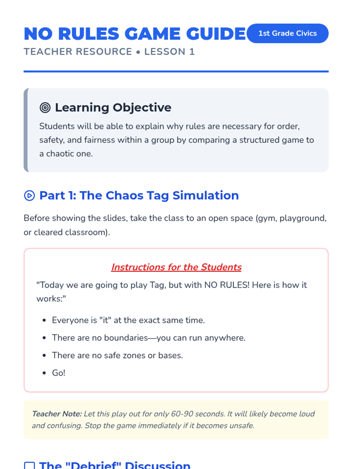 This 1st Grade sequence explores power and authority through rules and voting. Students experience the necessity of rules, collaborate on classroom agreements, and learn the democratic process of voting and majority rule.