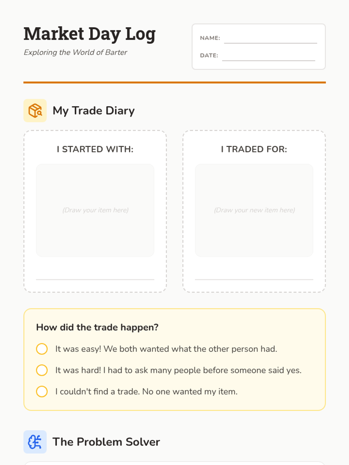 This immersive sequence guides second-grade students through the evolution of trade, from bartering to modern currency. Students participate in simulations to discover the inefficiencies of direct trade and the necessity of money as a medium of exchange, unit of account, and store of value.