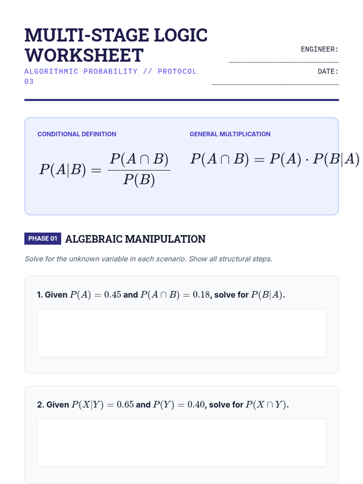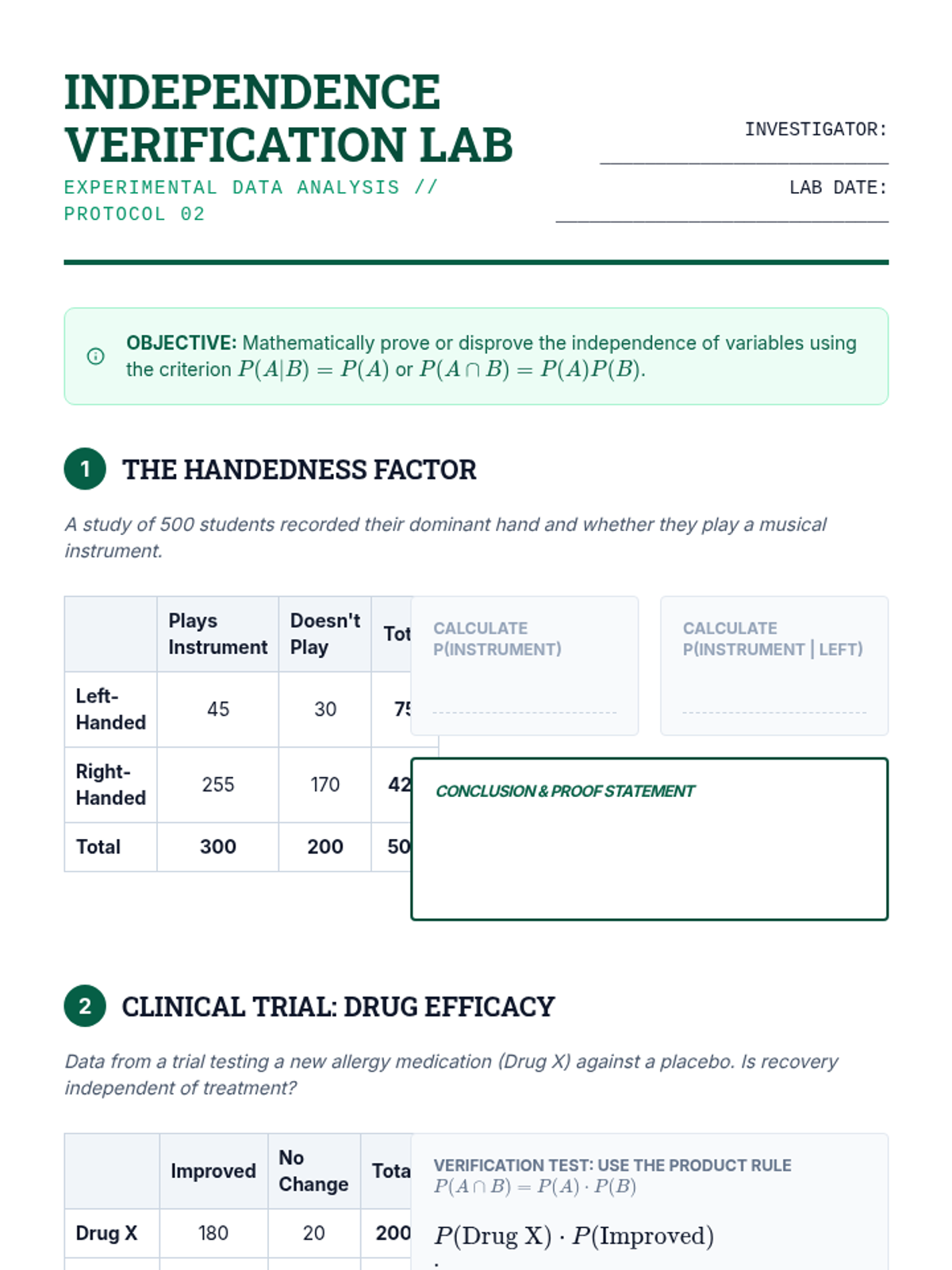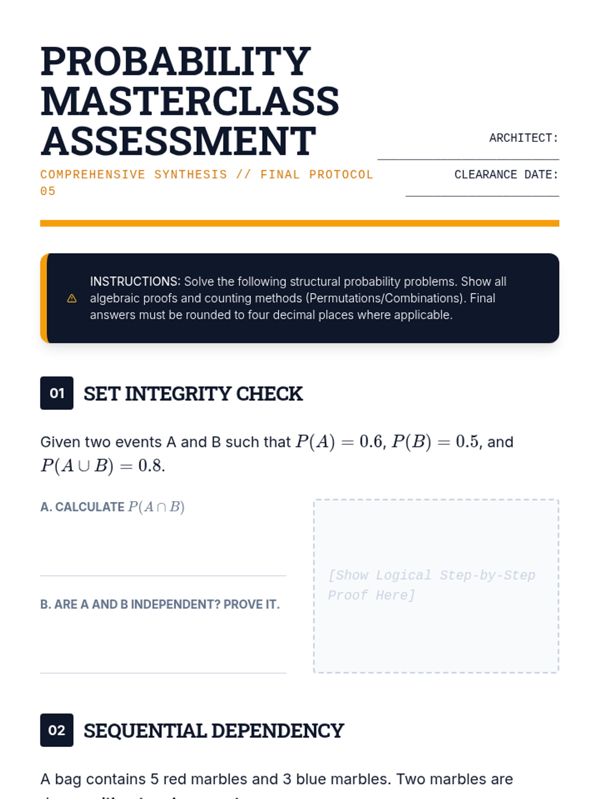 A rigorous, theoretical approach to compound event probabilities for 12th-grade students. This sequence covers set notation, formal definitions of independence, the general addition and multiplication rules, and the distinction between mutually exclusive and independent events.