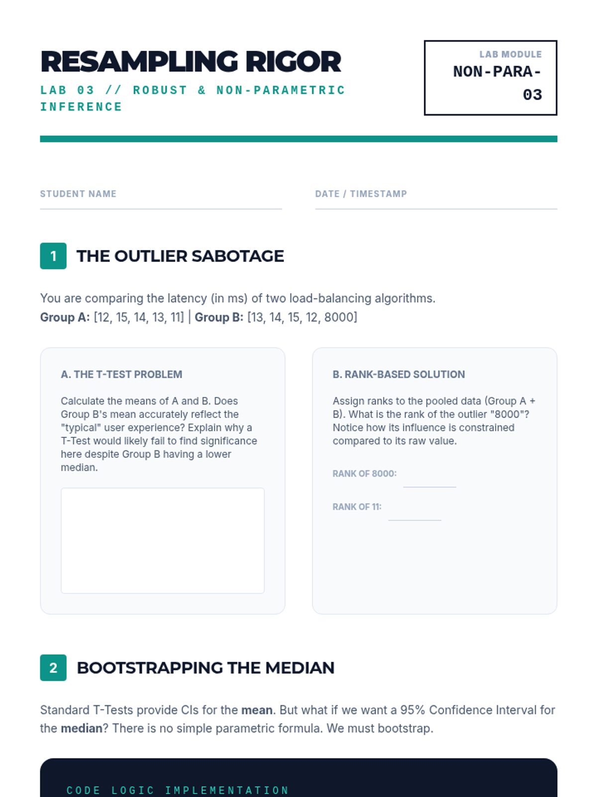 This sequence bridges the gap between theoretical probability and practical data science applications through rigorous statistical inference. Students explore sampling distributions and the Central Limit Theorem before diving into parametric and non-parametric hypothesis testing, culminating in experimental design and Bayesian fundamentals.