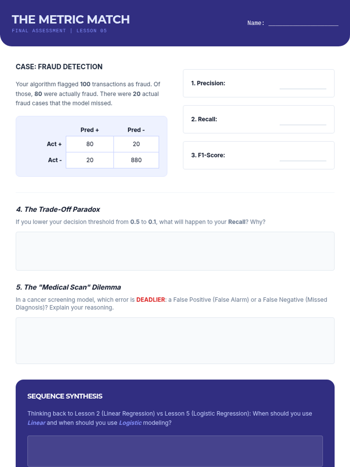 This sequence guides undergraduate students through the transition from descriptive statistics to predictive modeling. It covers hypothesis testing, linear and multiple regression, model evaluation, and logistic classification, emphasizing both mathematical foundations and practical coding implementation.