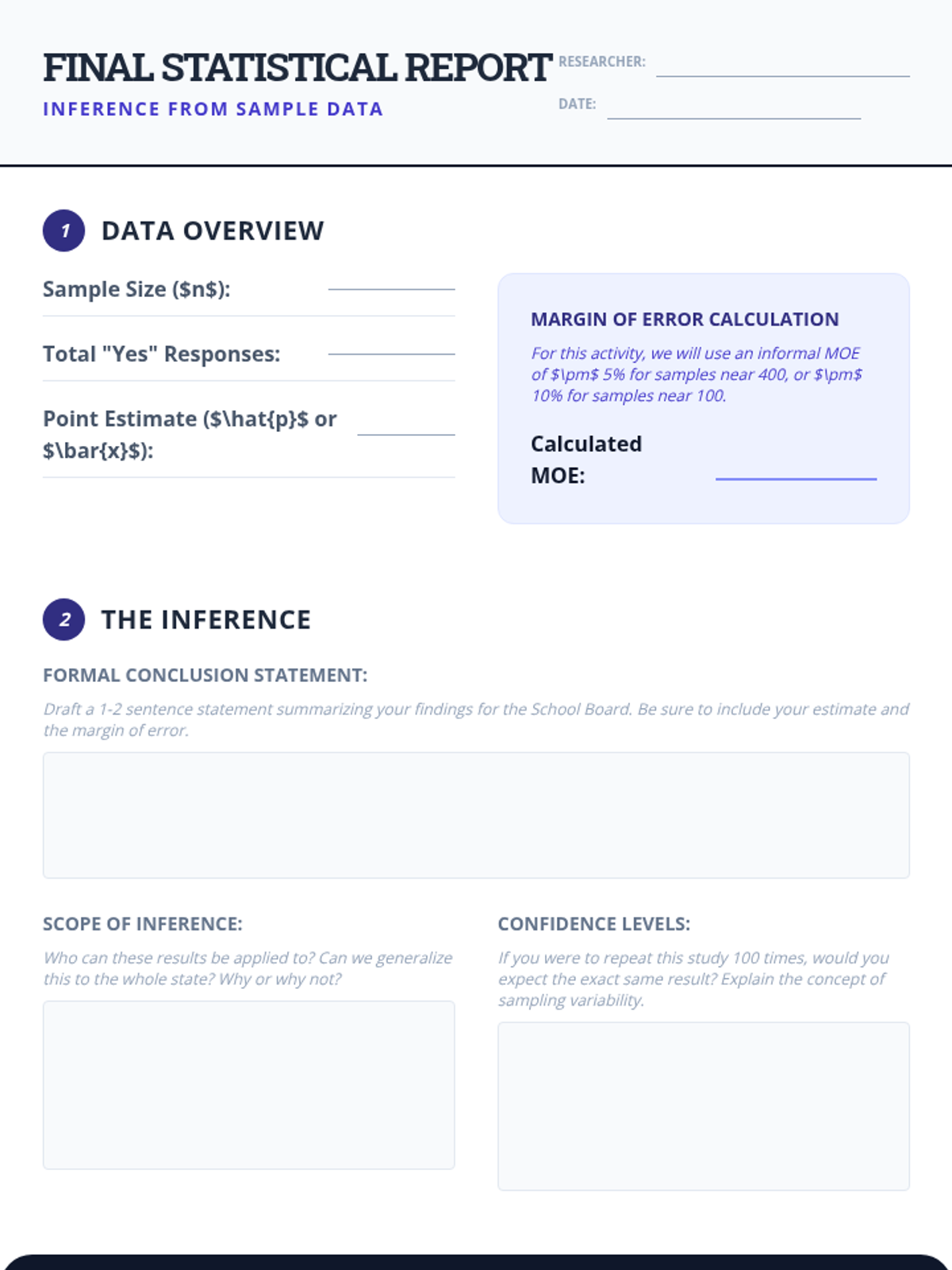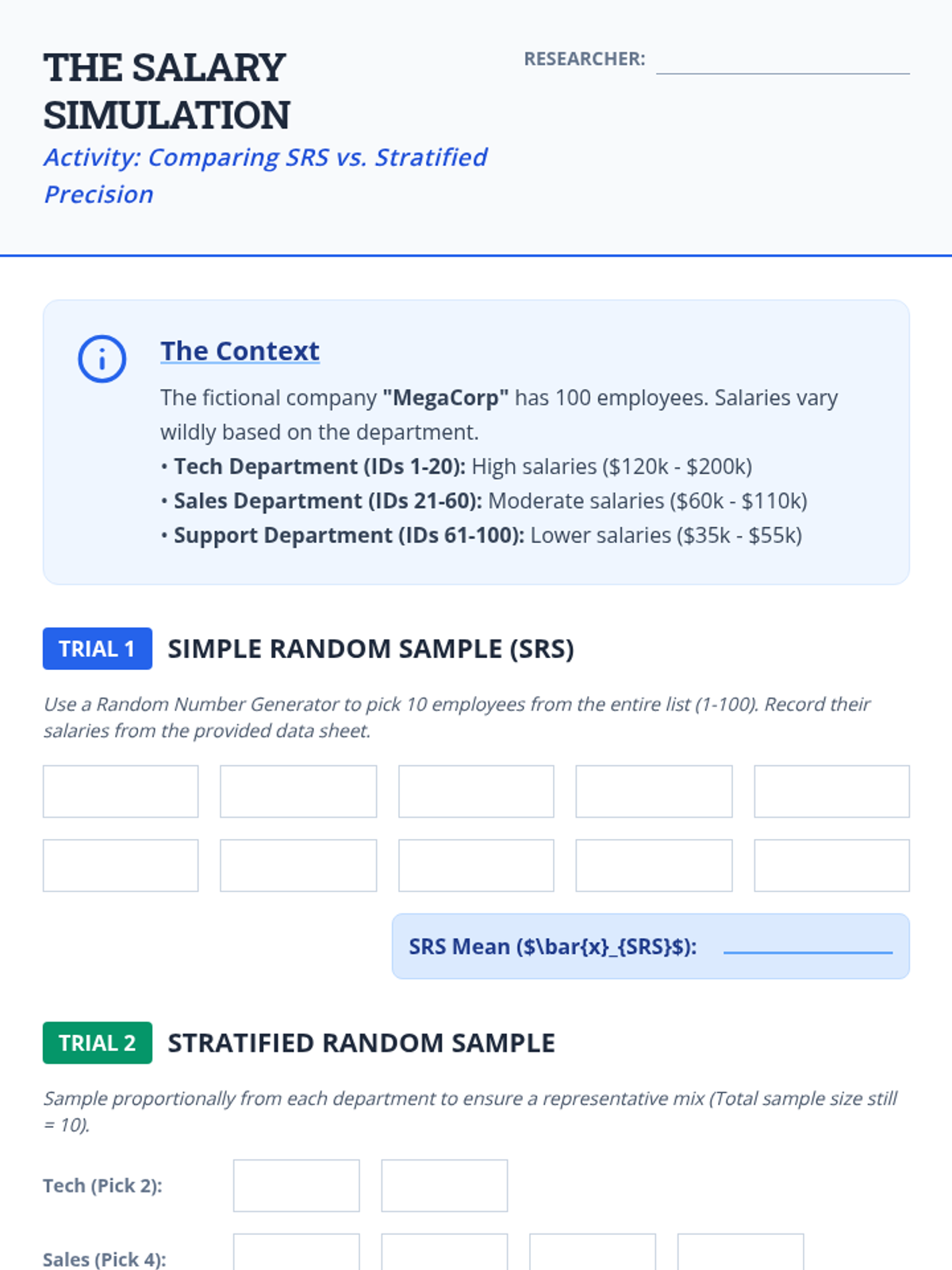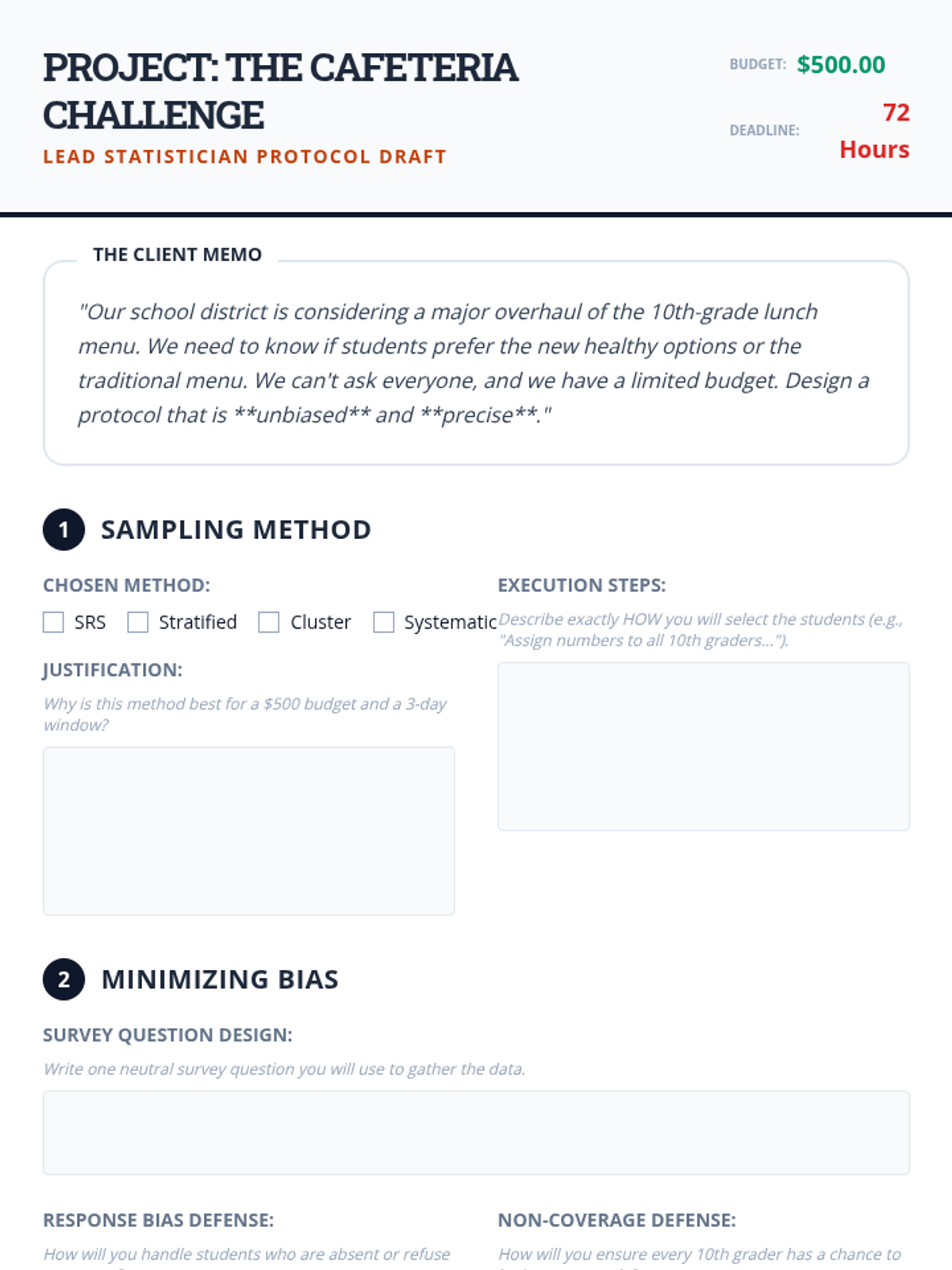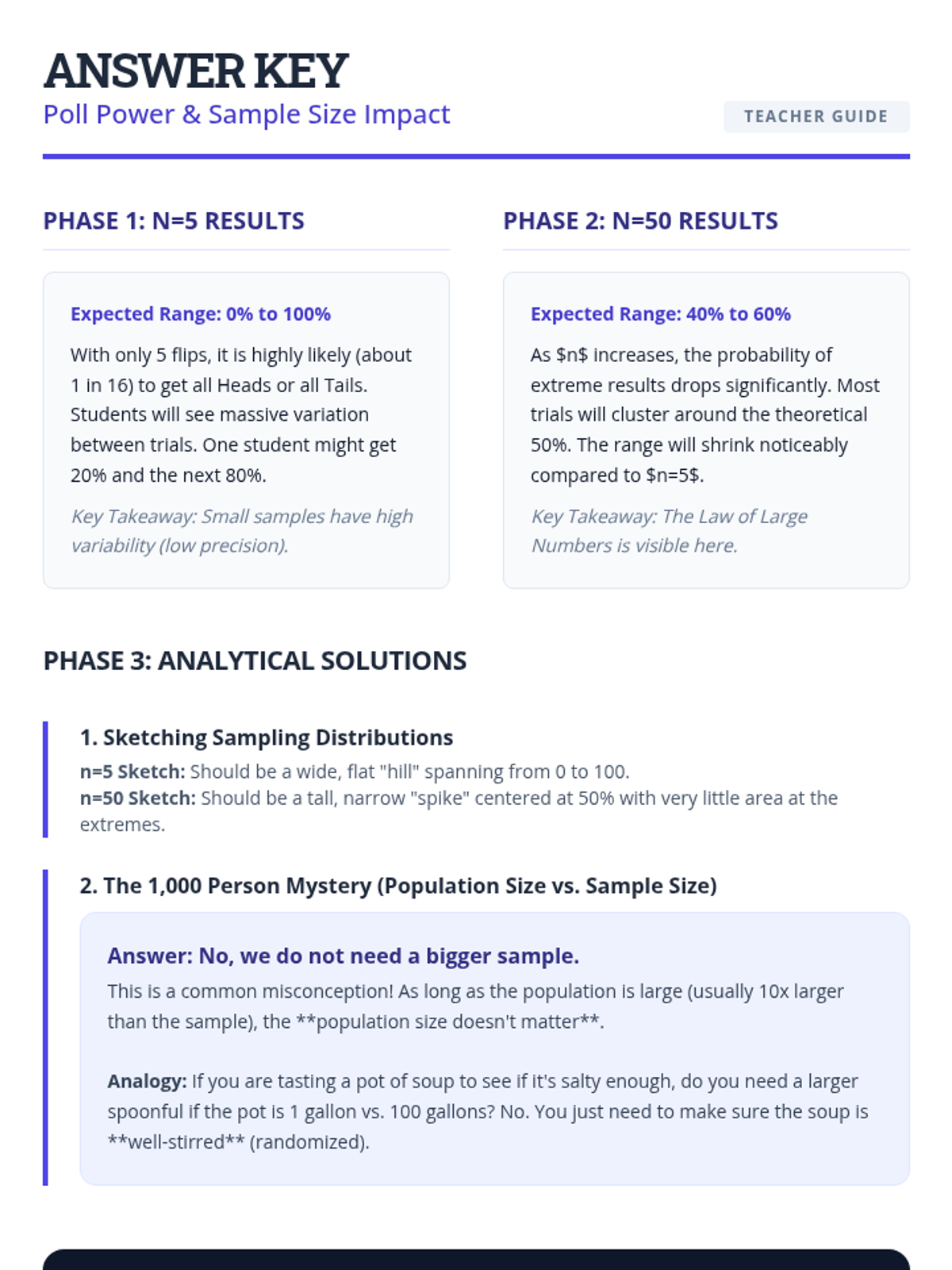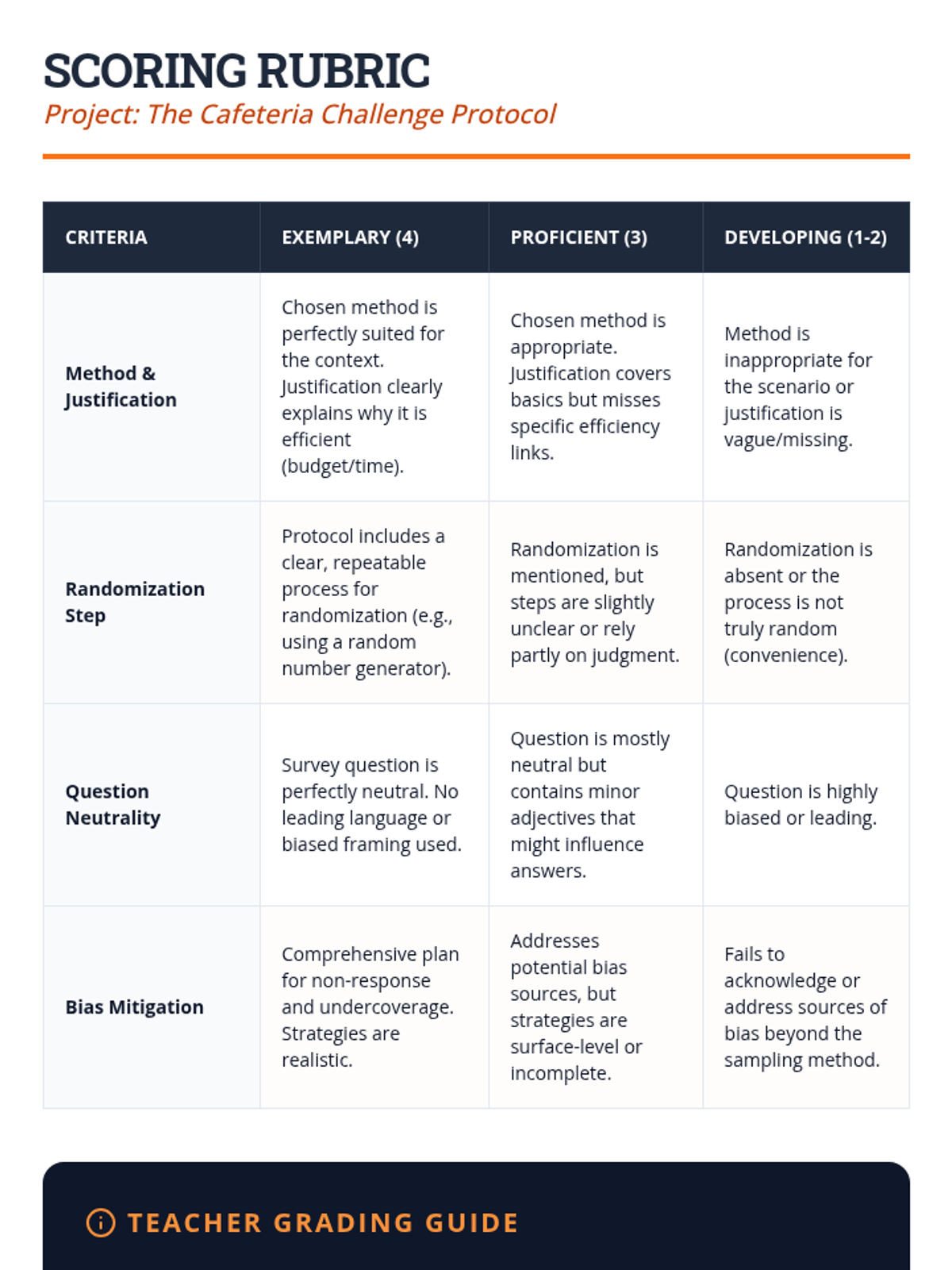 A comprehensive 5-lesson unit for 10th-grade students on statistical sampling. This sequence moves from identifying bias and the need for randomization to advanced techniques like stratification, the impact of sample size, and designing professional-grade sampling protocols for real-world inference.