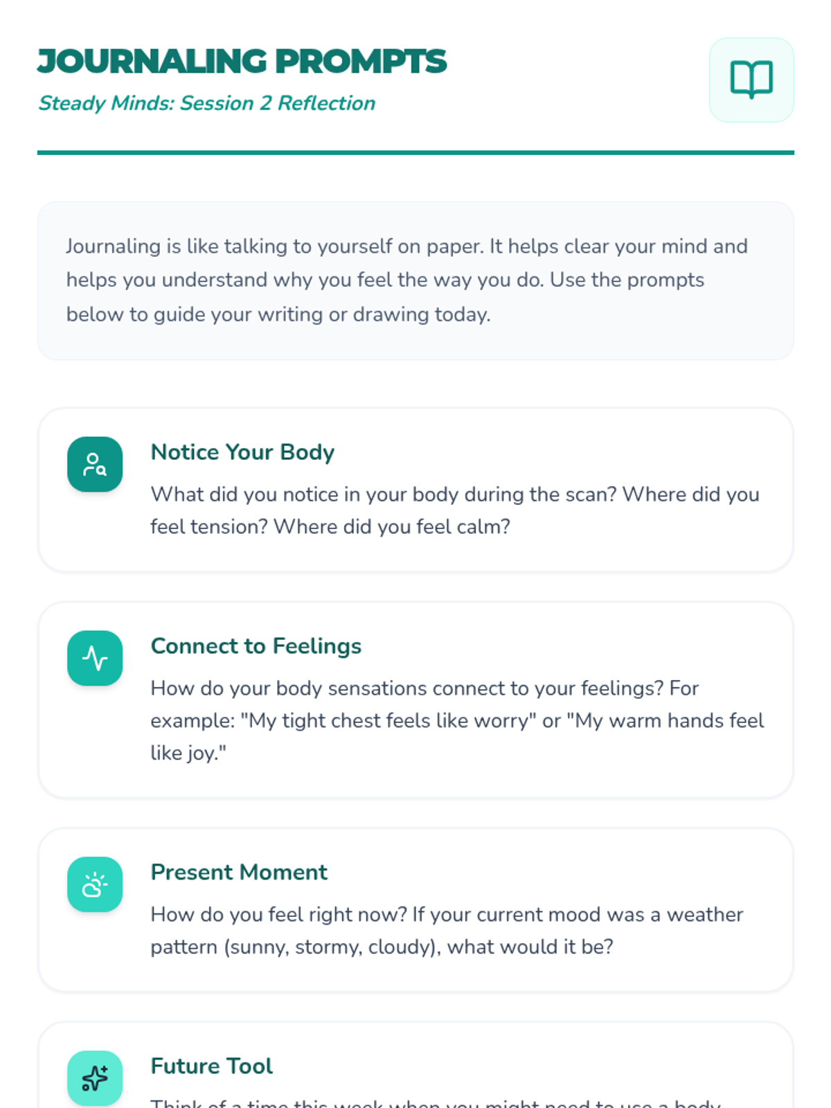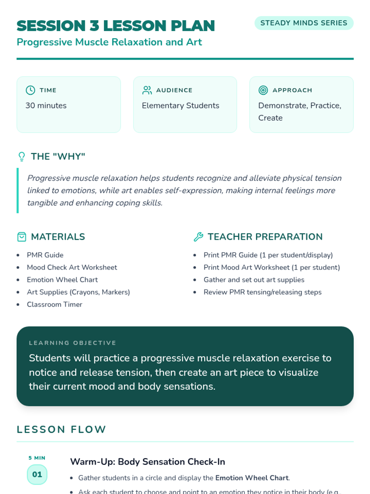 An 8-session Tier 1 classroom series on emotion regulation to help students develop and practice coping skills in 30-minute lessons. Includes mindfulness, self-reflection, and practical strategies.