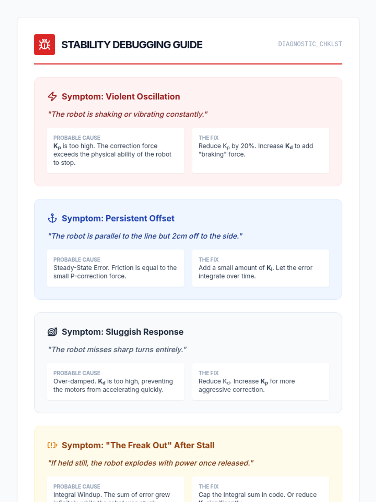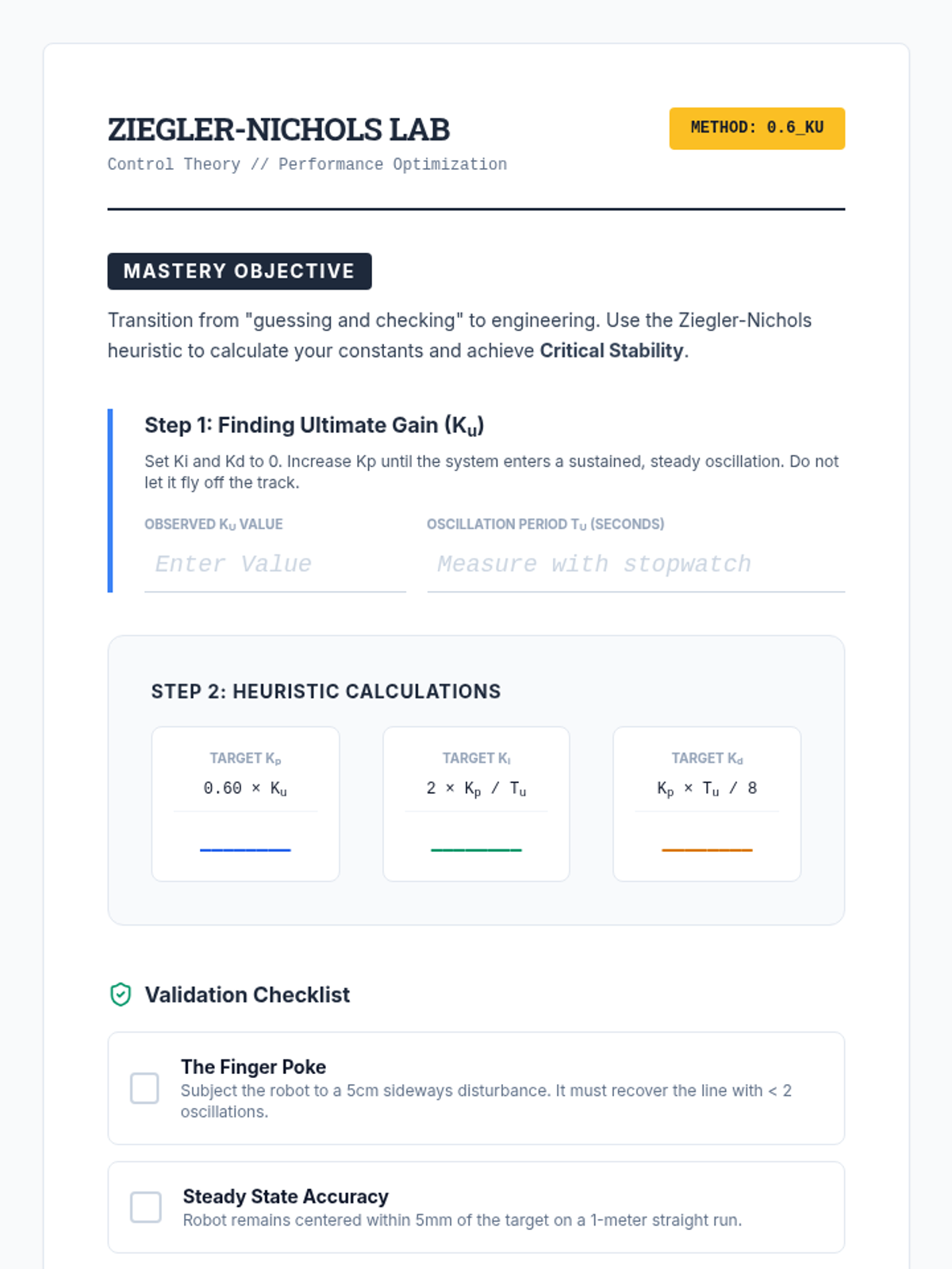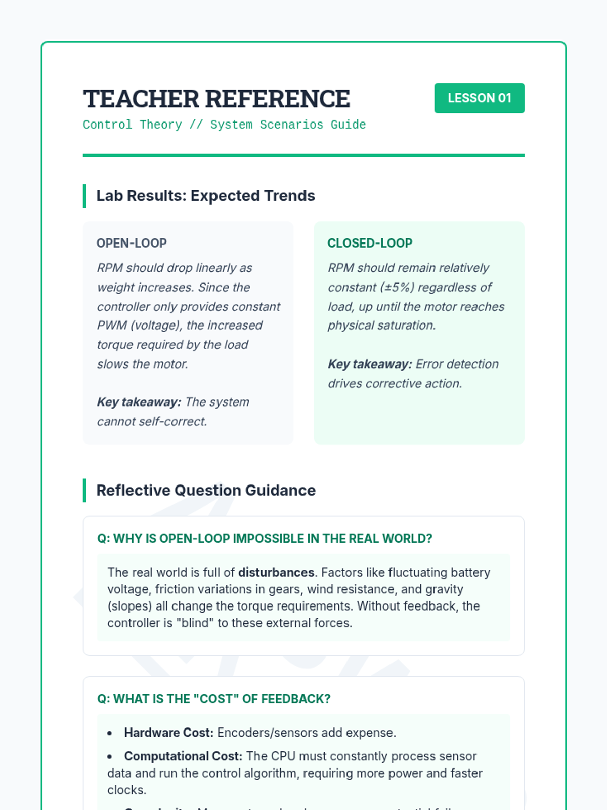 A comprehensive engineering sequence for 12th-grade students exploring control theory and PID algorithms. Students progress from basic open-loop systems to complex self-balancing robots, mastering the mathematics of real-time error correction and system stability.