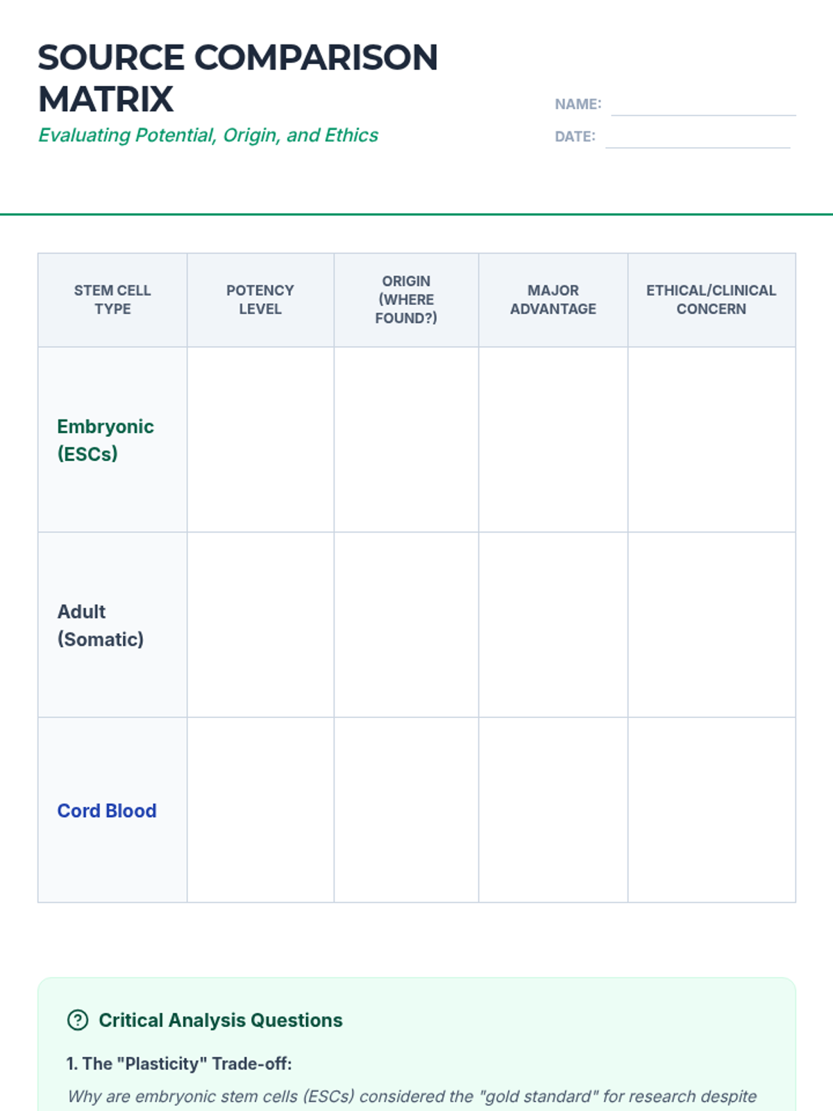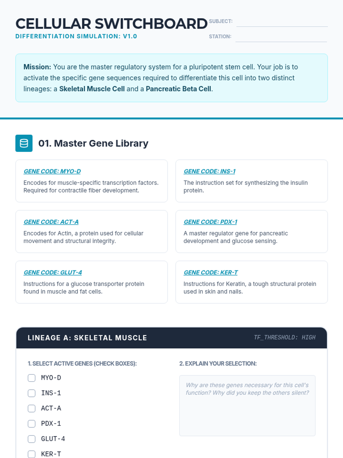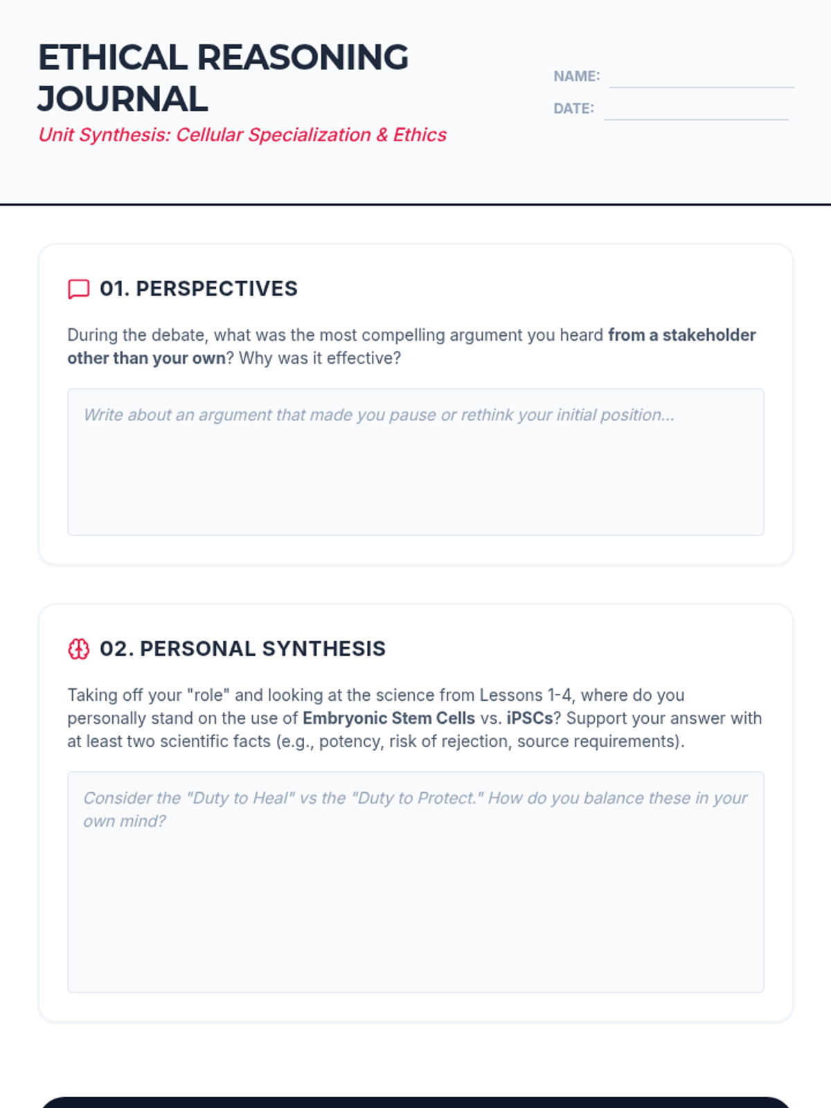 This sequence explores the transition from a single fertilized egg to a complex organism, focusing on the mechanics of cell division, differentiation, and the ethical implications of stem cell technology. Students will analyze cell potency, gene expression, and bioethical frameworks.