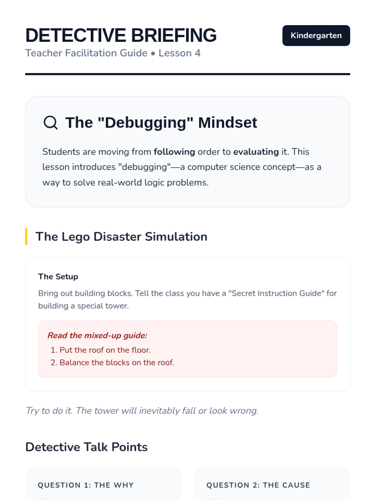 A comprehensive K-8 curriculum designed to build foundational AI literacy through understanding, evaluation, application, and ethics. Each grade level tackles a specific theme, progressing from basic robot concepts to complex algorithmic bias and societal impact.