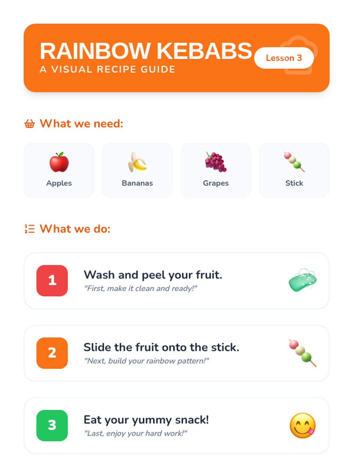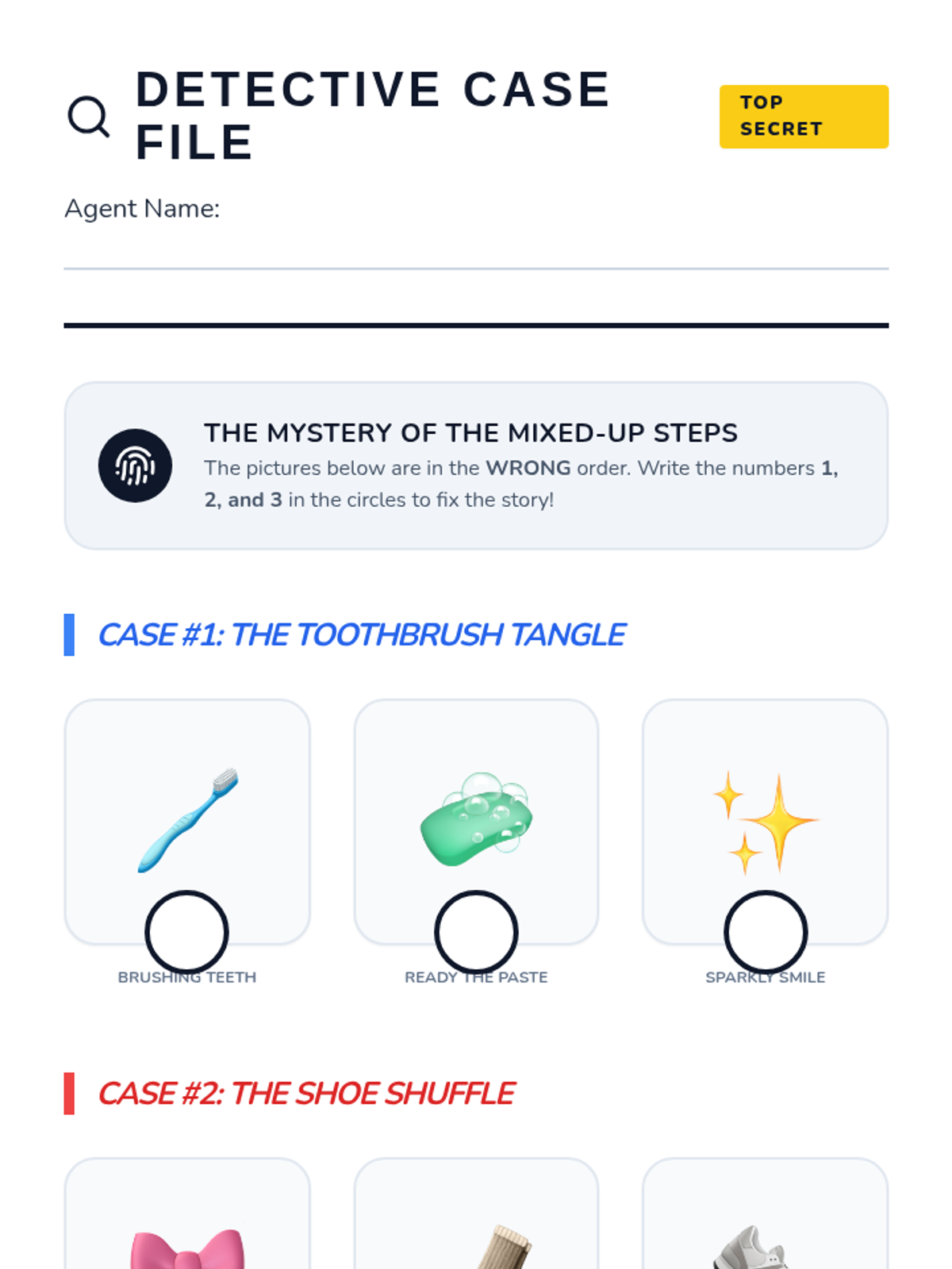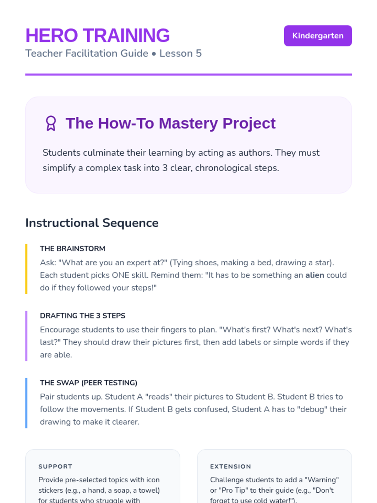 A sequence for Kindergarten students focusing on multi-step processes and the importance of chronological order in daily tasks, recipes, and instructions. Students move from physical games to creating their own instructional guides.