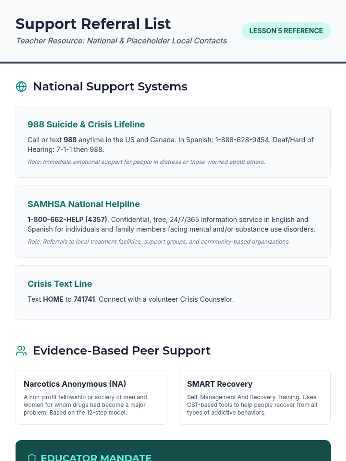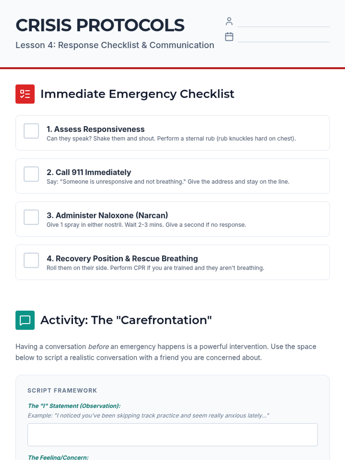 A comprehensive sequence for 11th-grade students focusing on stimulant dependency, the fentanyl crisis, harm reduction, and emergency response. This sequence uses a public health lens to equip students with the tools to recognize addiction, mitigate risks, and save lives in crisis situations.