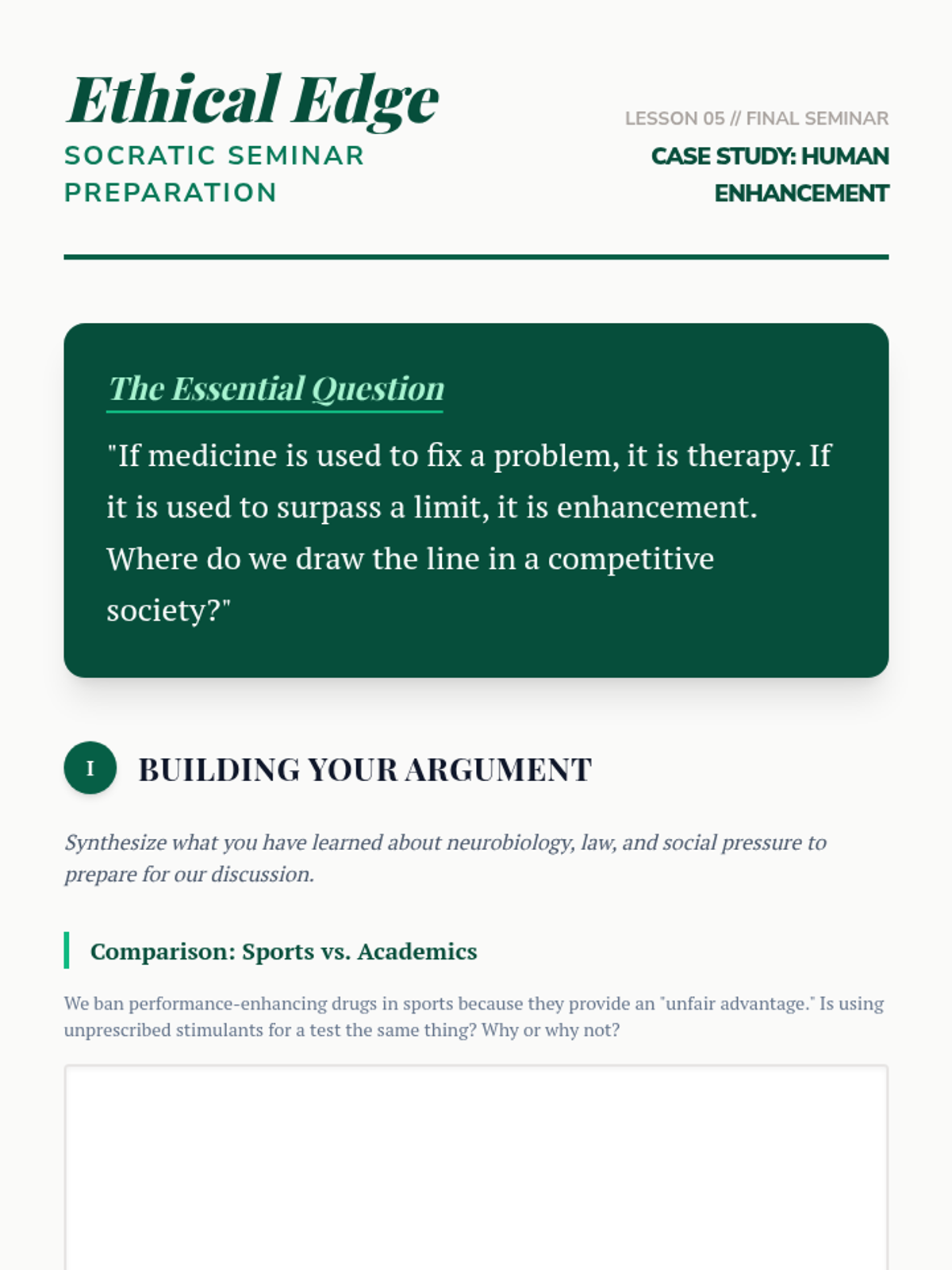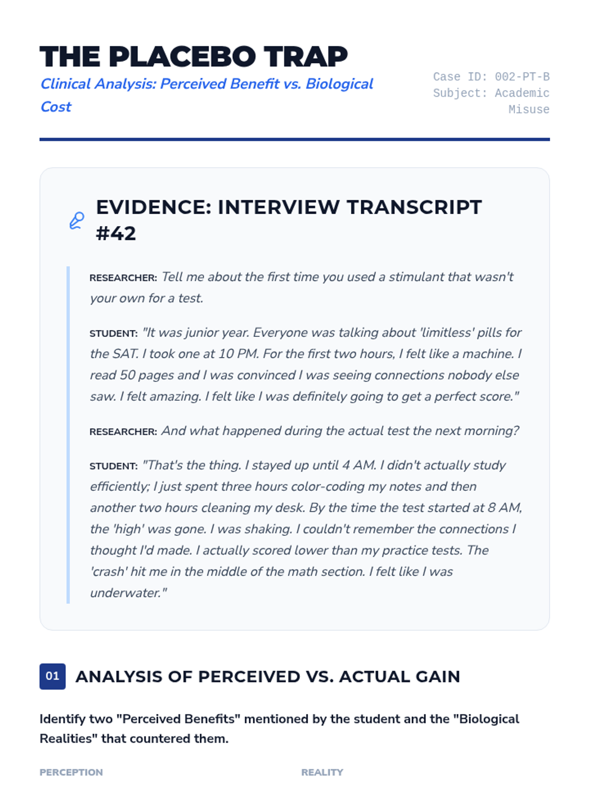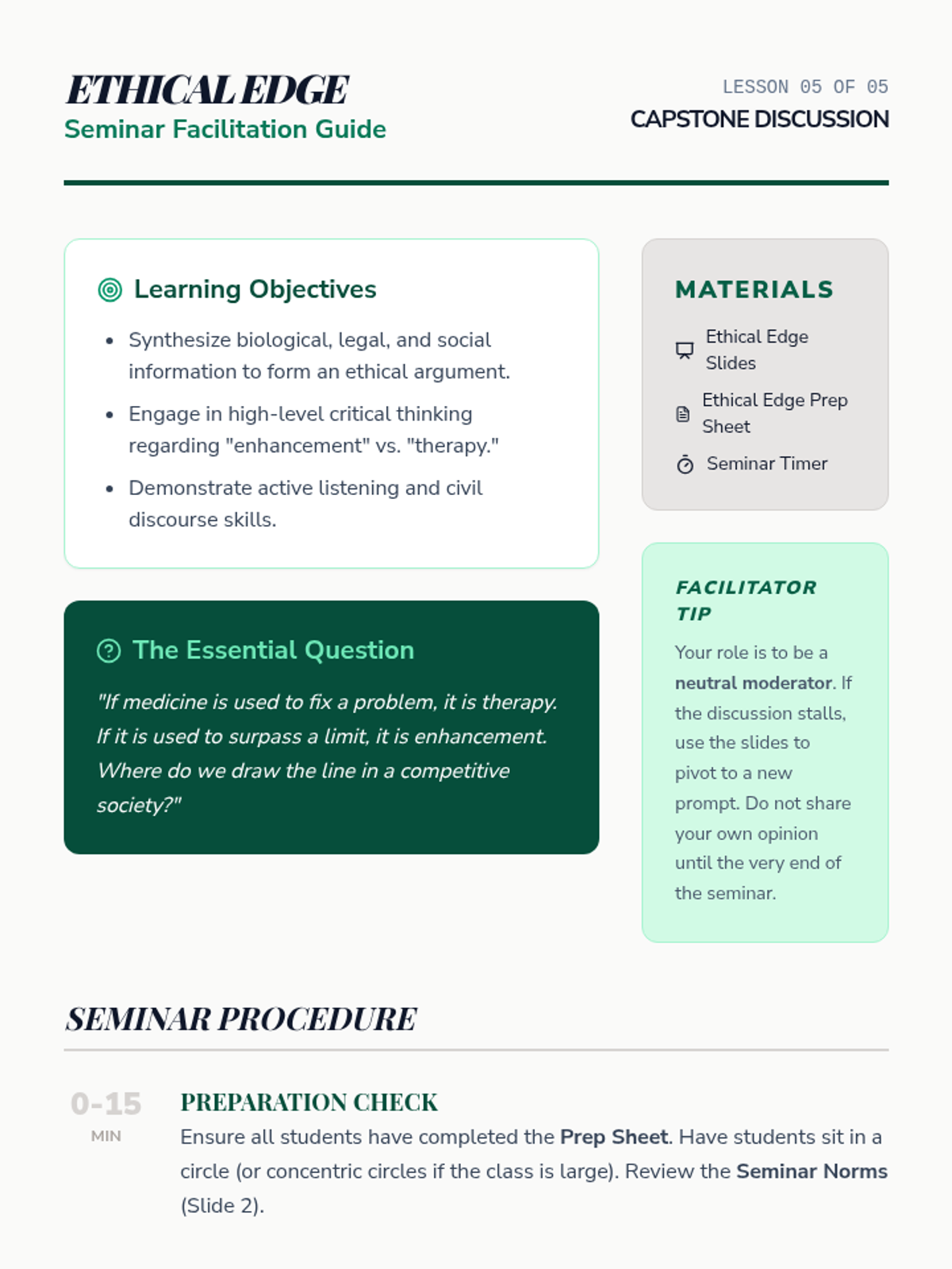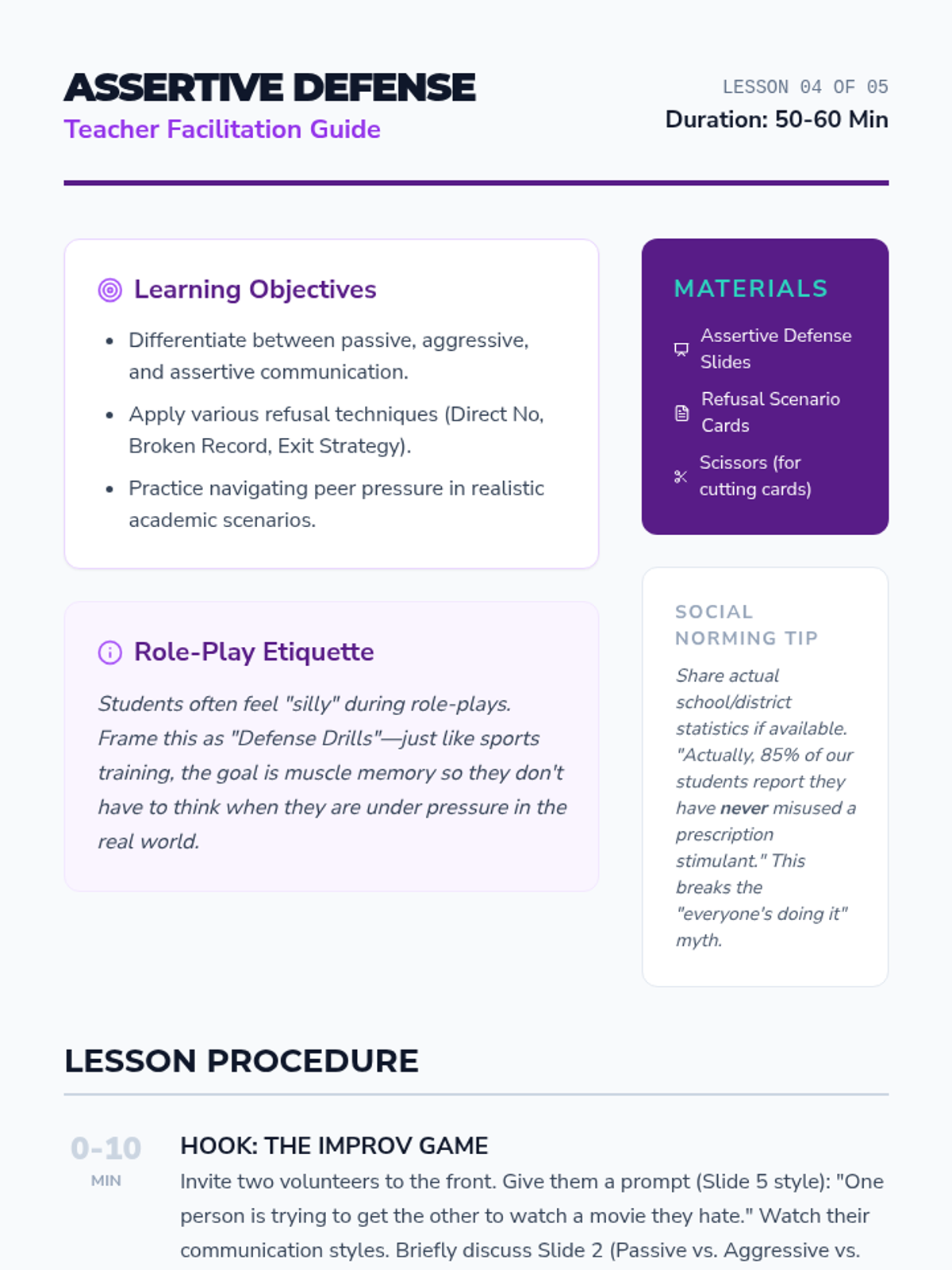 This 10th-grade sequence examines the social, legal, and cognitive impacts of prescription stimulant misuse. Students debunk myths about 'study drugs,' analyze the root causes of academic stress, and develop refusal skills through role-play, culminating in an ethical debate on academic performance enhancement.