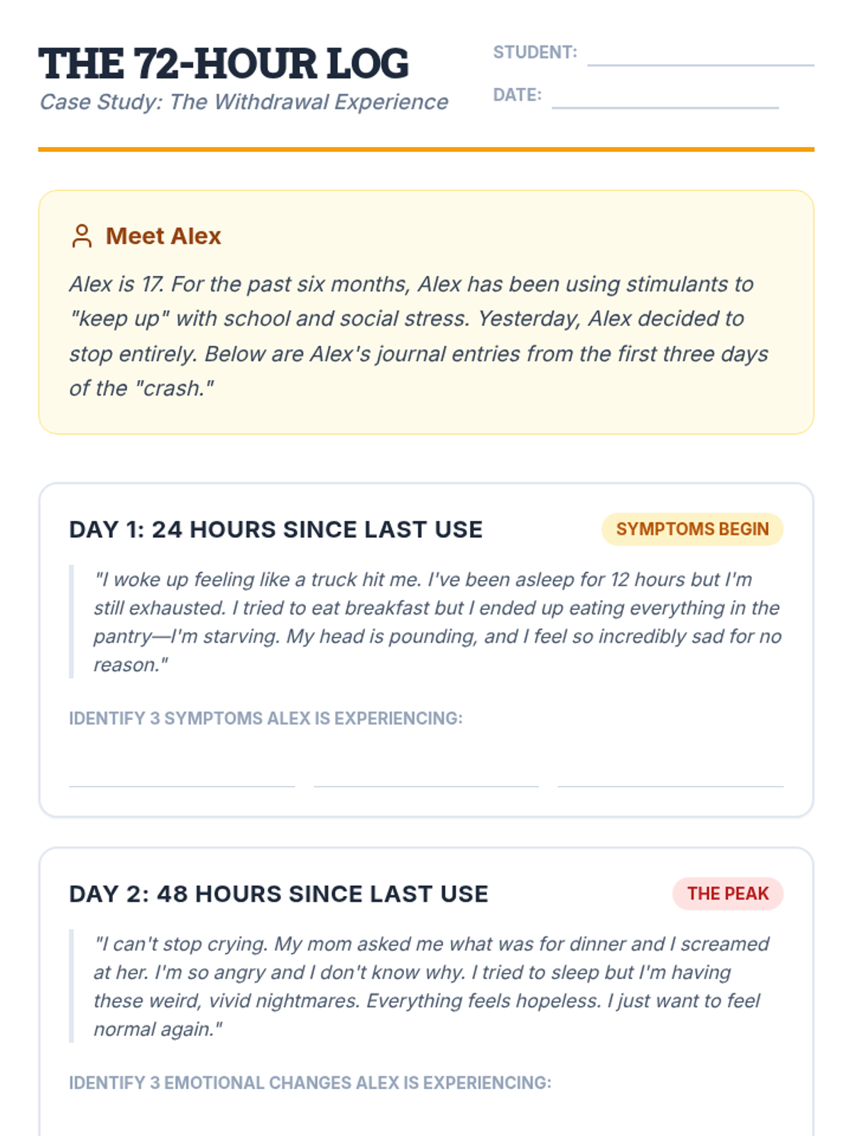 This mastery-based sequence focuses on the physiological and psychological mechanisms of stimulant dependency, the challenges of withdrawal, and the navigation of support systems. Students analyze the cycle of addiction through a medical lens to reduce stigma and identify practical pathways to recovery.