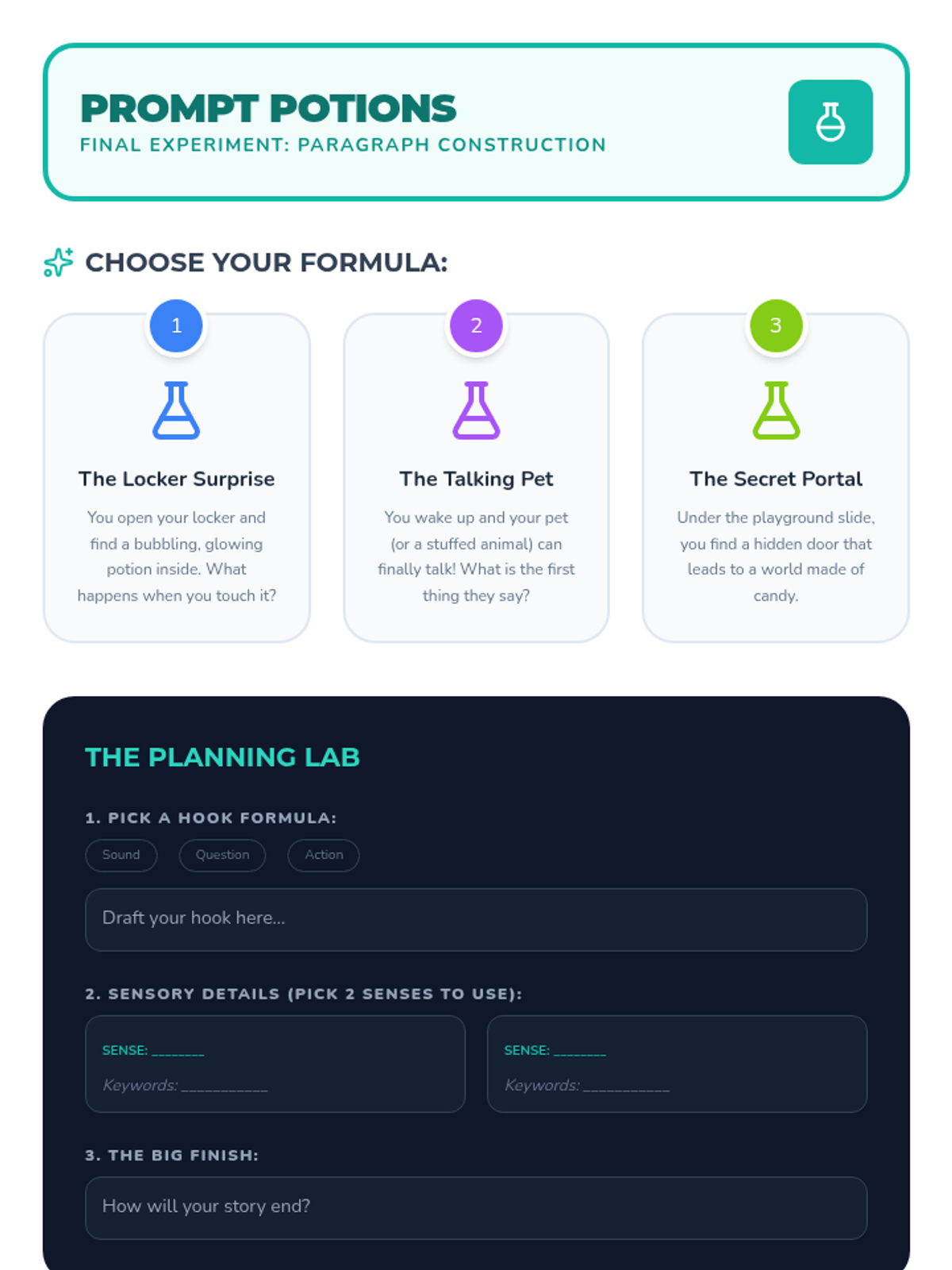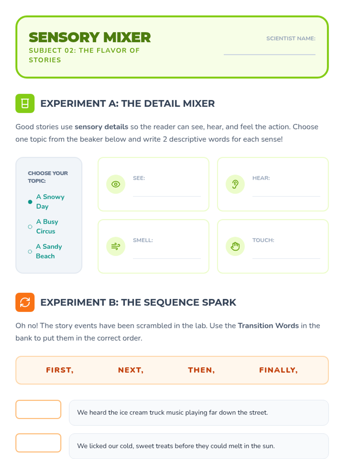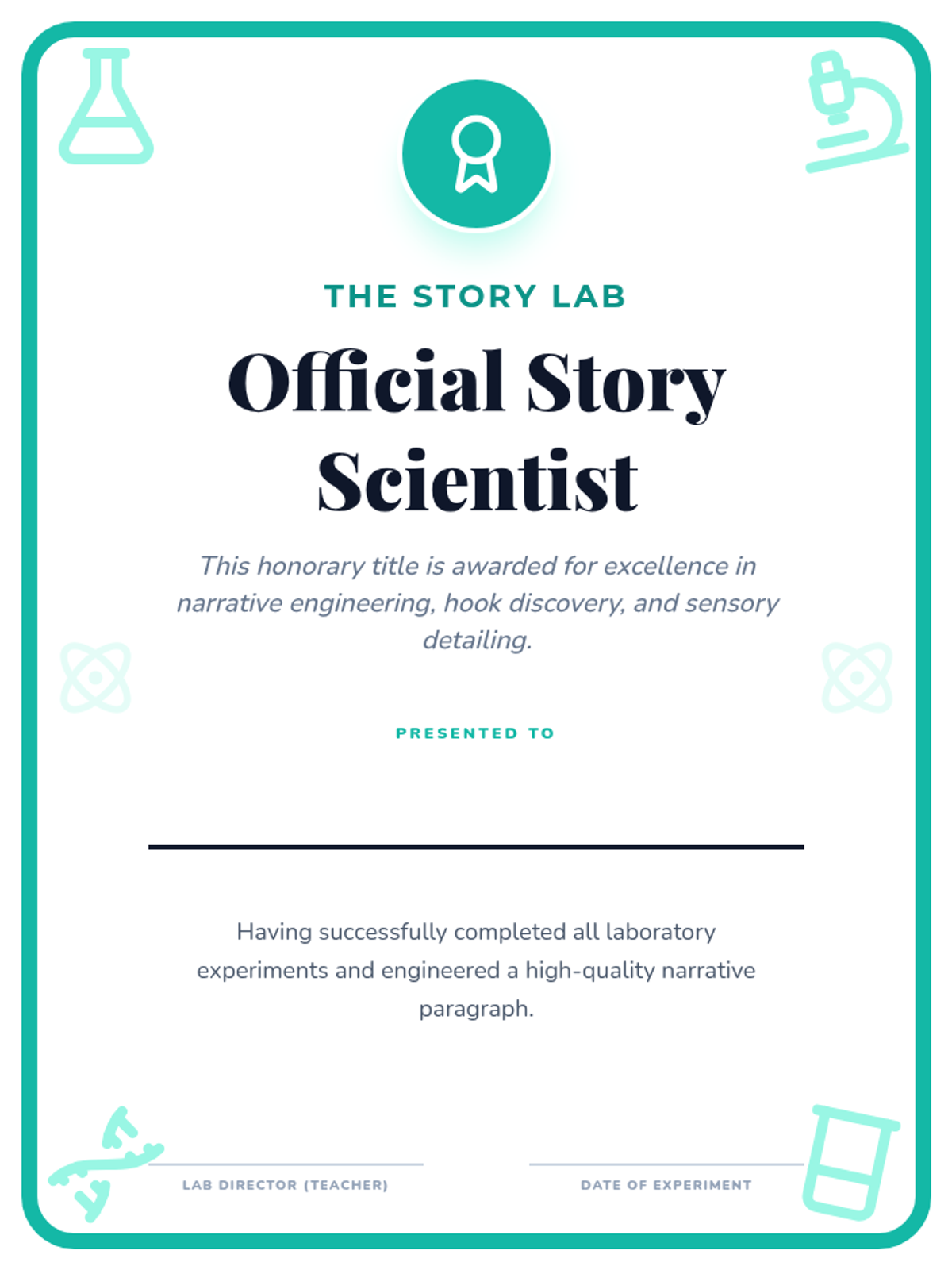 A 5-day narrative writing unit for 3rd graders focused on paragraph structure. Students act as 'Story Scientists' in a lab to engineer hooks, sensory details, and satisfying conclusions.