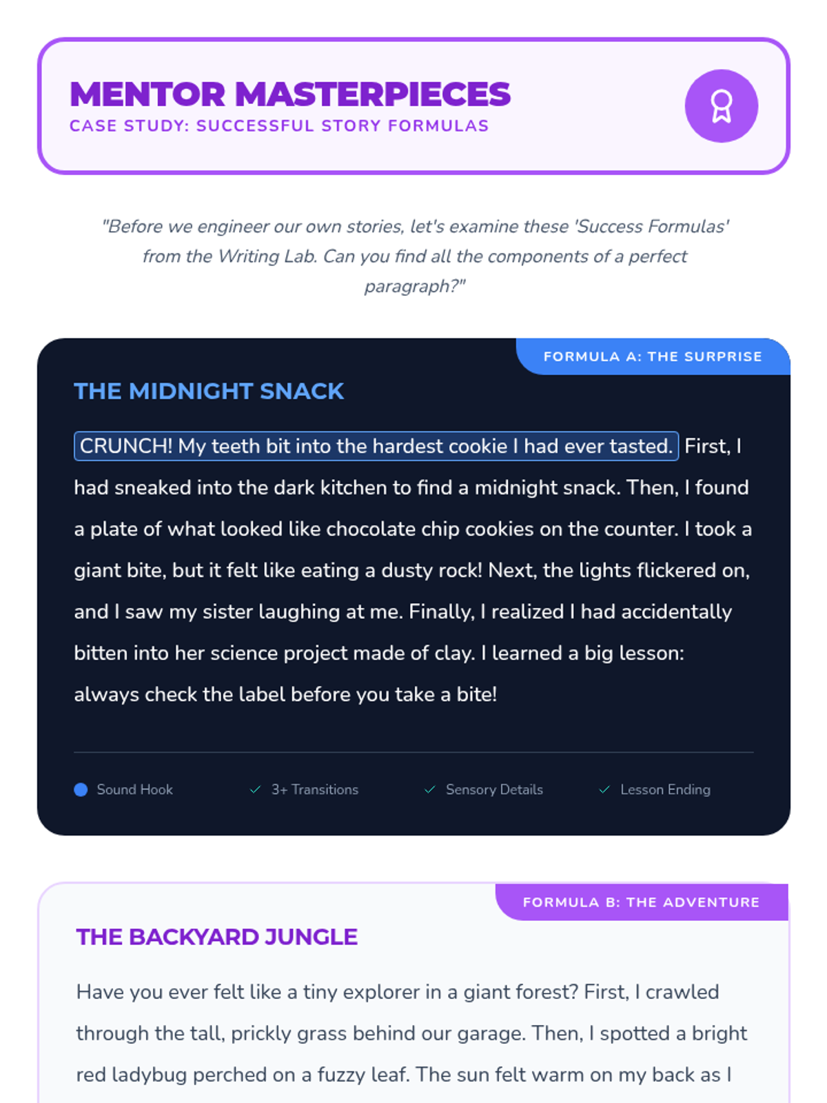 A comprehensive writing unit that breaks down complex structures into manageable building blocks, from individual paragraphs to complete narrative arcs and multi-paragraph essays. Students learn to use blueprints to construct clear, logical, and engaging pieces of writing.