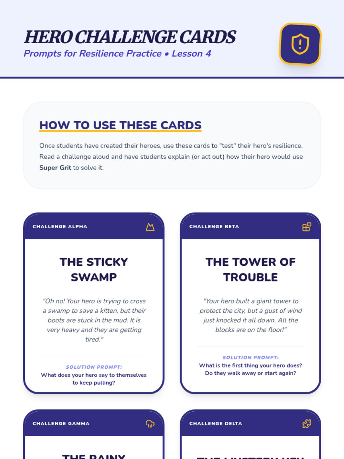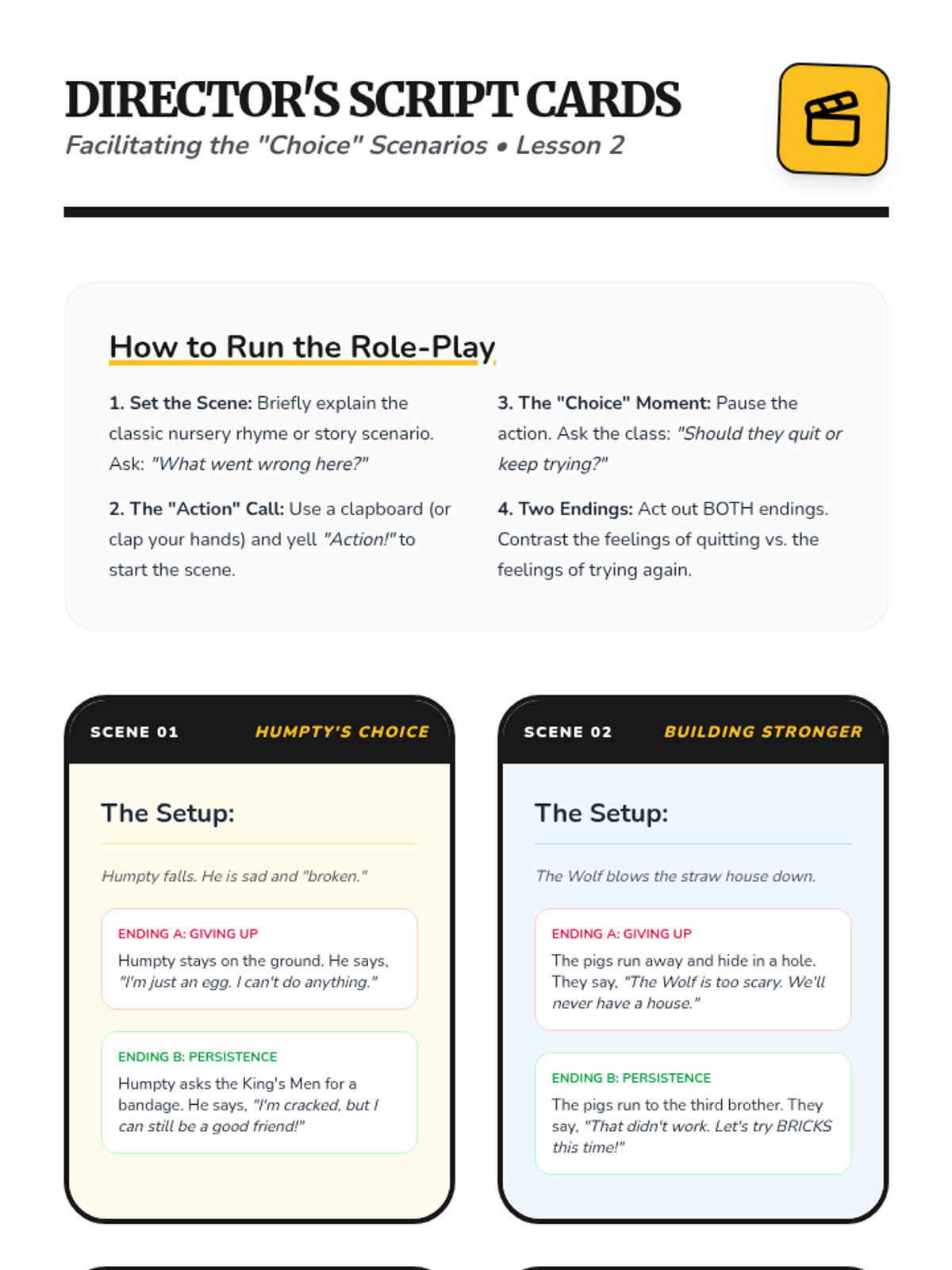A Kindergarten sequence focused on building resilience and perseverance through storytelling, character analysis, and role-play. Students learn to identify obstacles, use positive self-talk, and recognize their own capacity to overcome challenges.
