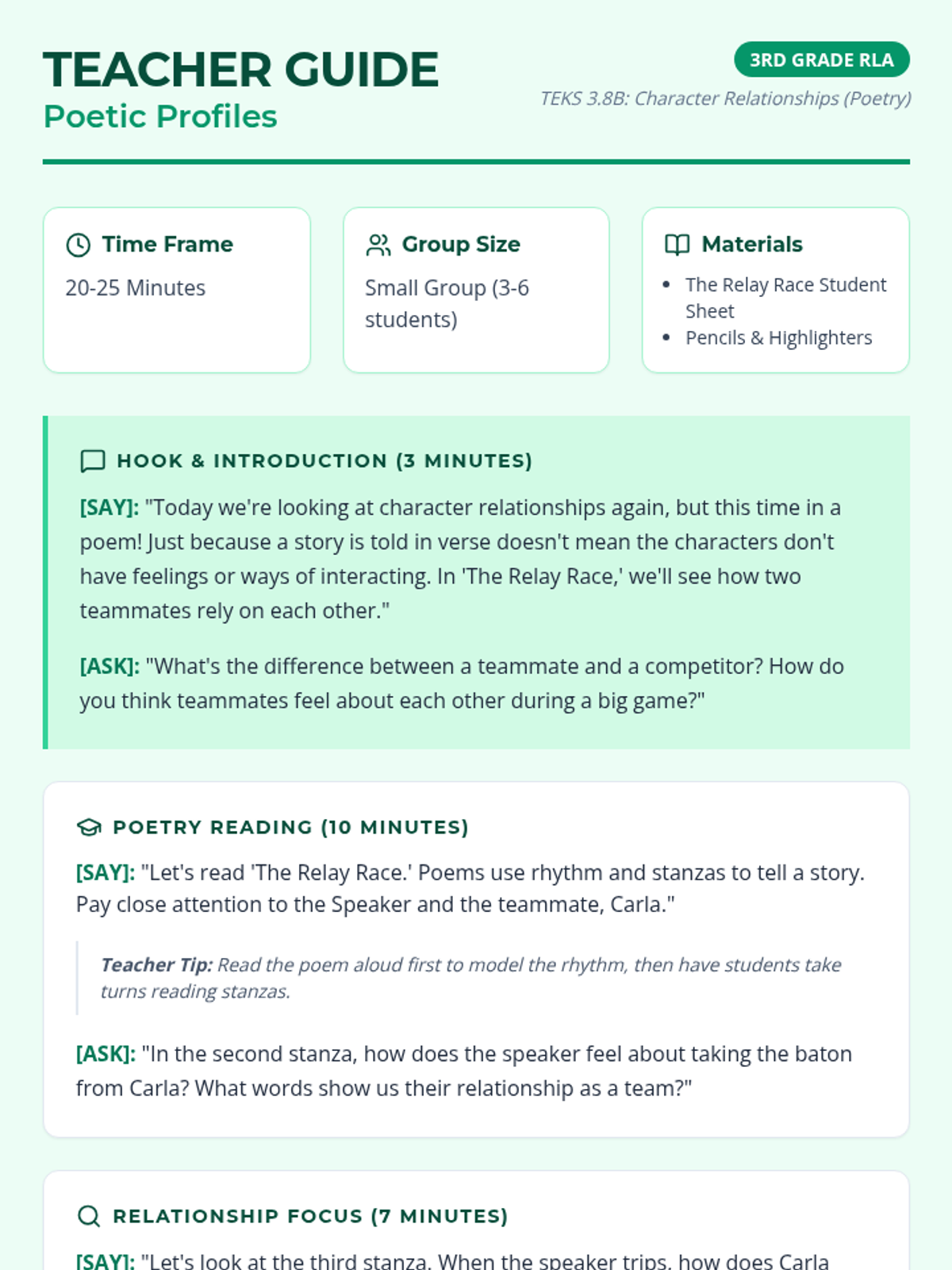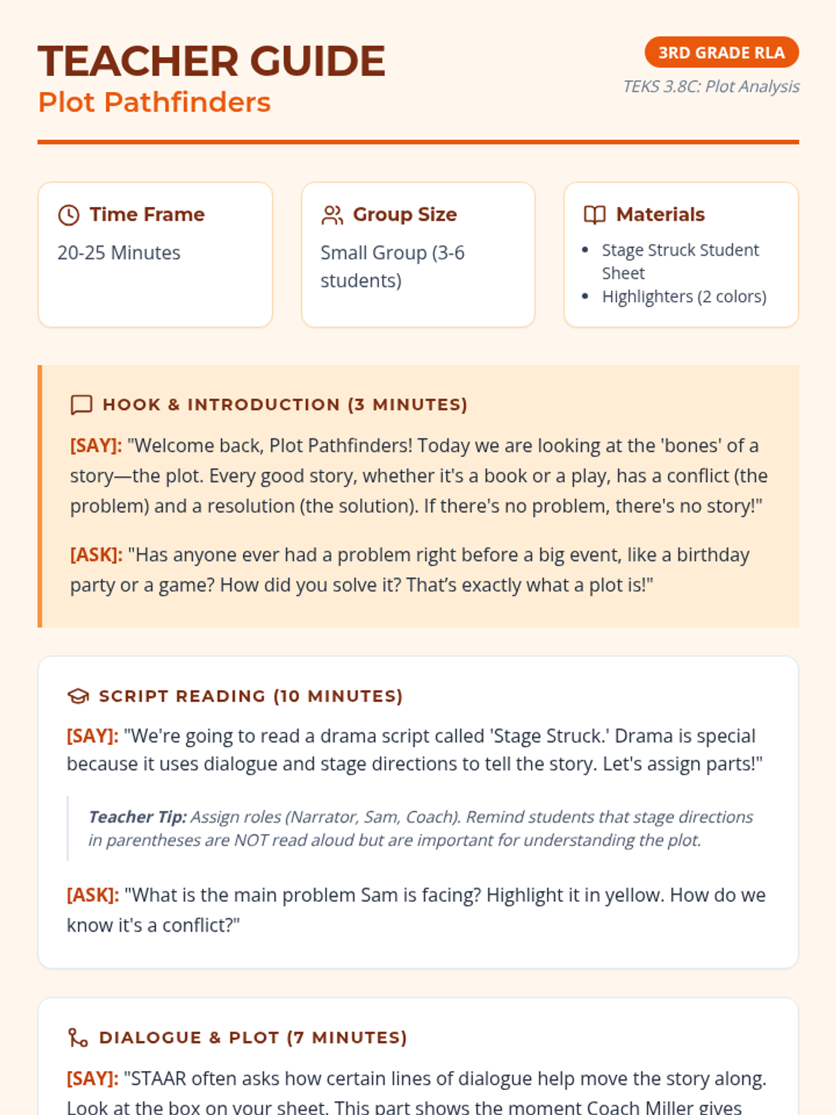 A focused RLA sequence for 3rd grade students to master character relationships and plot elements through rigorous short texts and STAAR-aligned analysis.