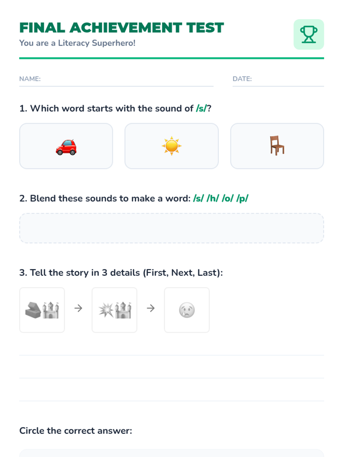 A 12-session, 3-week literacy program for 1st-grade bilingual students with intellectual disabilities, focusing on phonics, retelling, comprehension, and sentence structure.