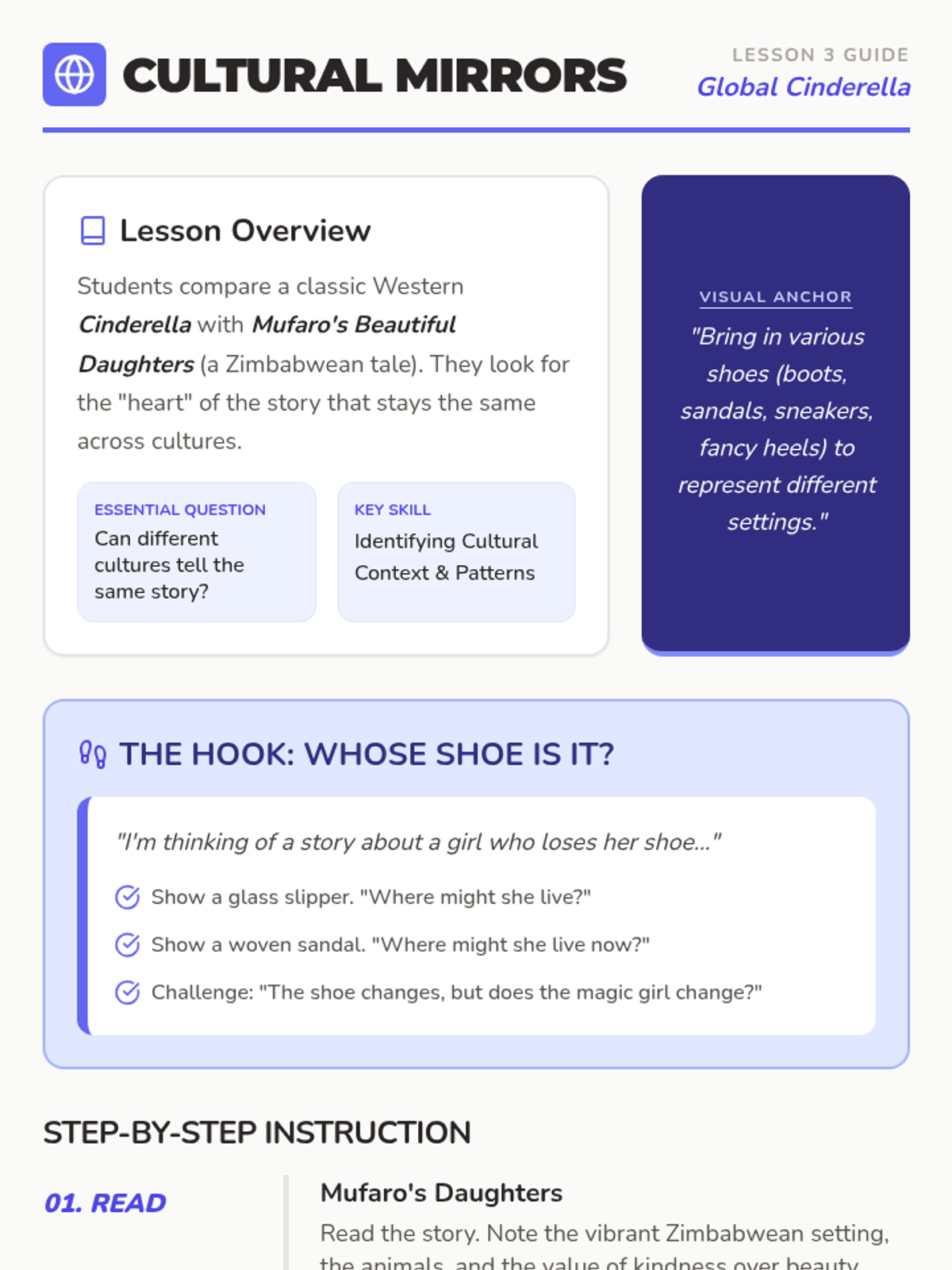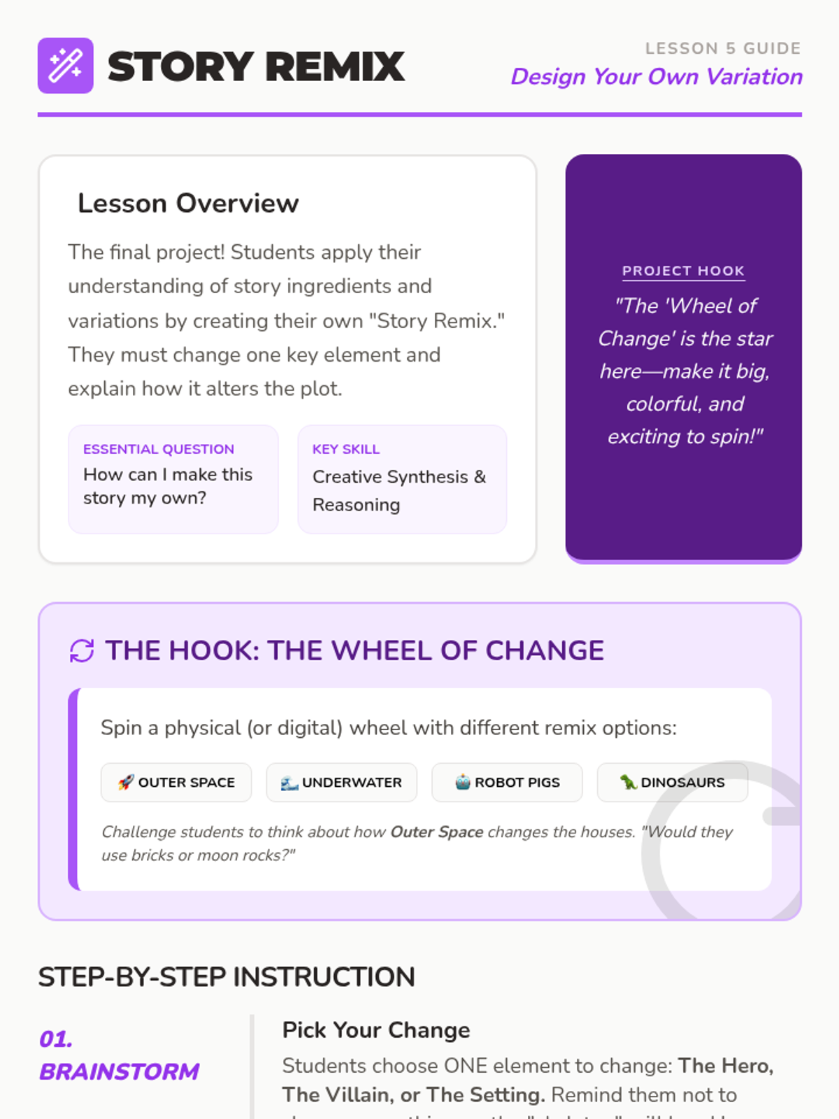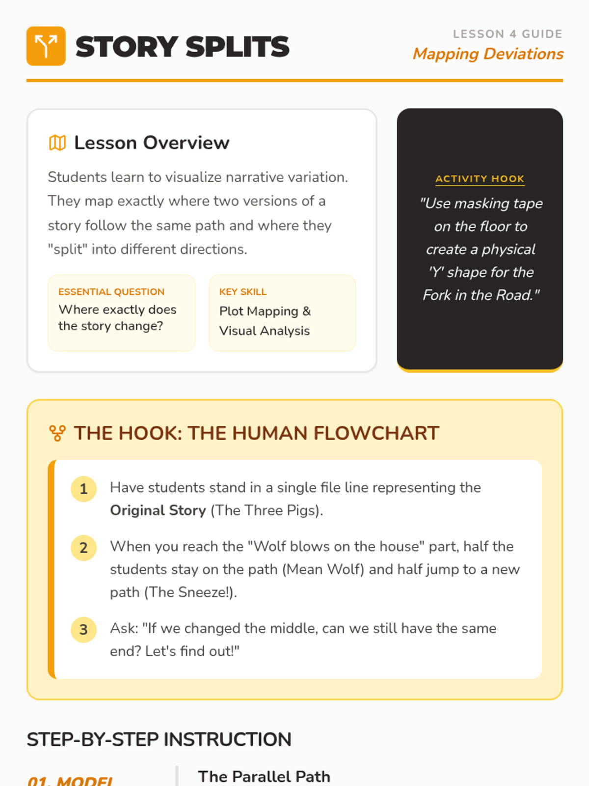 This 1st Grade ELA sequence explores cultural variations and narrative structures by comparing different versions of traditional stories. Students move from identifying core story elements to analyzing how perspective and culture shape a tale, culminating in creating their own story remix.