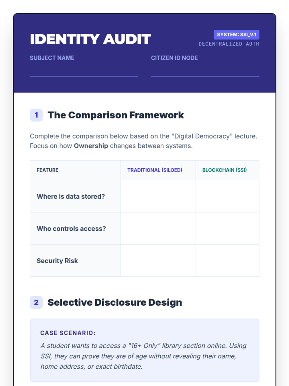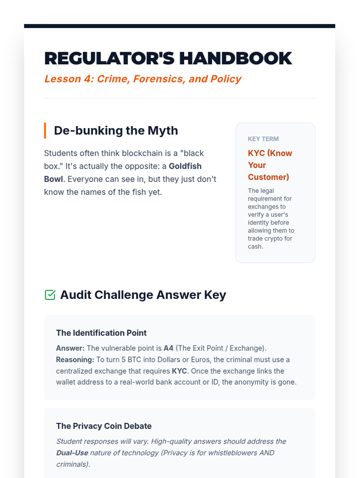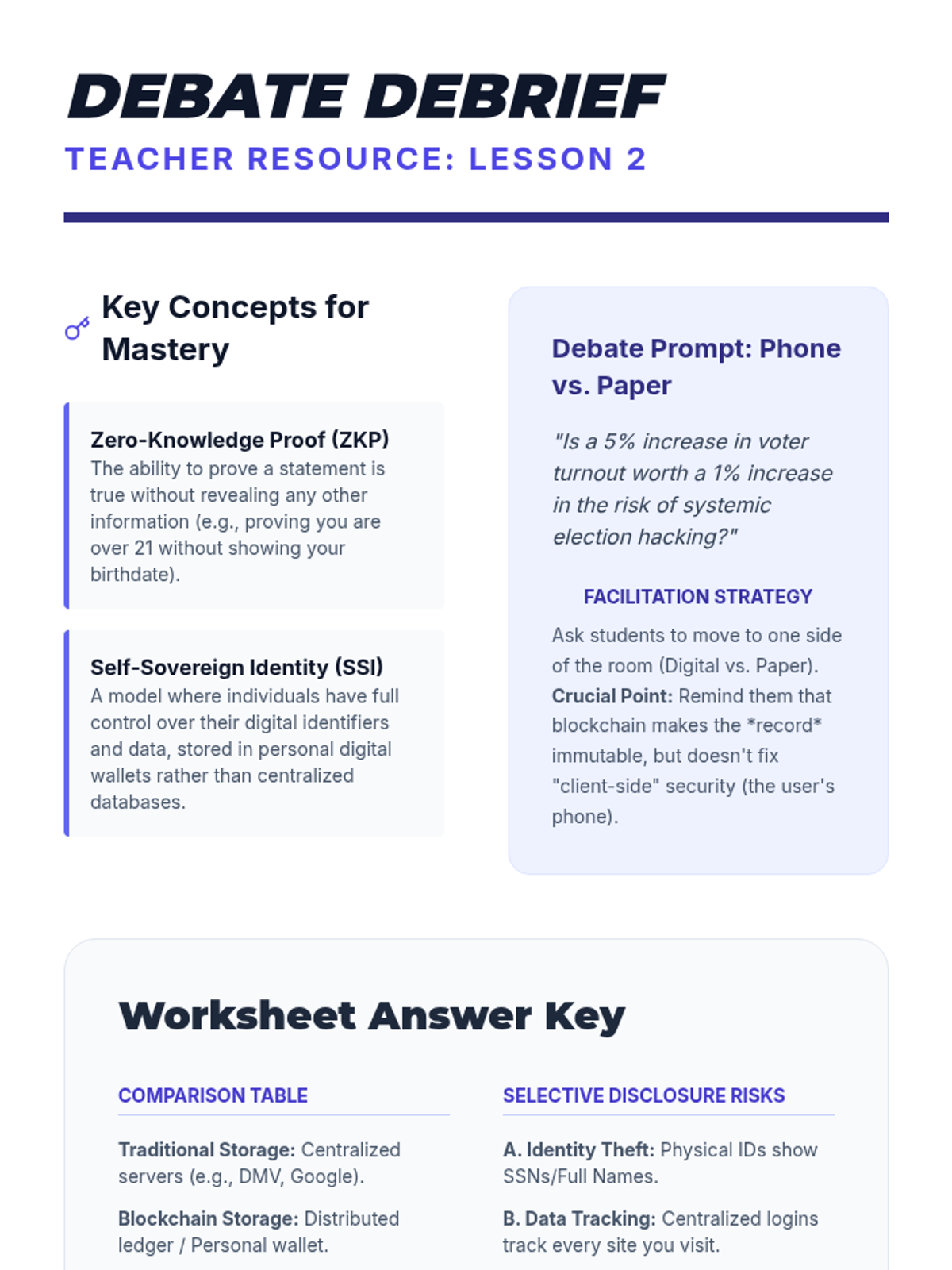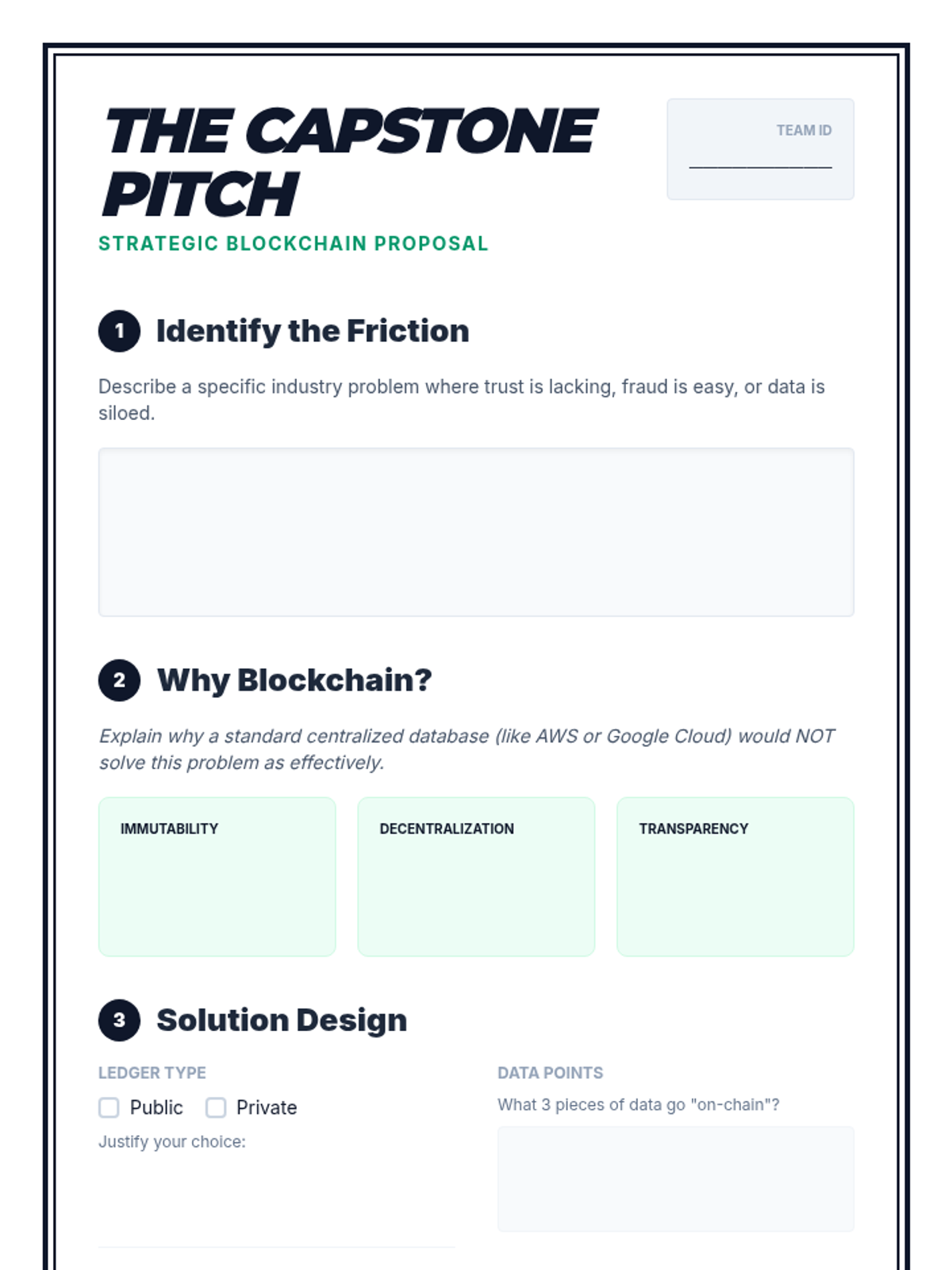 A comprehensive 10th-grade computer science sequence exploring the strategic applications of blockchain technology. Students analyze real-world use cases in supply chains, civic systems, digital ownership, and ethics, culminating in a capstone project pitch for a blockchain solution.